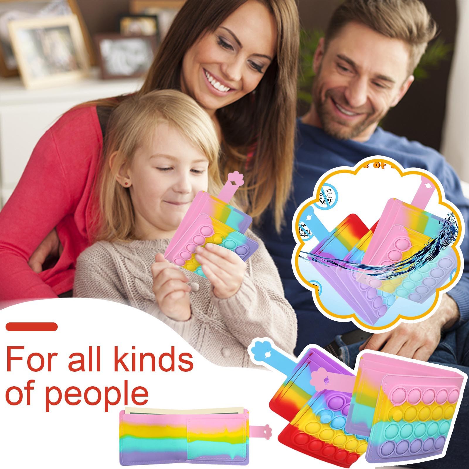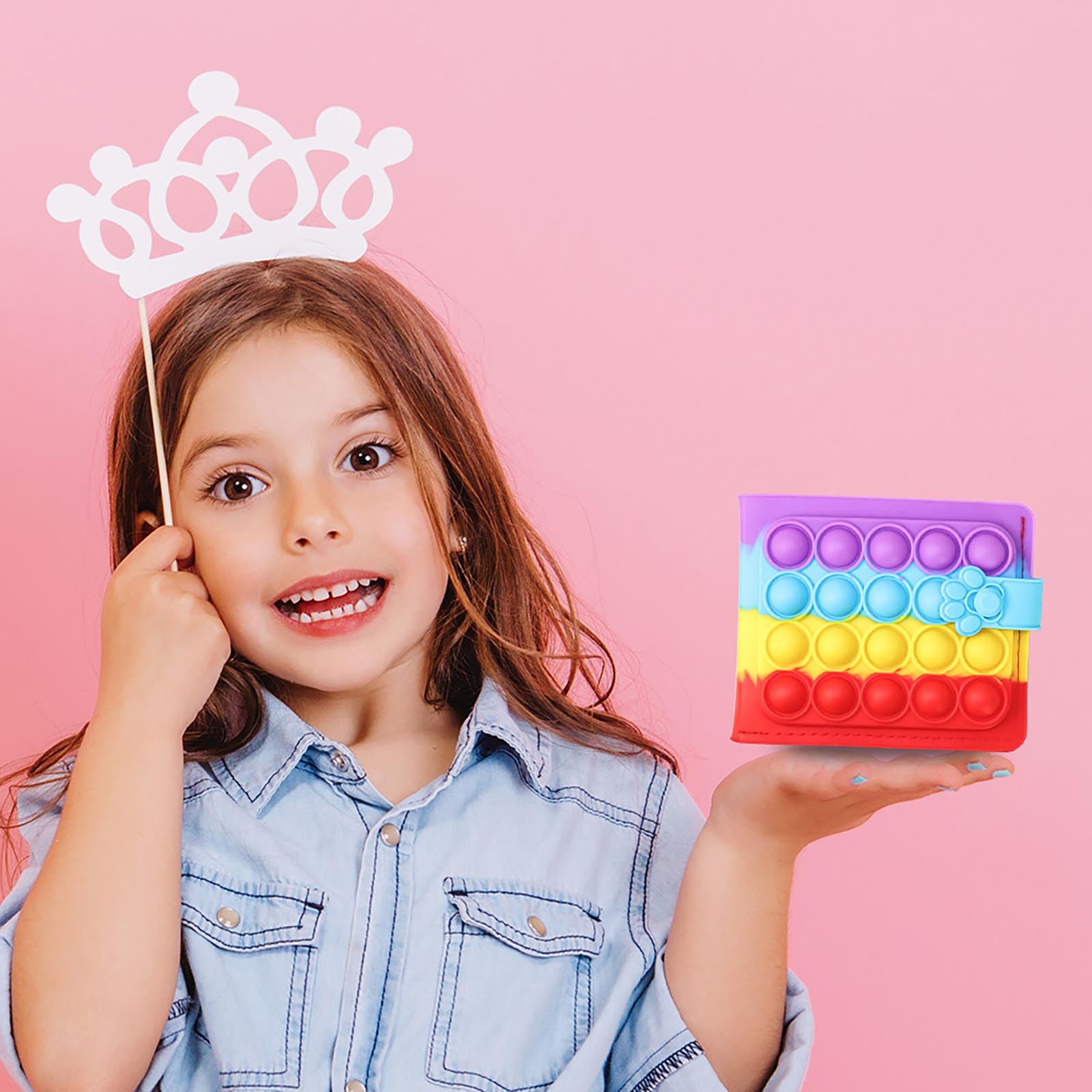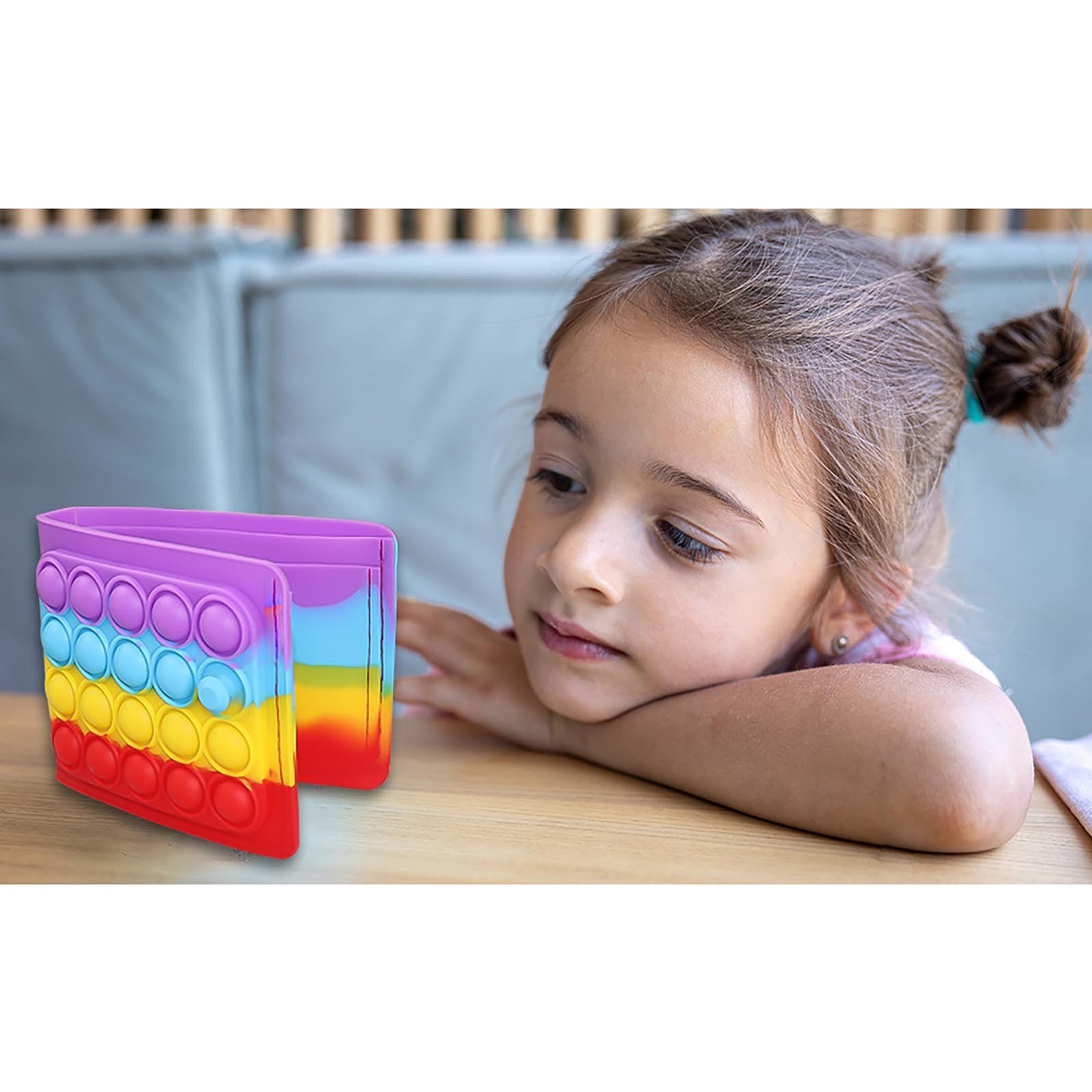 Uniquely designed fingertip toy wallet: a unique two-in-one design, composed of popular fingertip toys and wallets, can improve children's attention. Press the bubble, the bubble toy bag will make a "pop, pop" sound, enjoy the fun of pressing, effectively relieve anxiety and stress, and eliminate irritability. Decompression fidget toys when needed.