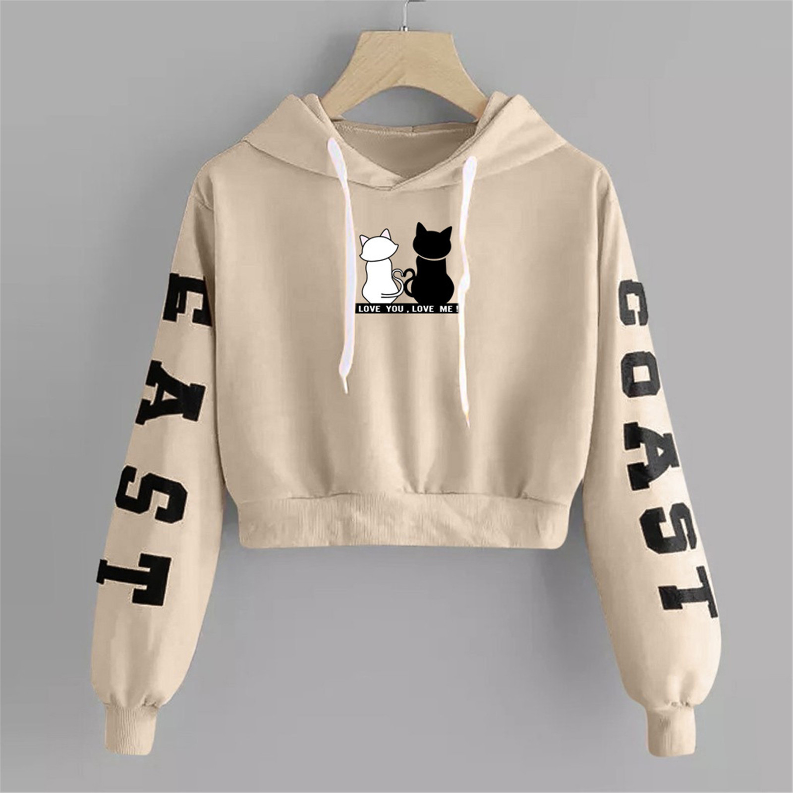 Модные женские повседневные топы с длинными рукавами; Женская толстовка с принтом; Короткая блузка