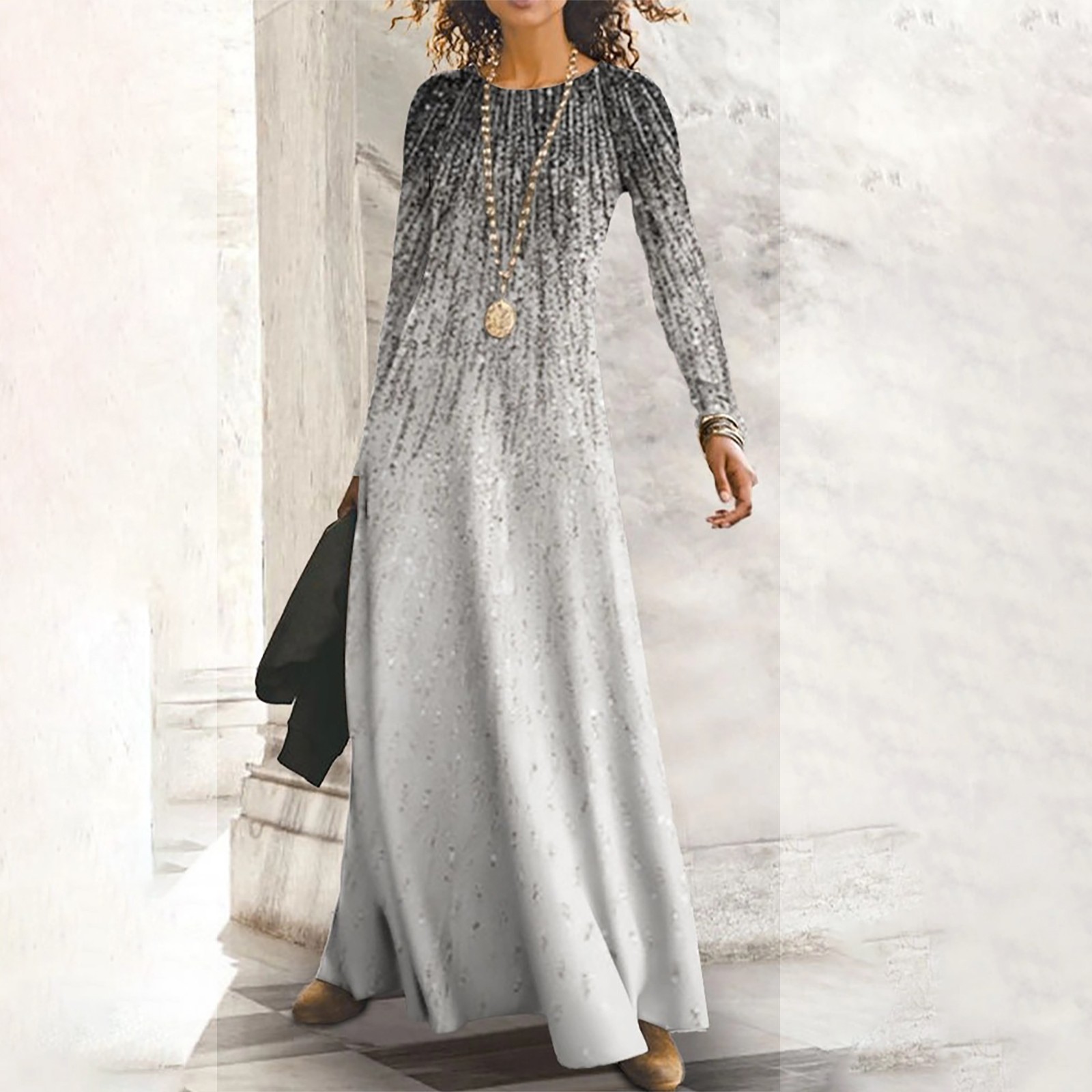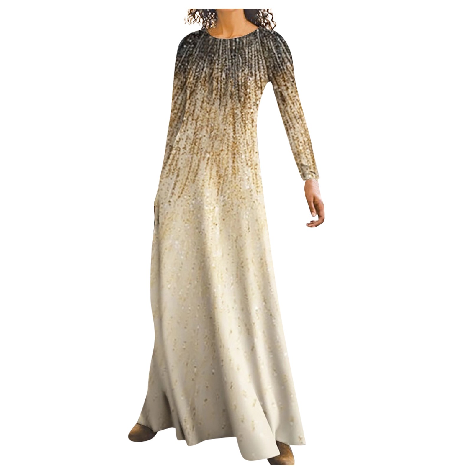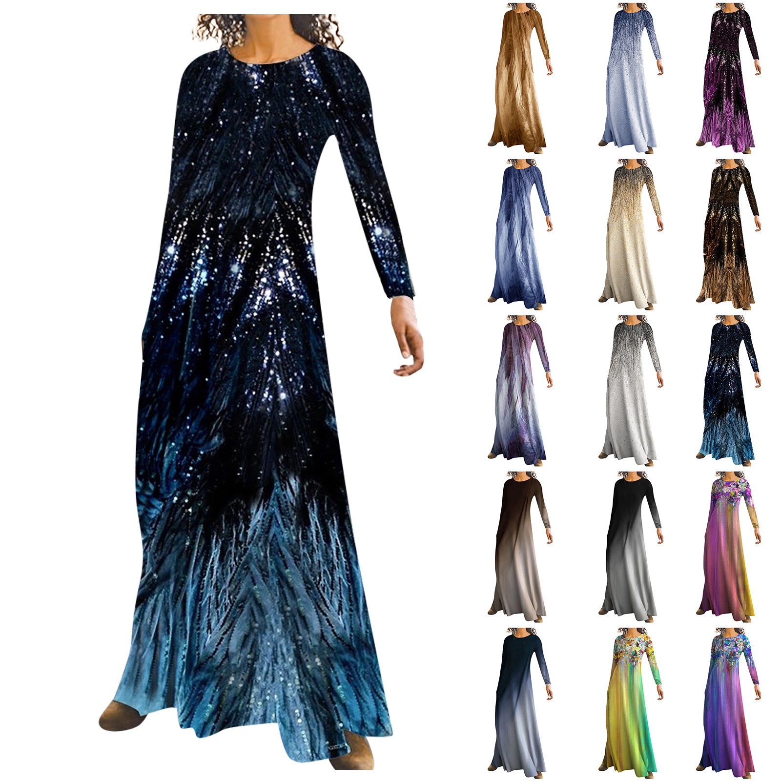 Женское Повседневное платье с принтом в стиле ретро, с длинными рукавами, круглым вырезом и высокой талией