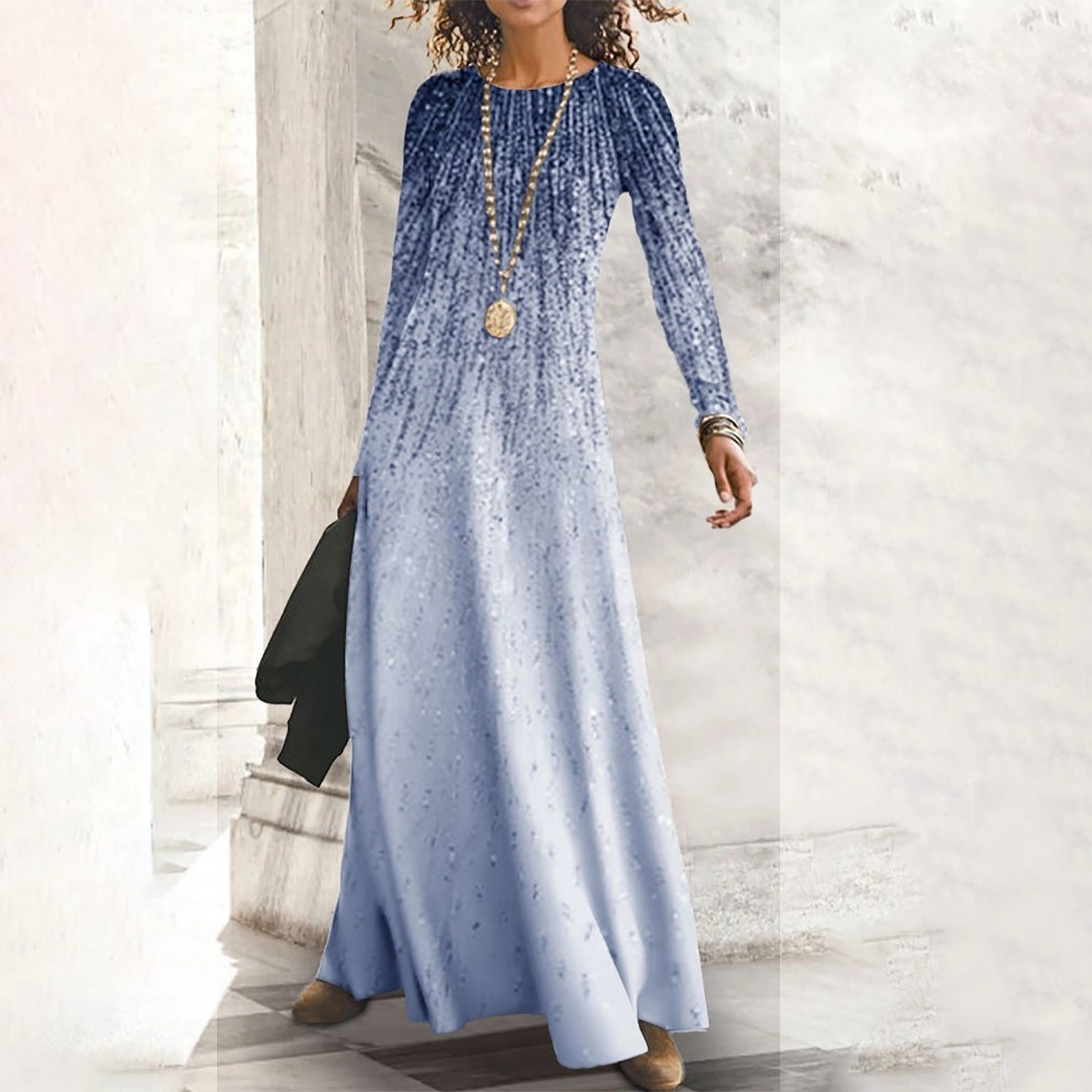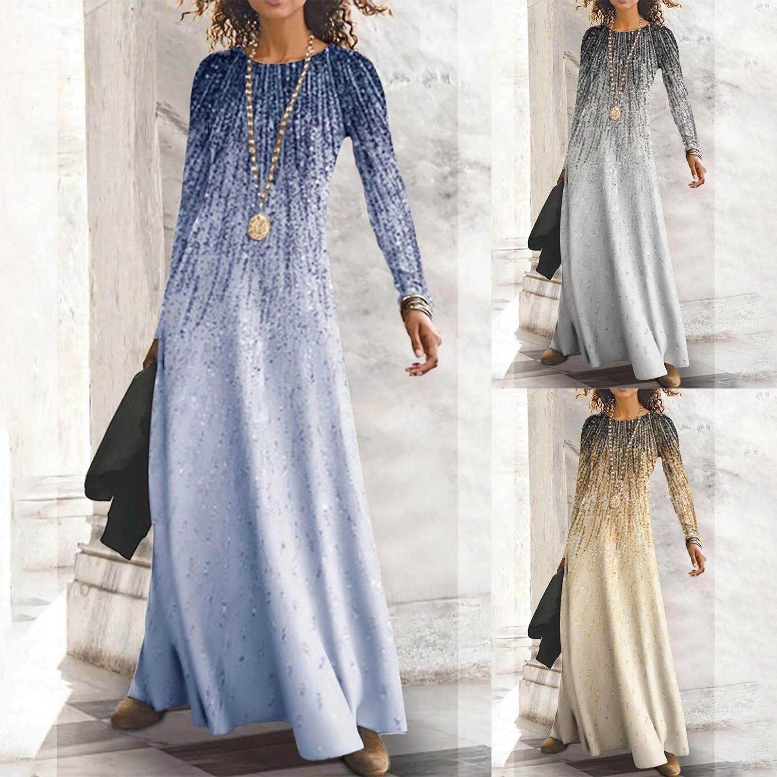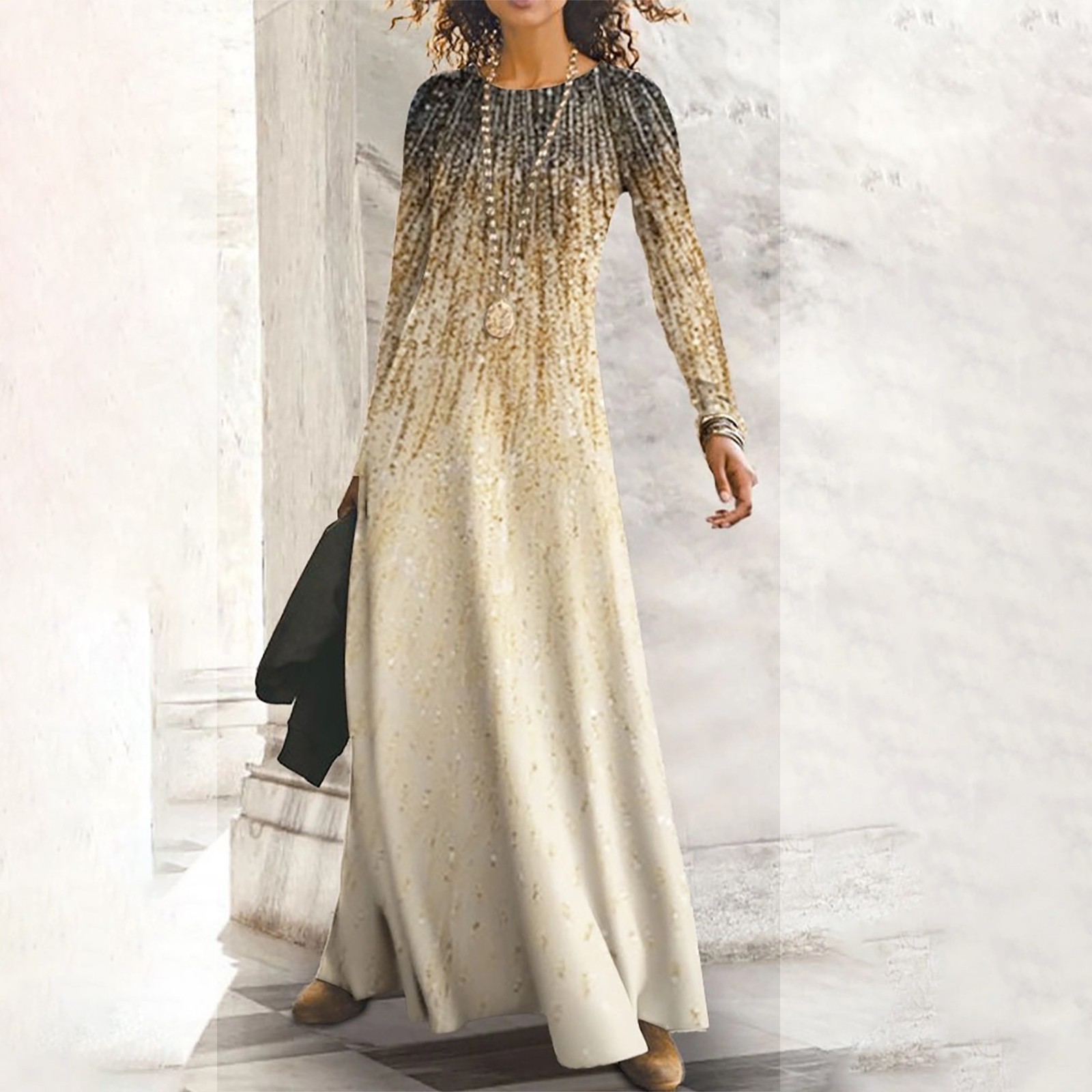 Женское Повседневное платье с принтом в стиле ретро, с длинными рукавами, круглым вырезом и высокой талией