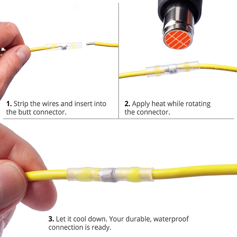 Водонепроницаемый и термоусадочный дизайн: он сжимается при нагреве, внутренний затвердевший клей плавится, а проводка плотная и водонепроницаемая.