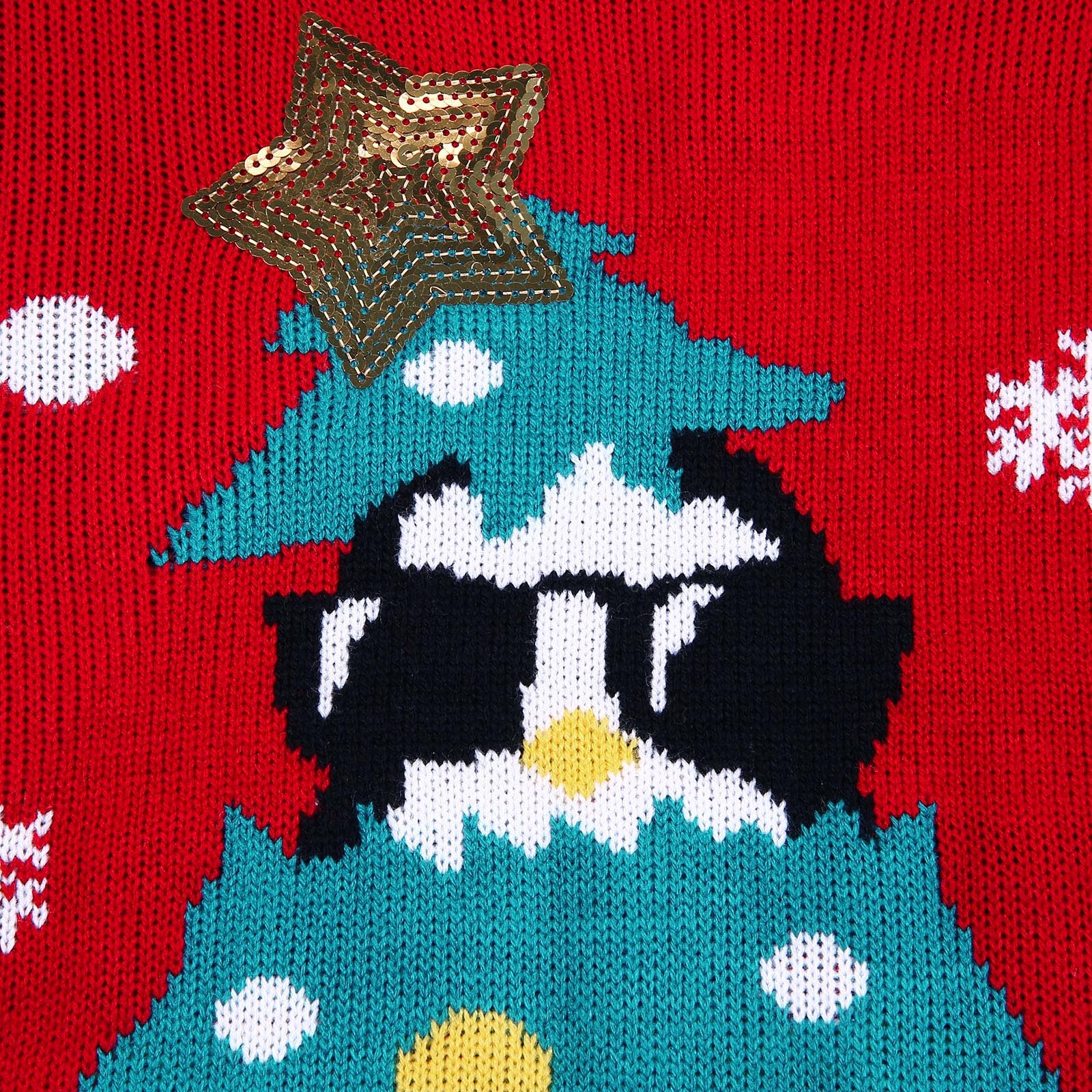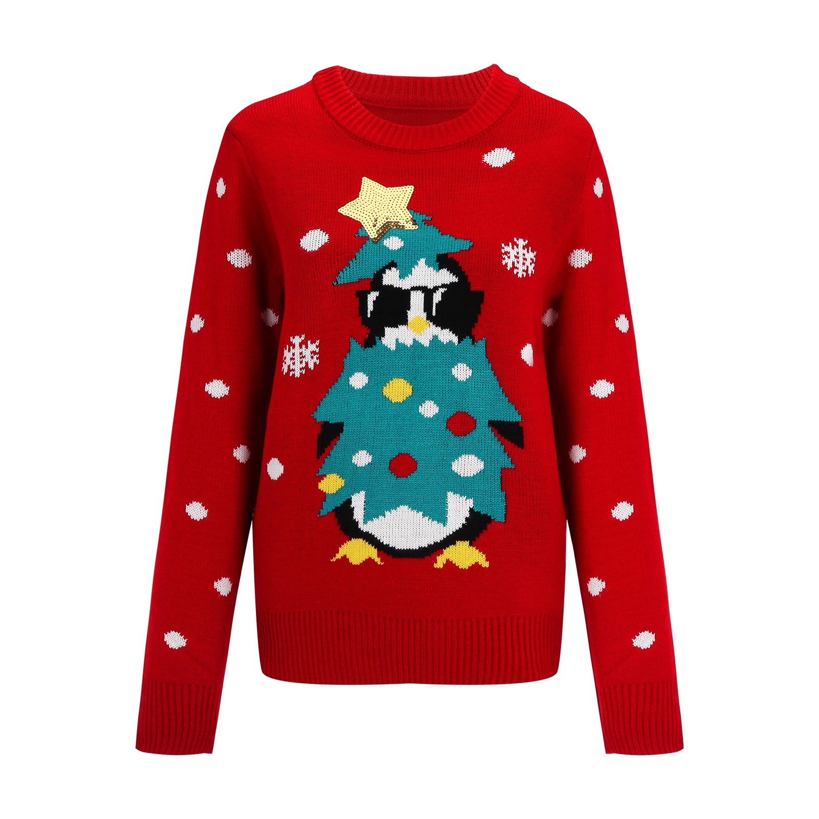 Winter Christmas Womens Sweater Long Sleeve Sequined Cute Penguin Pattern Pullovers
