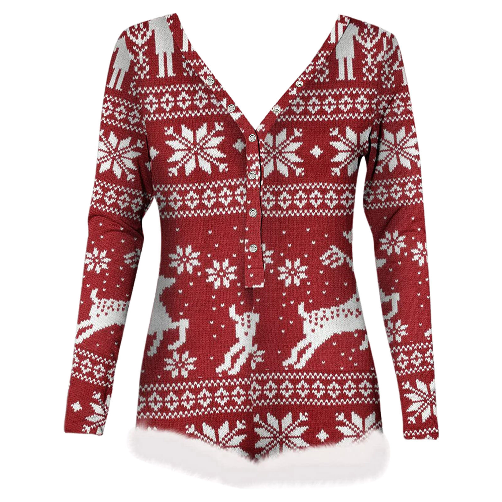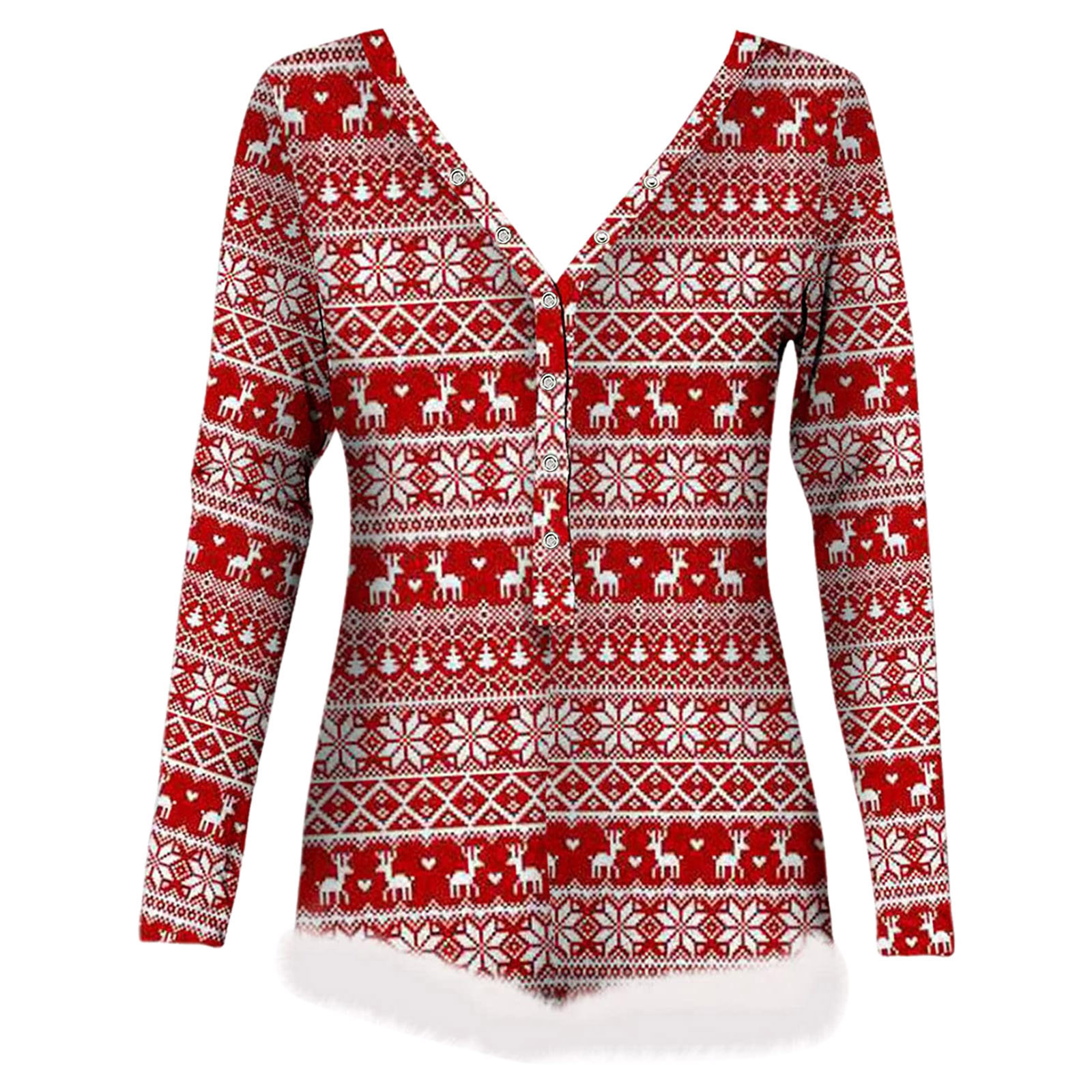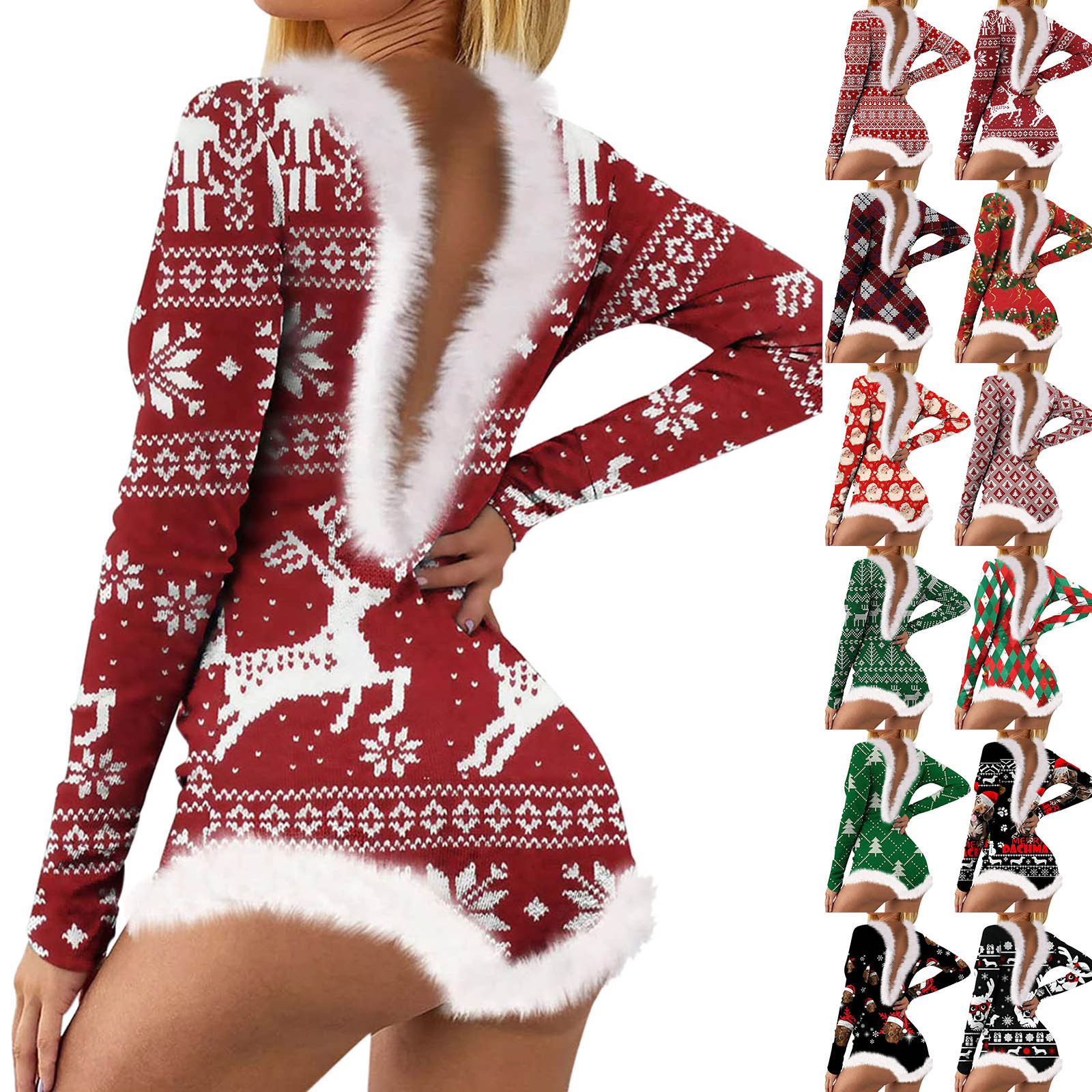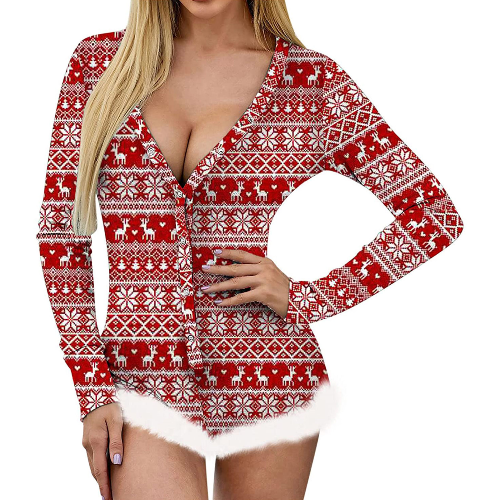 Женский Рождественский комбинезон с длинным рукавом и принтом
