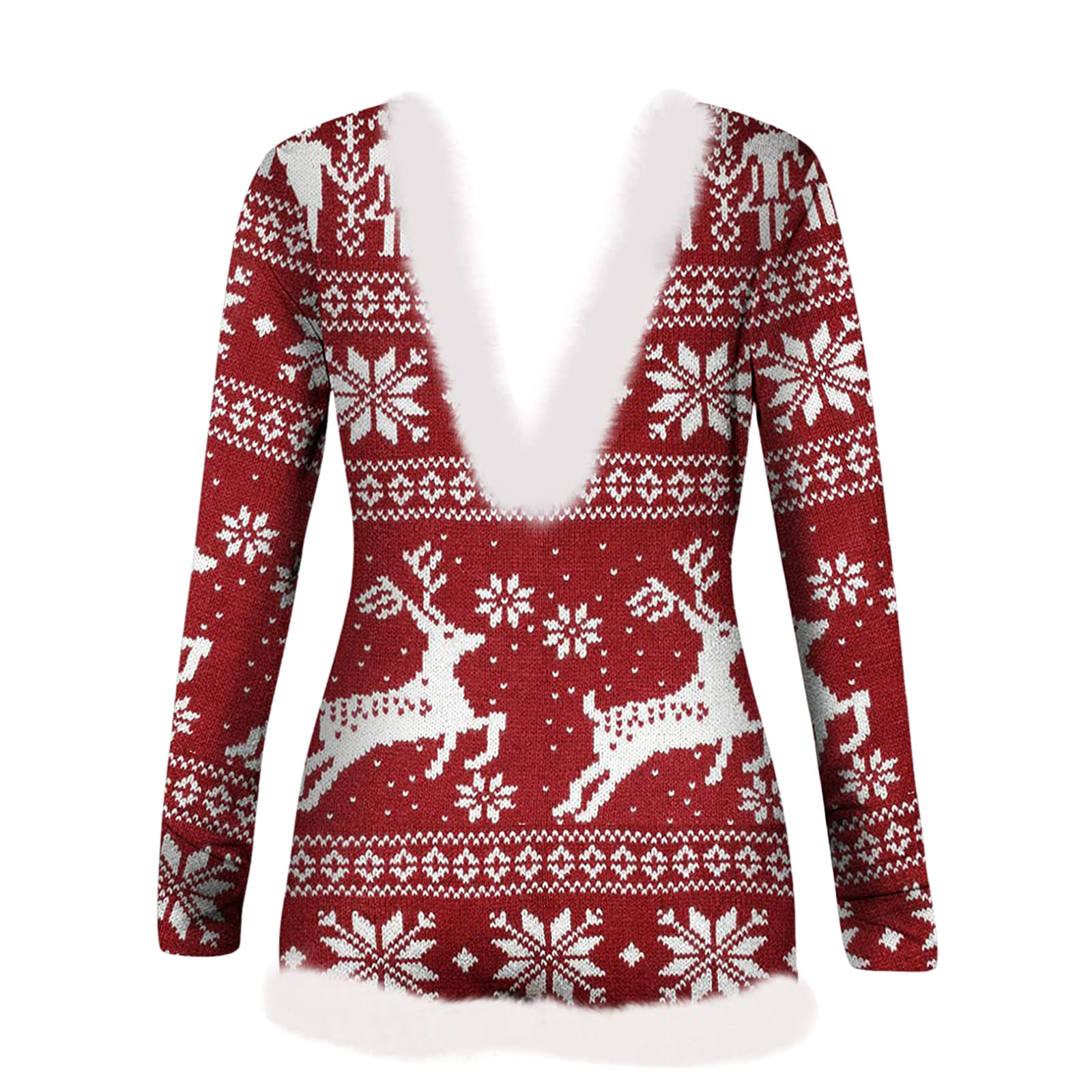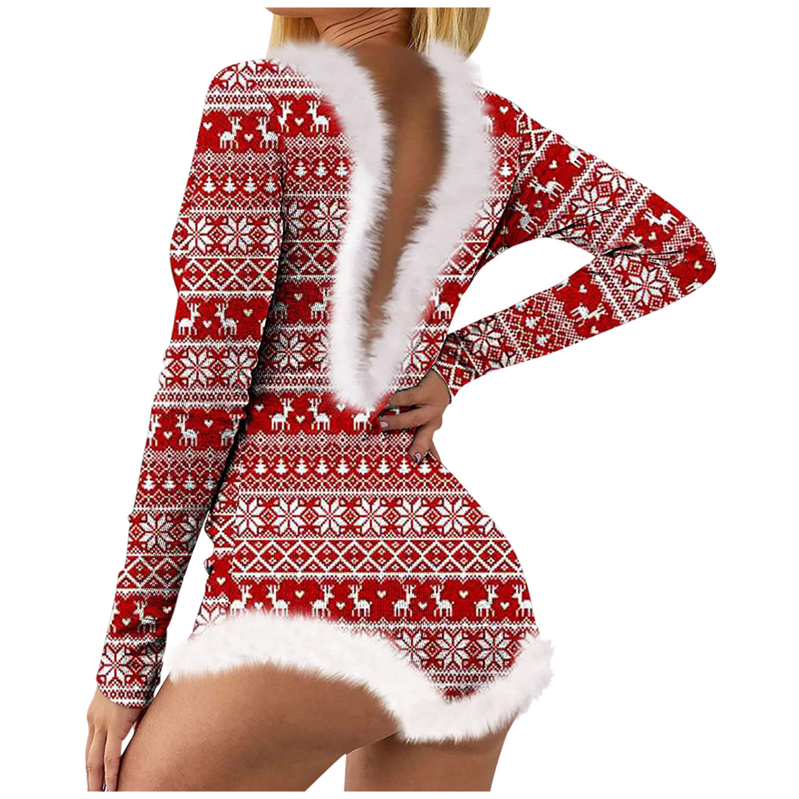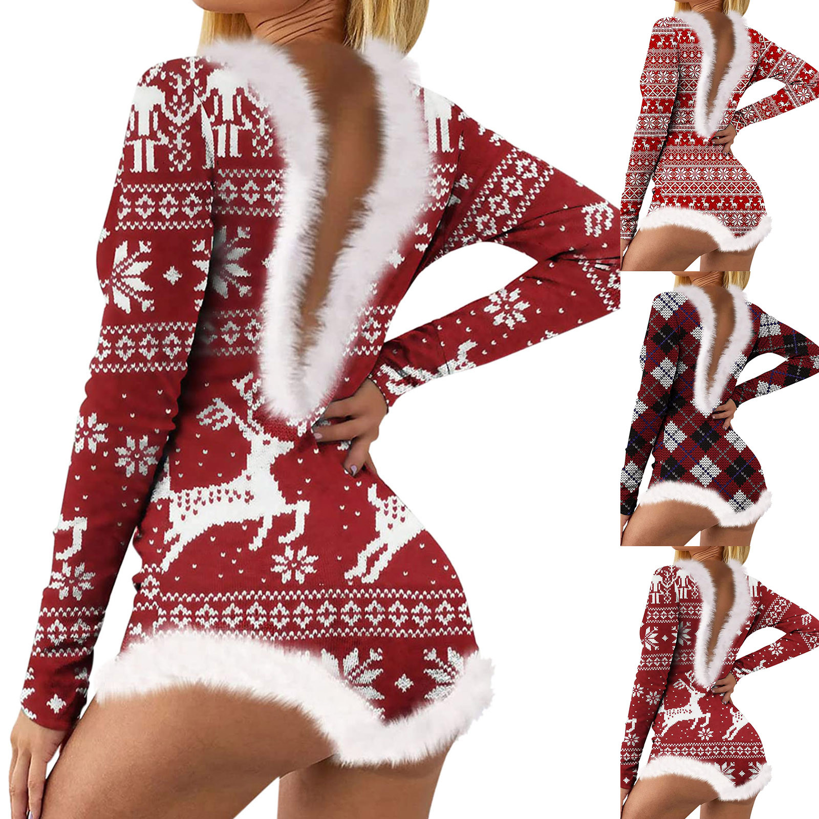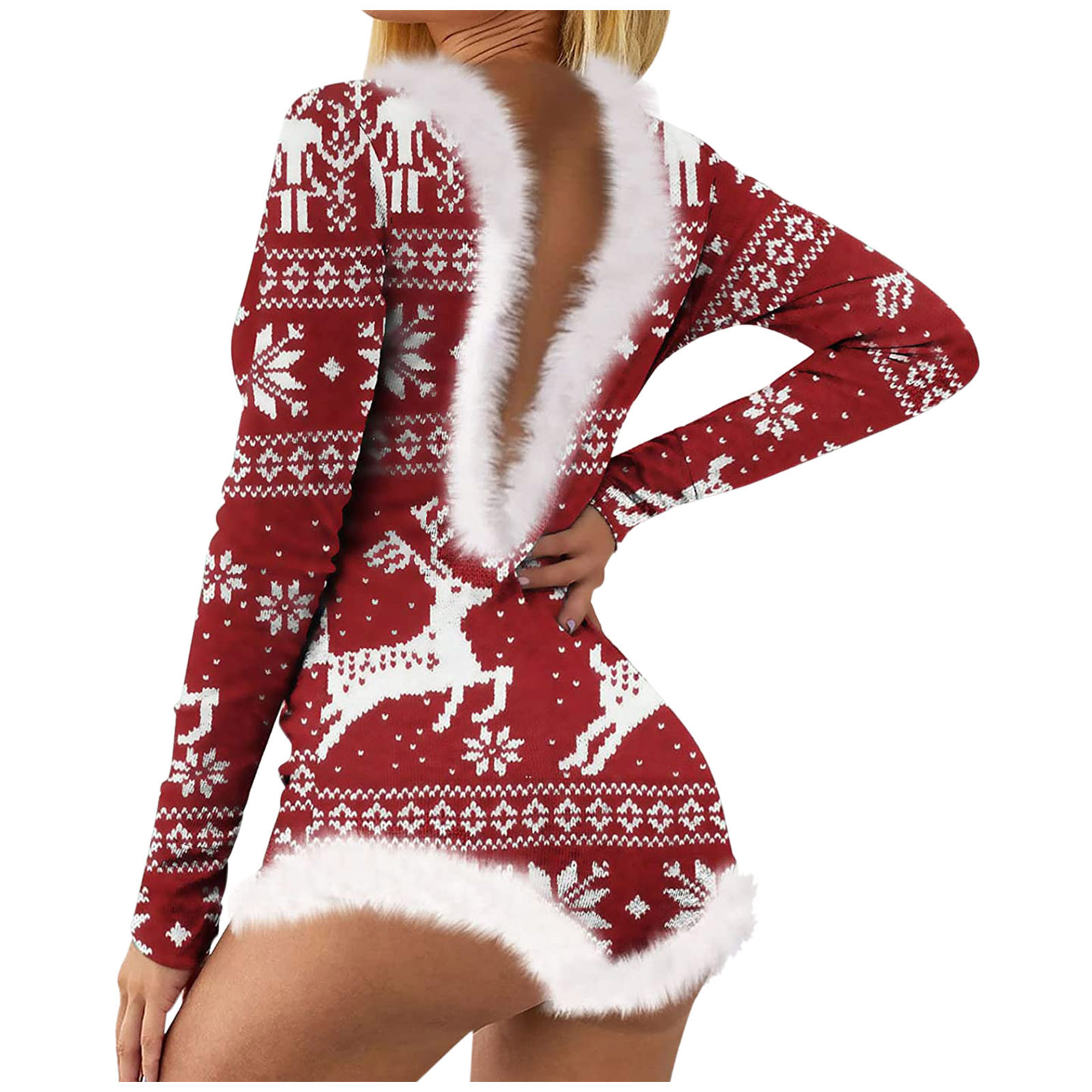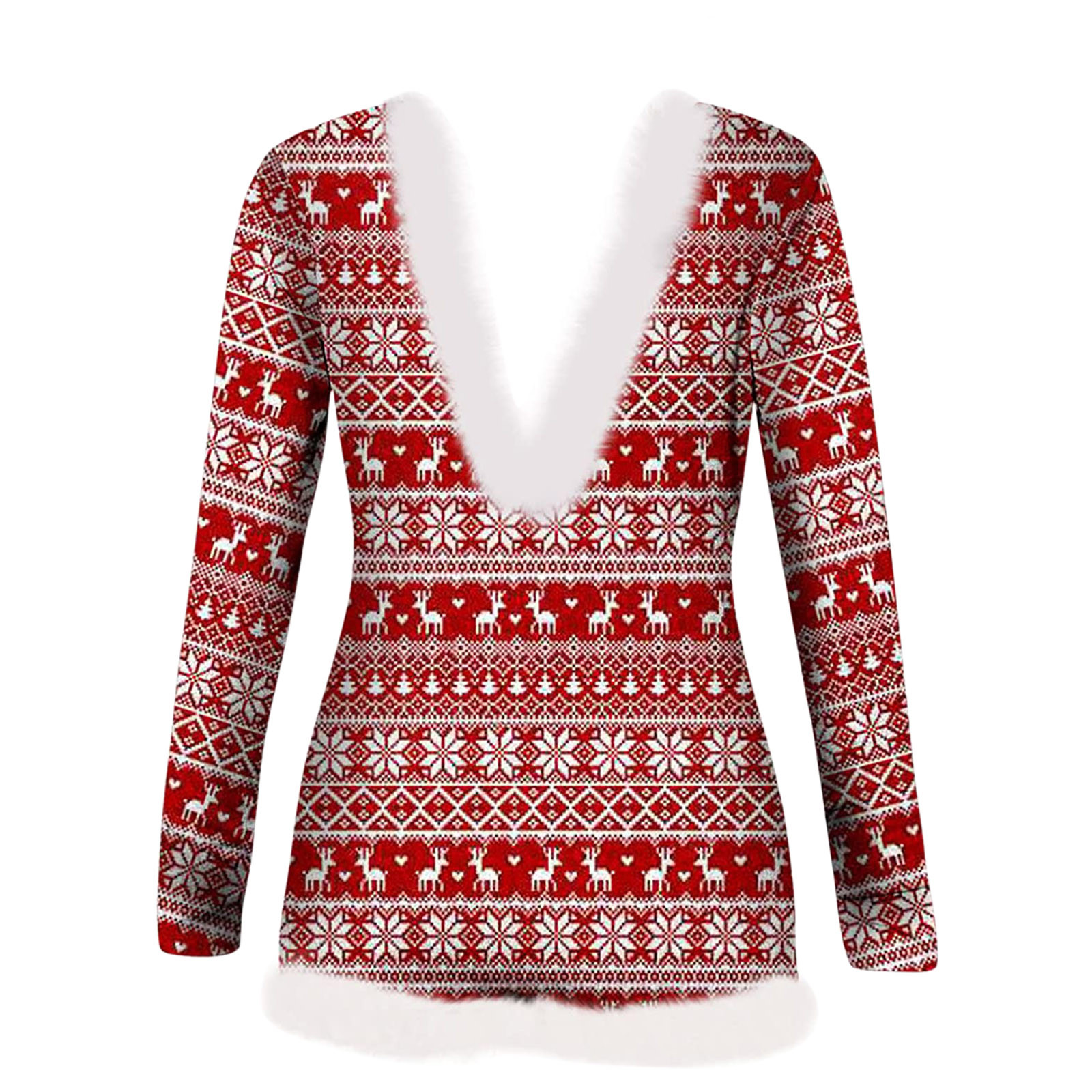 Женский Рождественский комбинезон с длинным рукавом и принтом