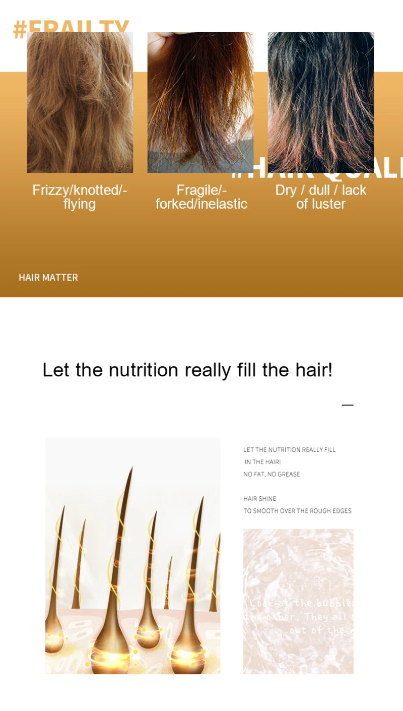Он богат «взрывоопасными бусинами», полностью увлажняет и увлажняет, эффективно увлажняет волосы и улучшает сухость волос.