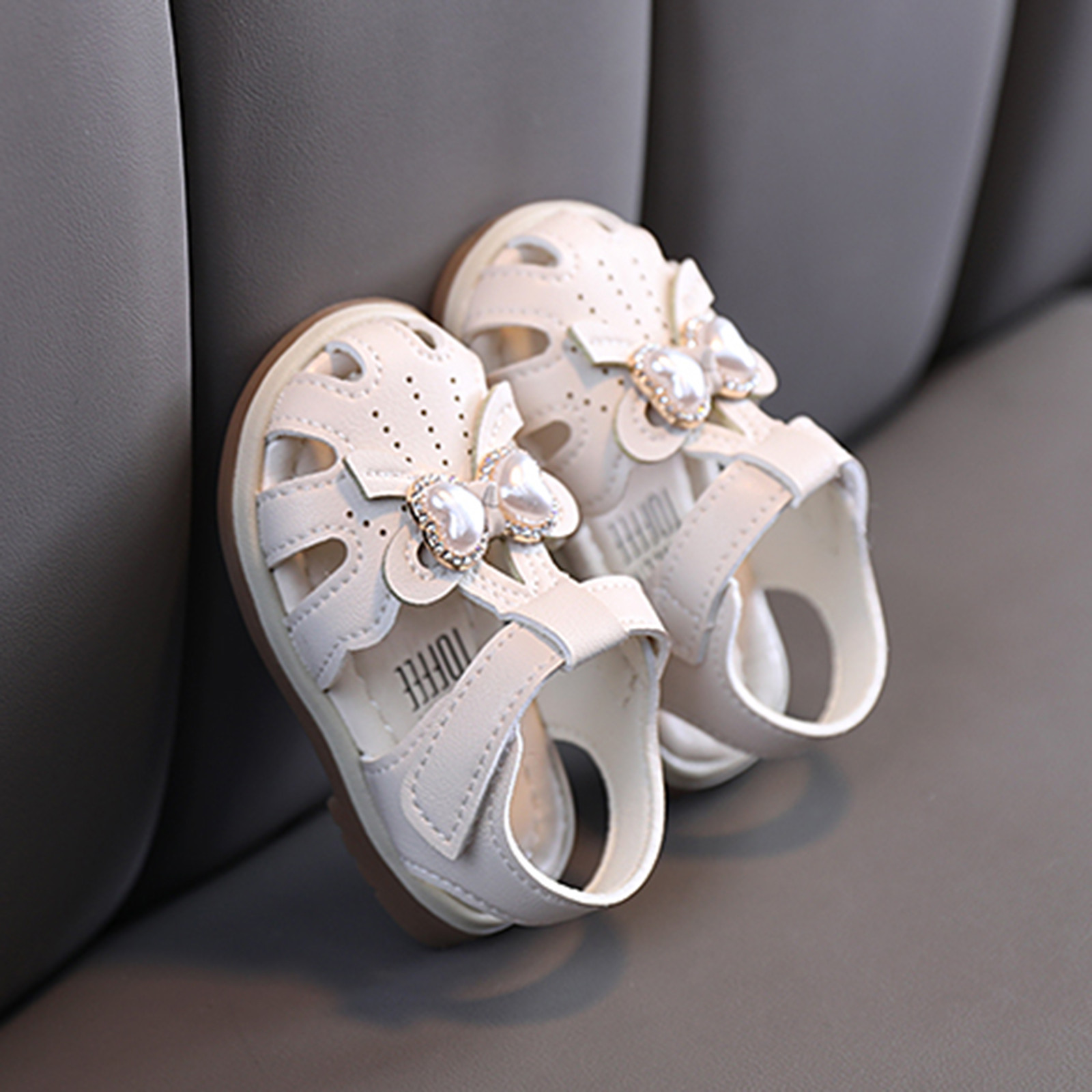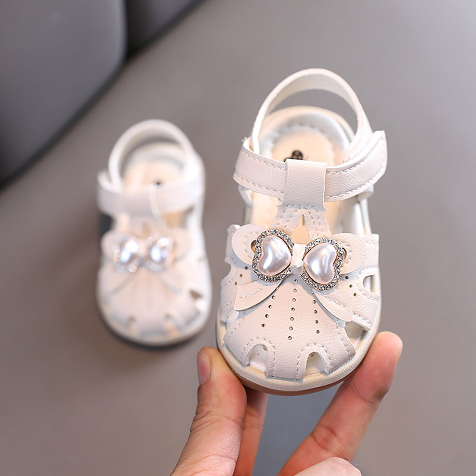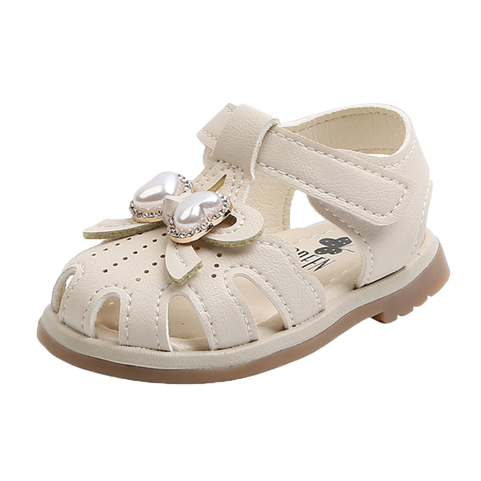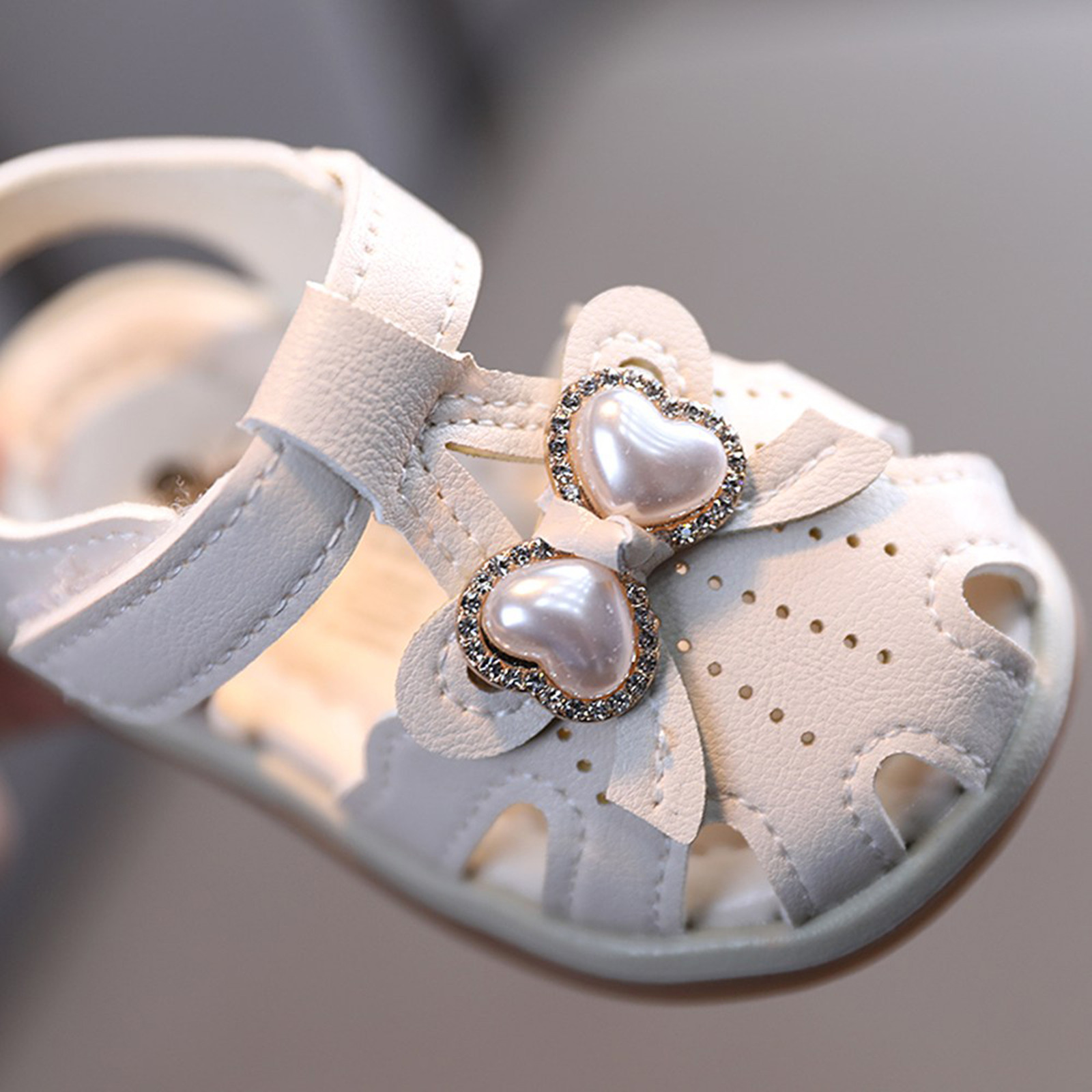Toddler Infant Kids Baby Girls Pearl Bowknot Princess Leather Shoes Sandals