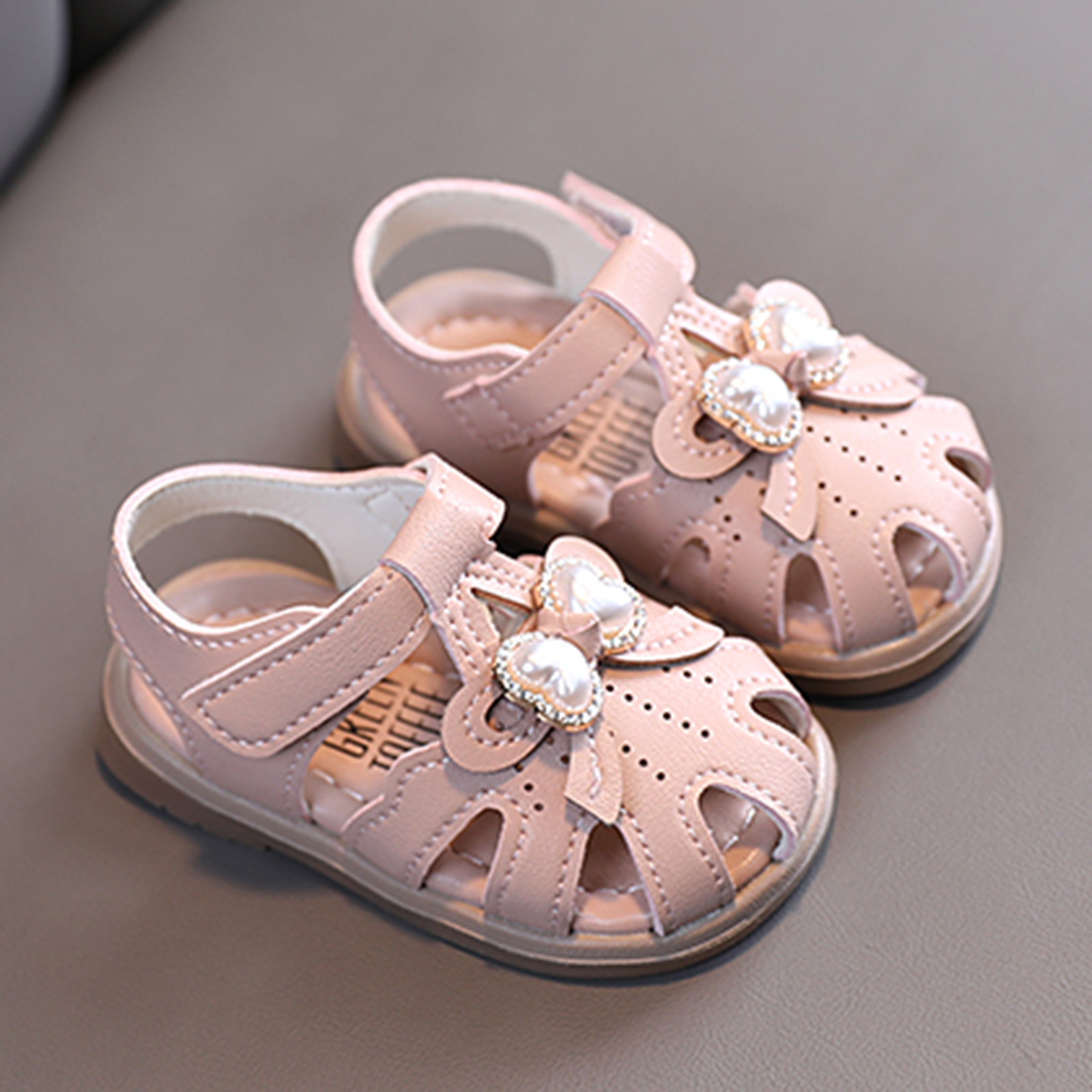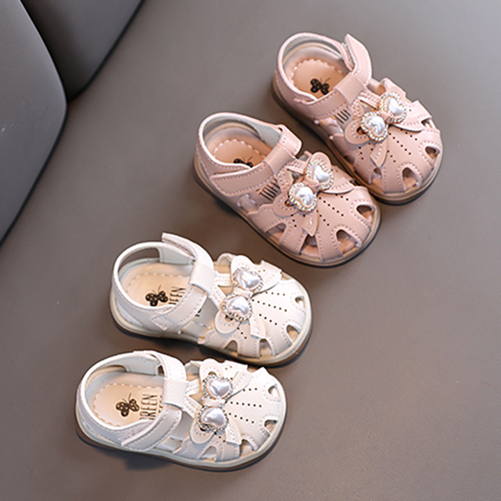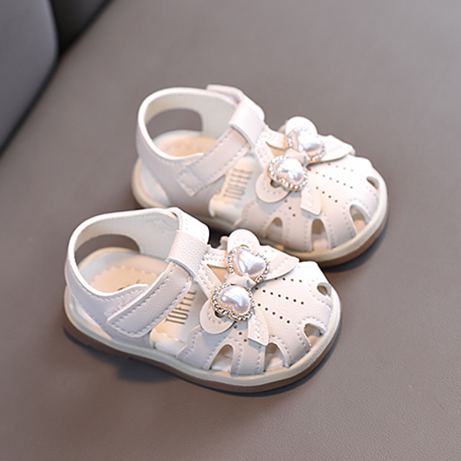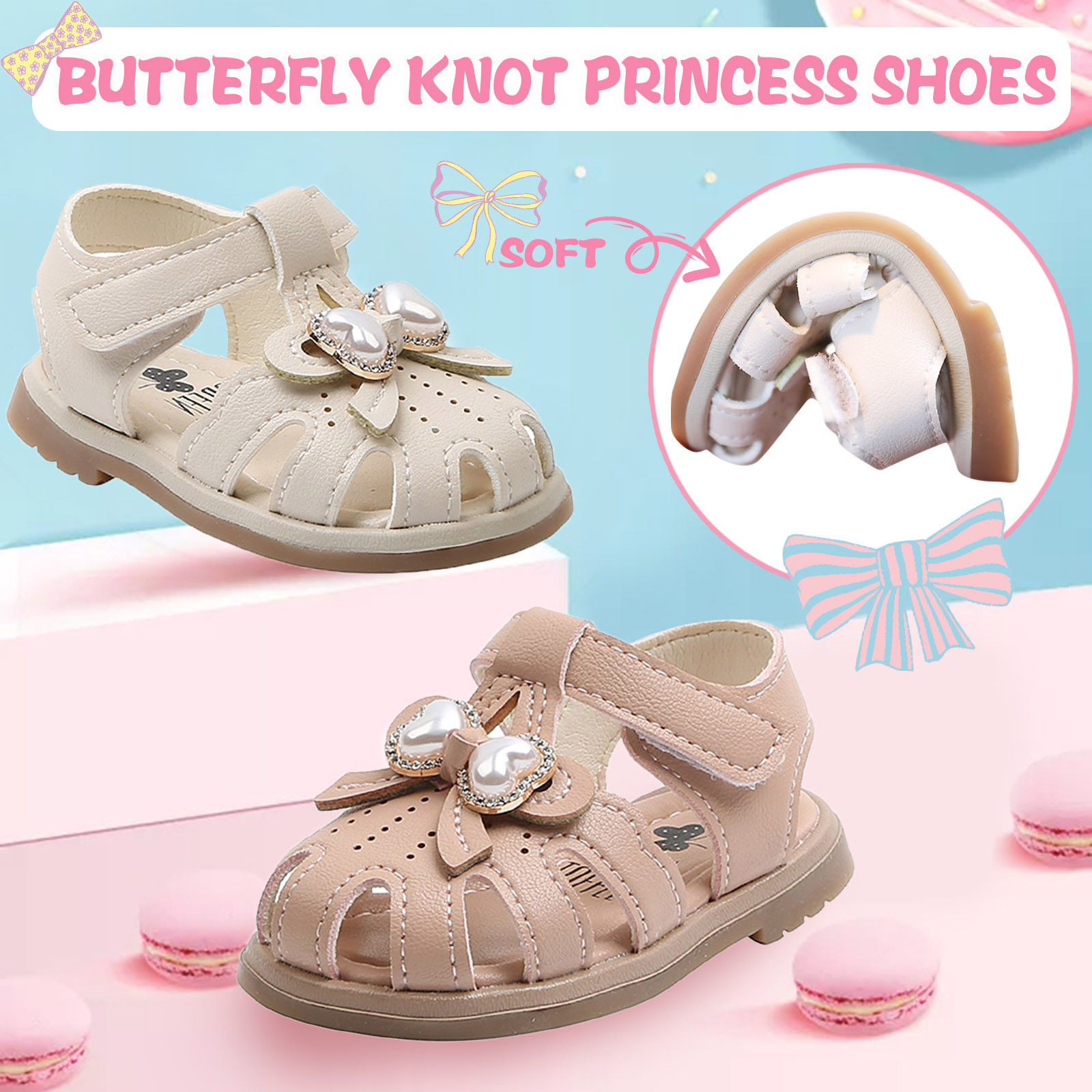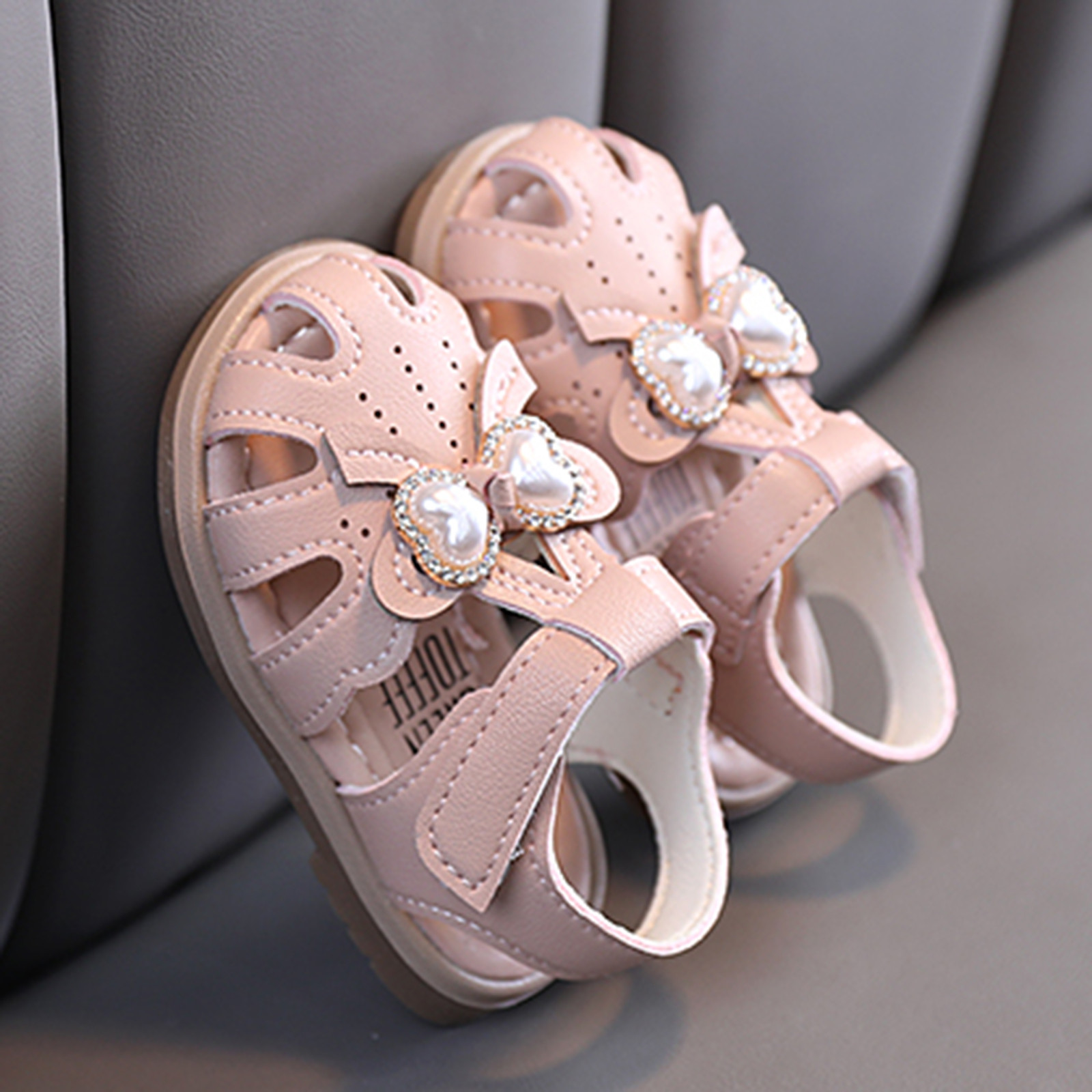 Toddler Infant Kids Baby Girls Pearl Bowknot Princess Leather Shoes Sandals