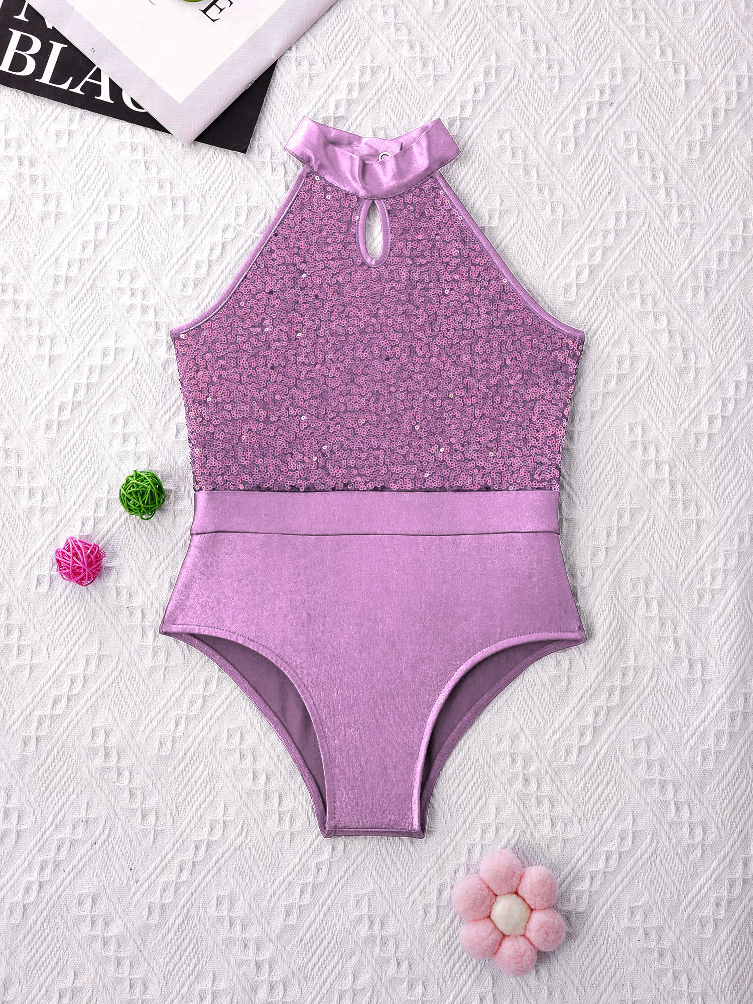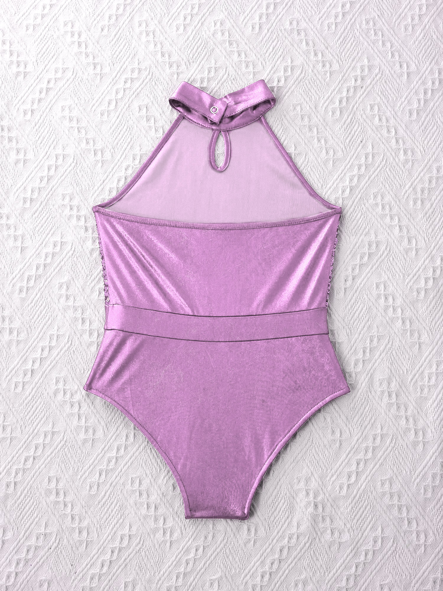 Купальник изготовлен из полиэстера и пайеток, ручная стирка.