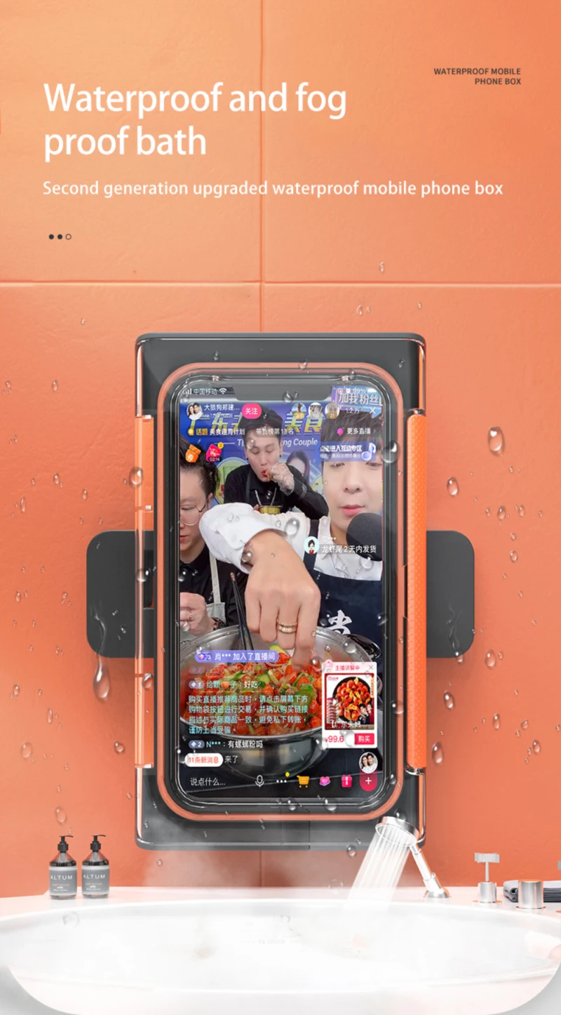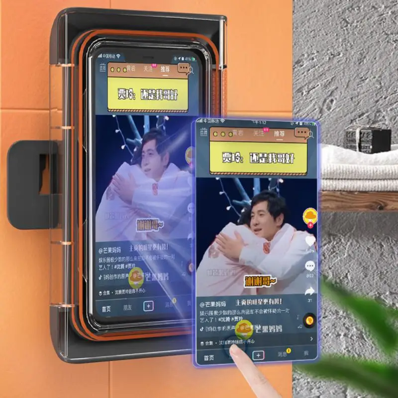 【Новая обновленная версия】 Двойной чехол повышенной прочности с водонепроницаемой структурой и герметичный корпус дизайн, эта душевая держатель для телефона разработан с 0,25 мм толщиной гибкий сенсорный экран, 100% водонепроницаемый, анти-туман, сильной адгезией, высокочувствительный сенсорный экран и оригинальное качество звука, что позволяет перемещать экран телефона, чтобы регулировать громкость, переключать песни, играть в игры, Смотрите фильмы, просматривайте новости и многое другое во время принятия душа.
