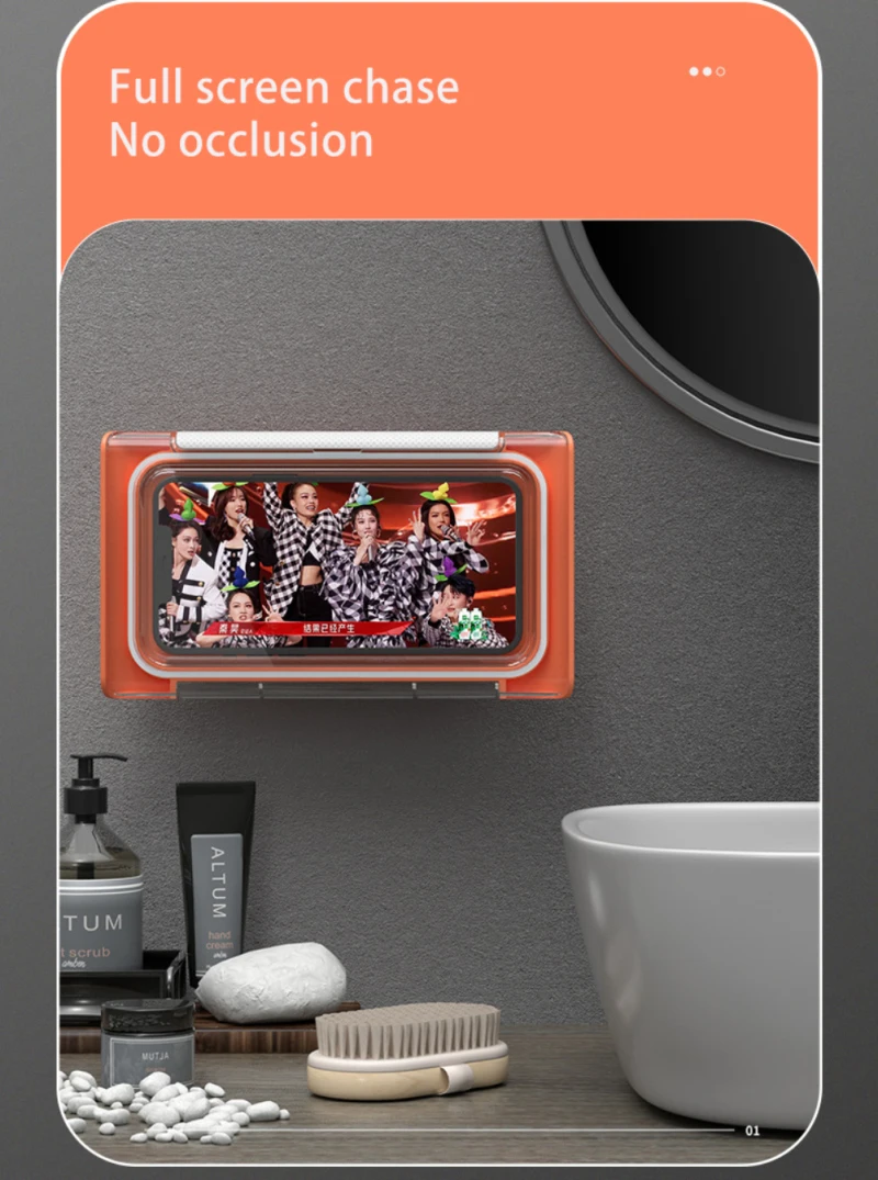 【Простота в использовании】: Настенный держатель для телефона является идеальным компаньоном для вашей ванной комнаты, туалета, ванны и кухни, что позволяет слушать музыку во время купания или смотреть видео во время приготовления пищи; Вам не придется беспокоиться о пятнах от масла и воды, которые не дают Вам прикоснуться к телефону, так как этот держатель телефона имеет прозрачный и водонепроницаемый экран.