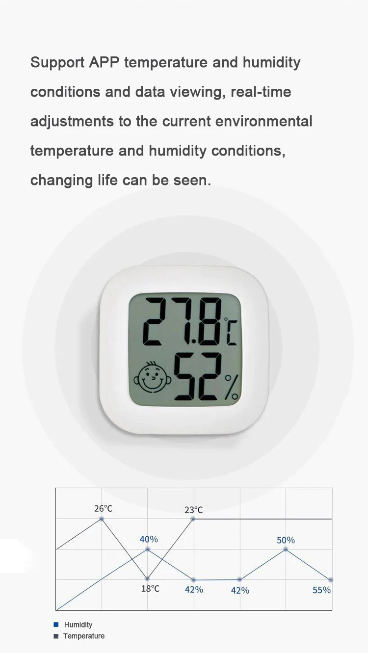 В основном используется для определения текущей температуры в помещении и влажности, чтобы понять значение температуры и влажности в окружающей среде в реальном времени, чтобы сделать соответствующие улучшения, чтобы вы и ваша семья могли иметь здоровую и комфортную среду для жизни