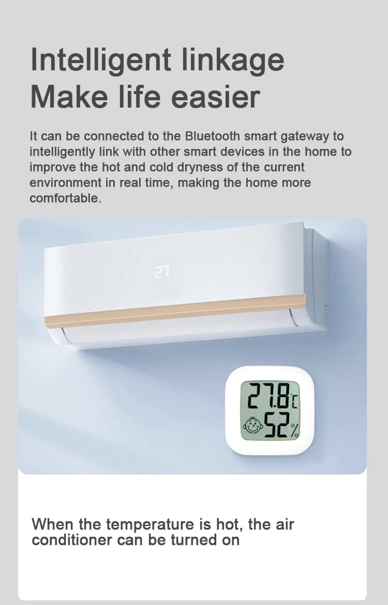 Датчик температуры и влажности Bluetooth-это устройство, которое контролирует температуру и влажность в помещении в режиме реального времени. Он использует высокоточный датчик и поддерживает беспроводное соединение Bluetooth. С помощью Bluetooth шлюза, он может удаленно смотреть температуры и влажности условий и истории температуры и влажности данных на мобильный телефон, и поддерживает детей. Интеллектуальный режим guardian может улучшить внутреннюю среду в соответствии с значением температуры и влажности и заботиться о здоровом росте ребенка. Он поддерживает приложение Tuya Smart и может использоваться в умной связи с умными кондиционерами воздуха и увлажнителями. Поддержка пользовательских названий и места установки, несколько устройств могут быть подключены к шлюзу Bluetooth в то же время, для реализации интеллектуального мониторинга всего дома, автоматического управления и управления, И дать вам больше здоровья для вашей семьи