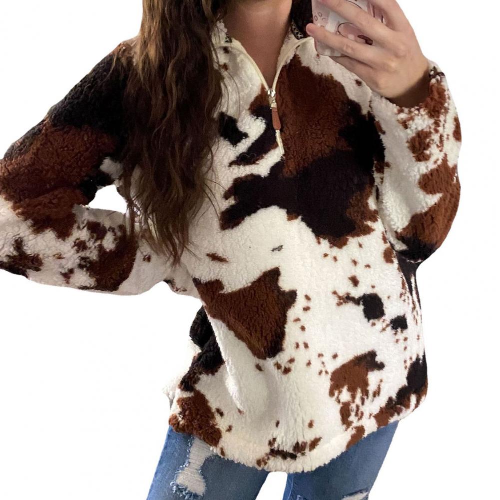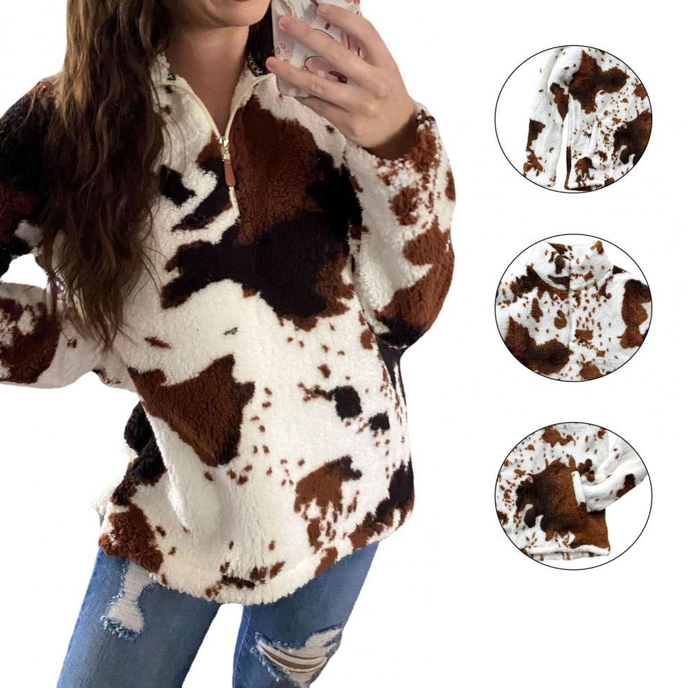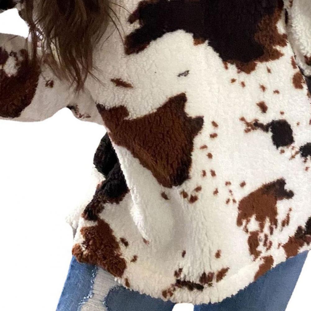 Пушистая толстовка, мягкая ветрозащитная теплая Женская куртка с рисунком коровы для повседневной жизни
