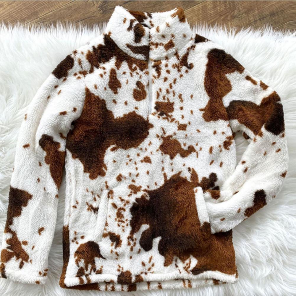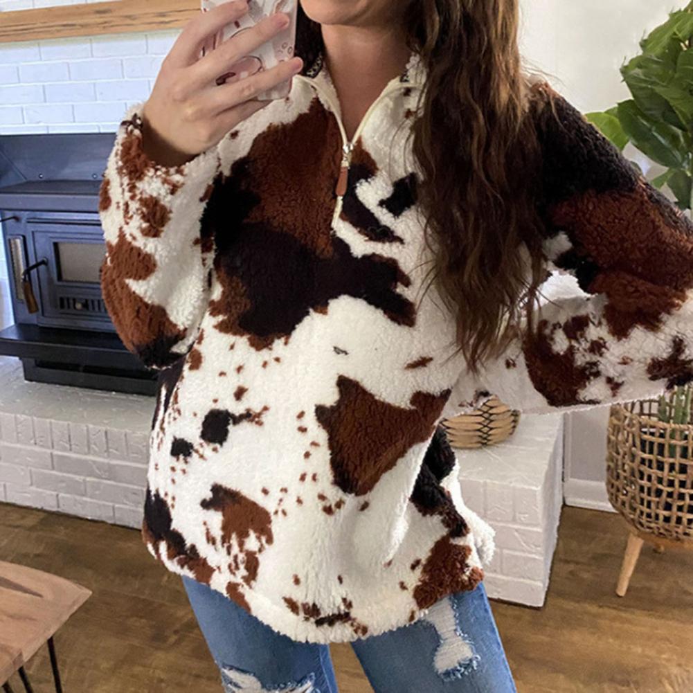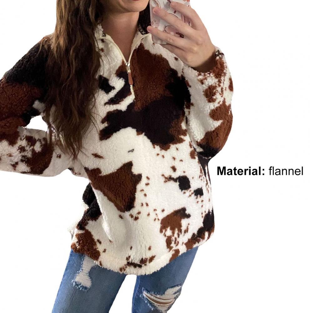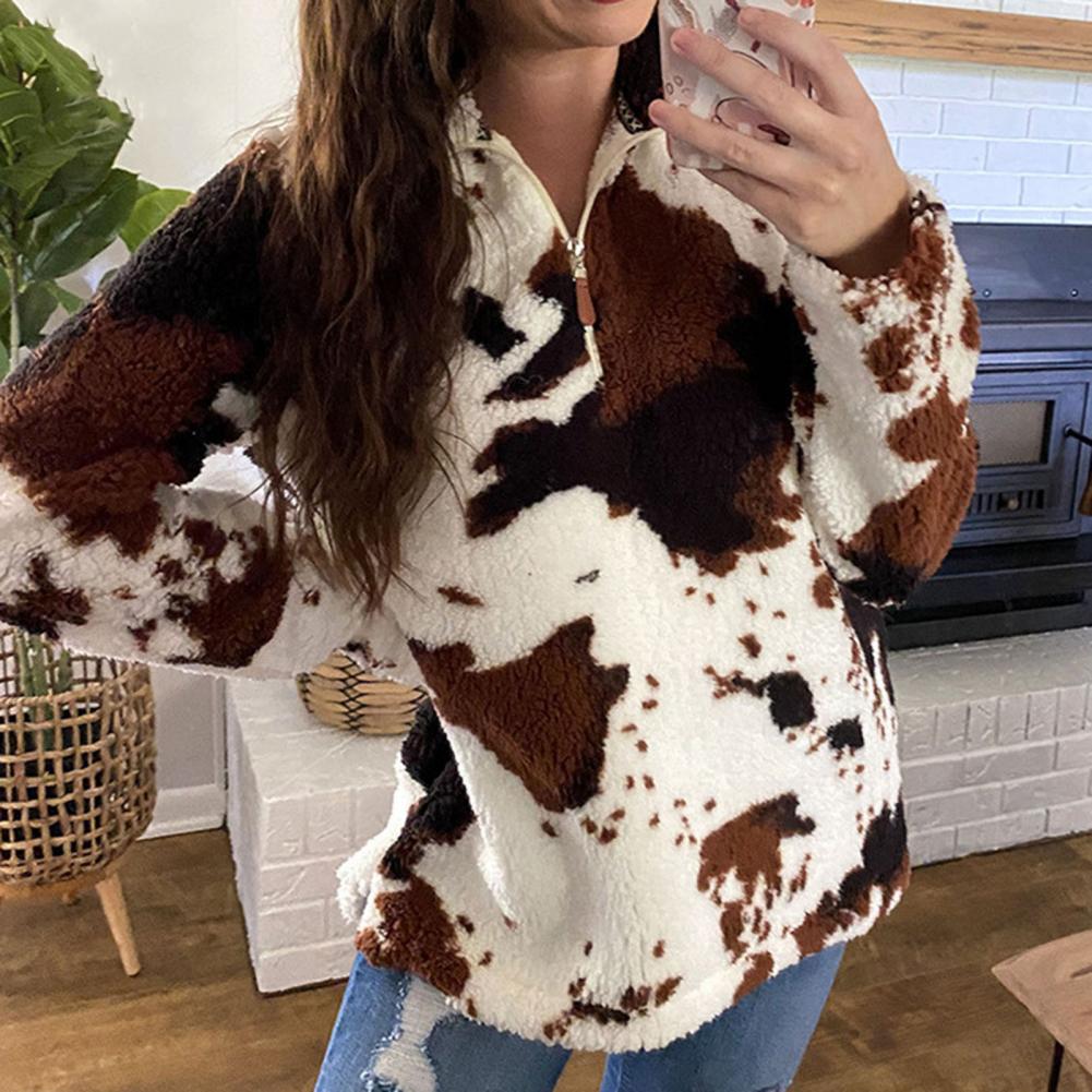 Пушистая толстовка, мягкая ветрозащитная теплая Женская куртка с рисунком коровы для повседневной жизни