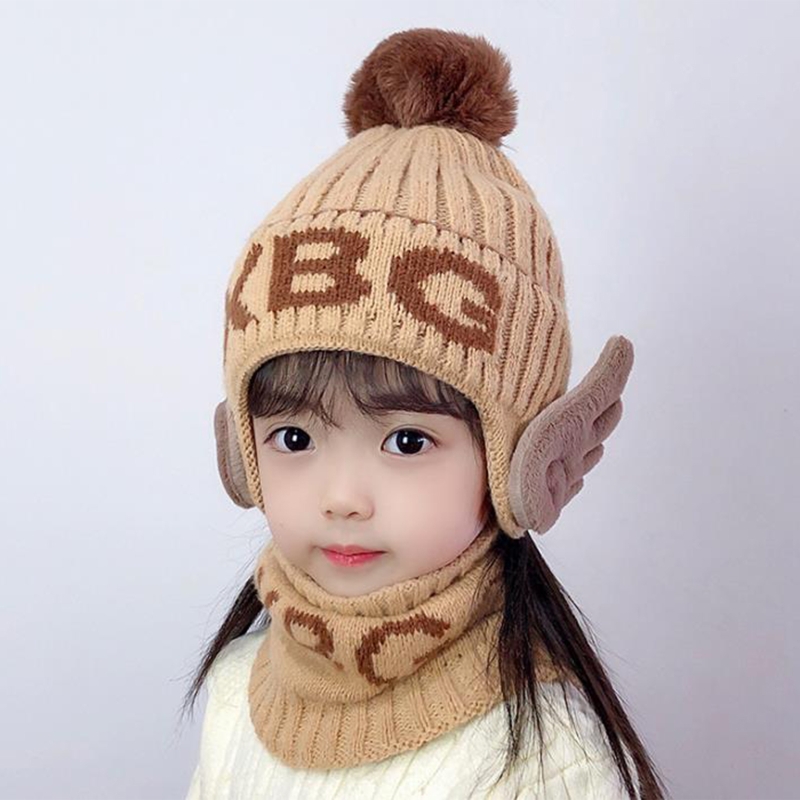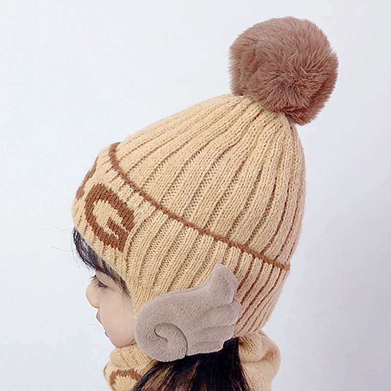 C6UD модная шапочка с буквенным принтом, вязанные шарф и шапка с помпоном для мальчиков и девочек на открытом воздухе в холодную погоду, катание на лыжах, Пешие прогулки, Велоспорт