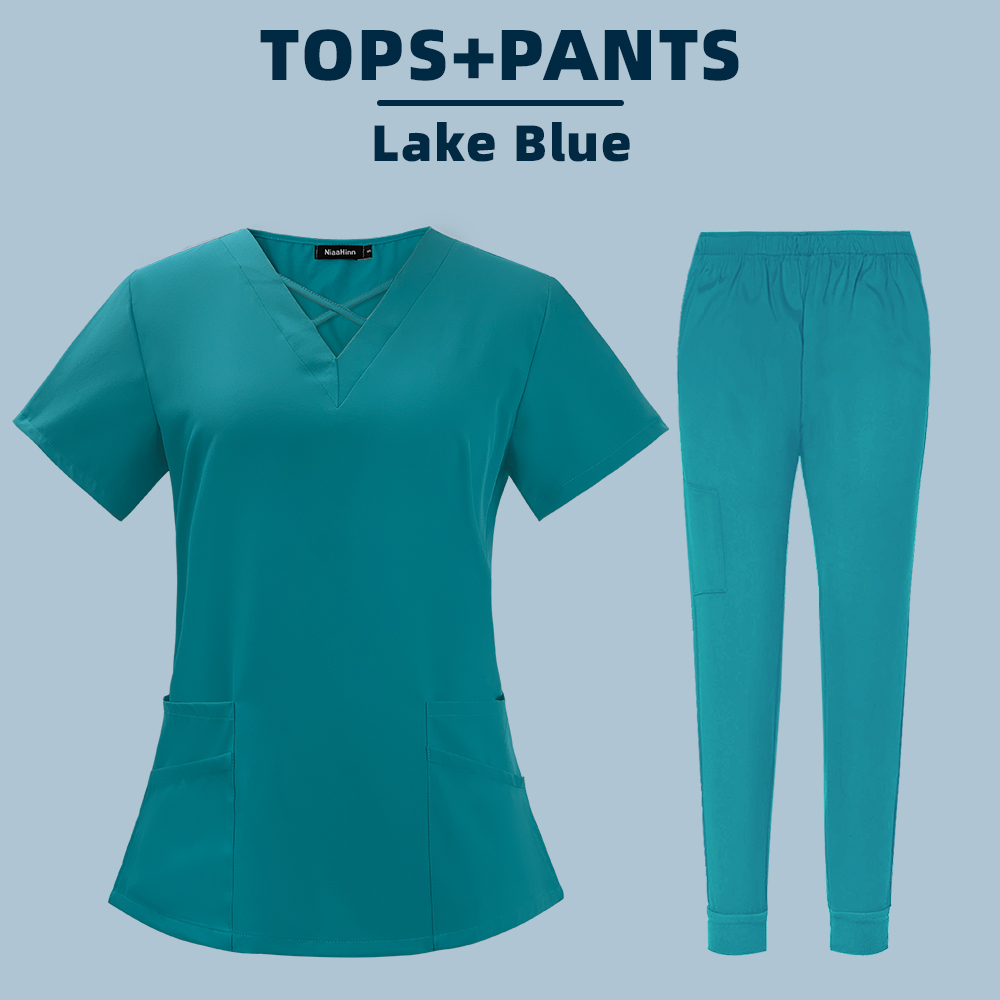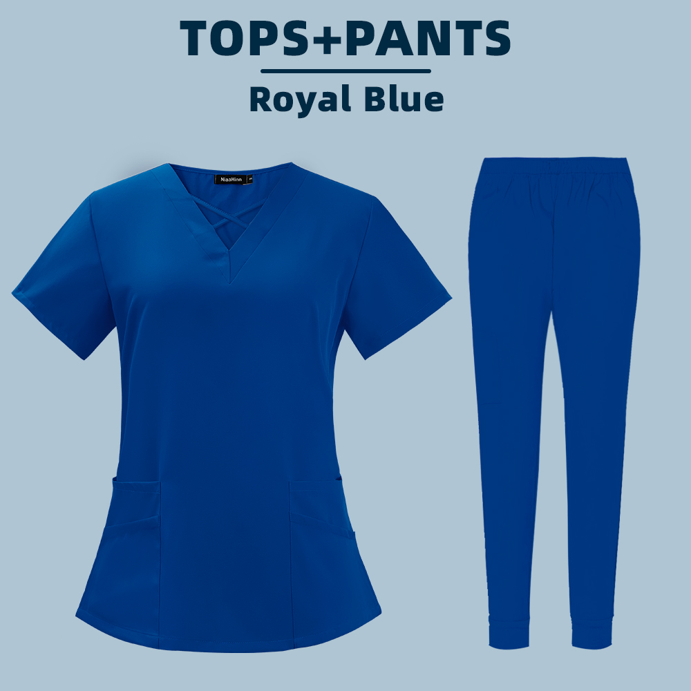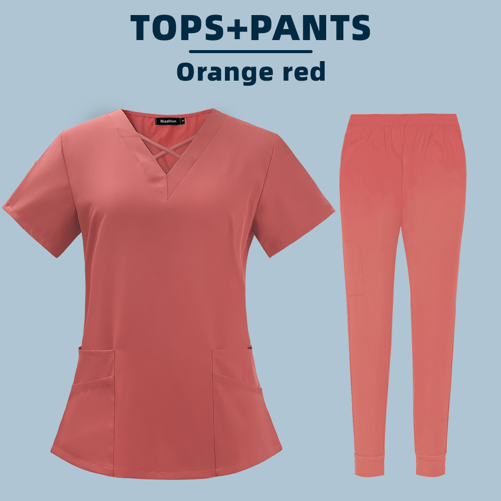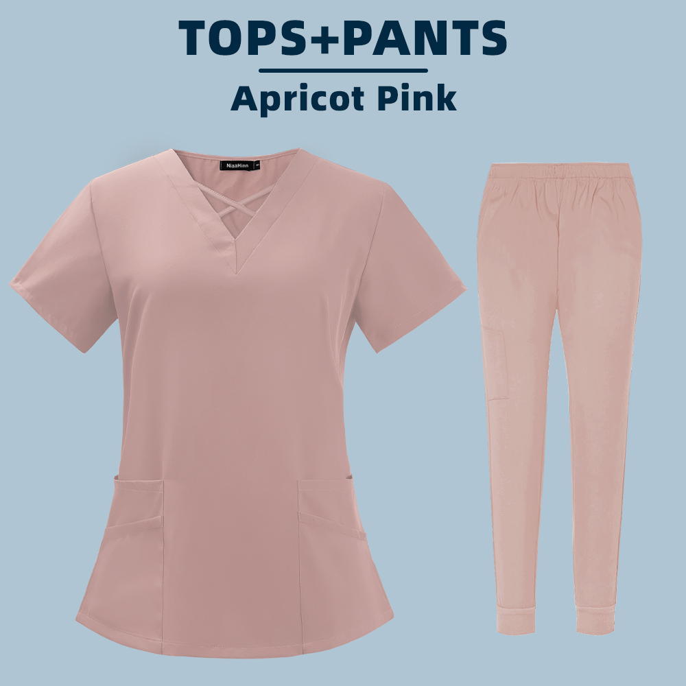Однотонные скрабы с V-образным вырезом костюмы (Топы + брюки) косметологическая