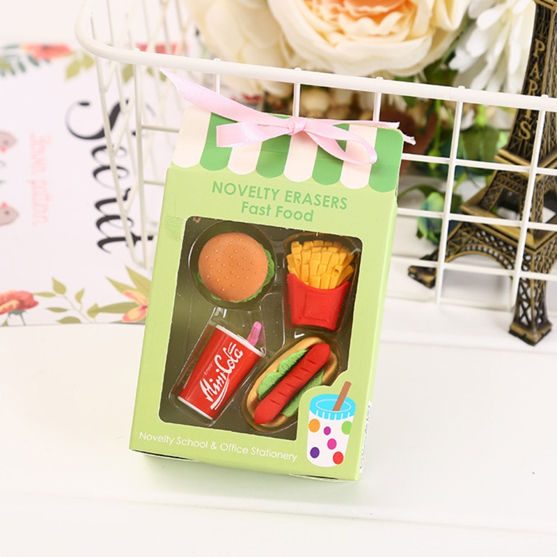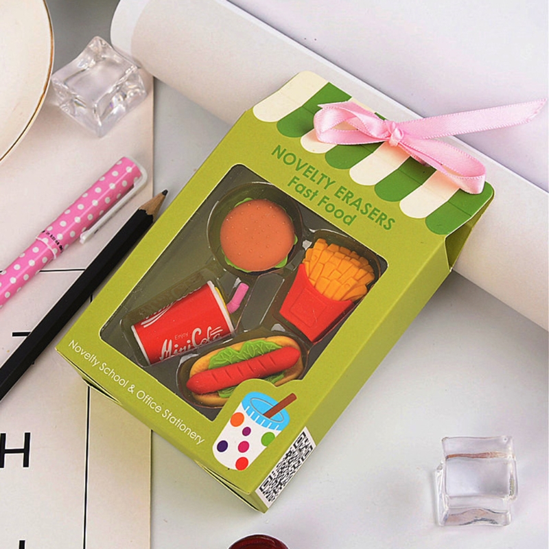 Дизайн UNIQUIE. Принимает большинство продуктов питания и десертов, таких как мороженое, пирожные, кексы, кола, гамбургеры, картофель фри, хот-доги и т. д. любимые Ластики для детей. Отличный подарок для мальчиков, девочек, студентов, даже взрослых. Снимает скуку и делает обучение и работу более интересными.