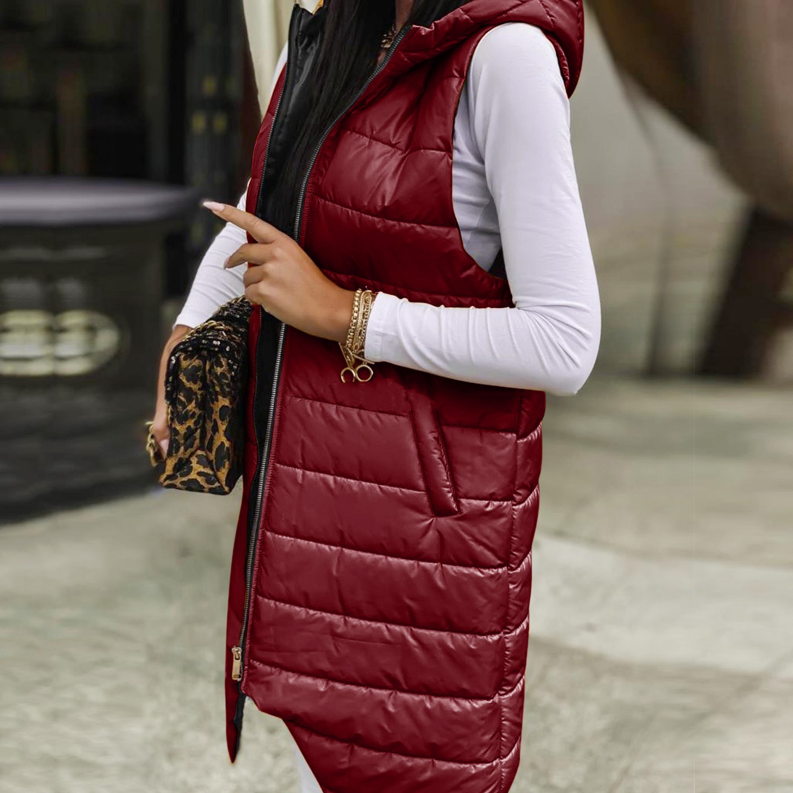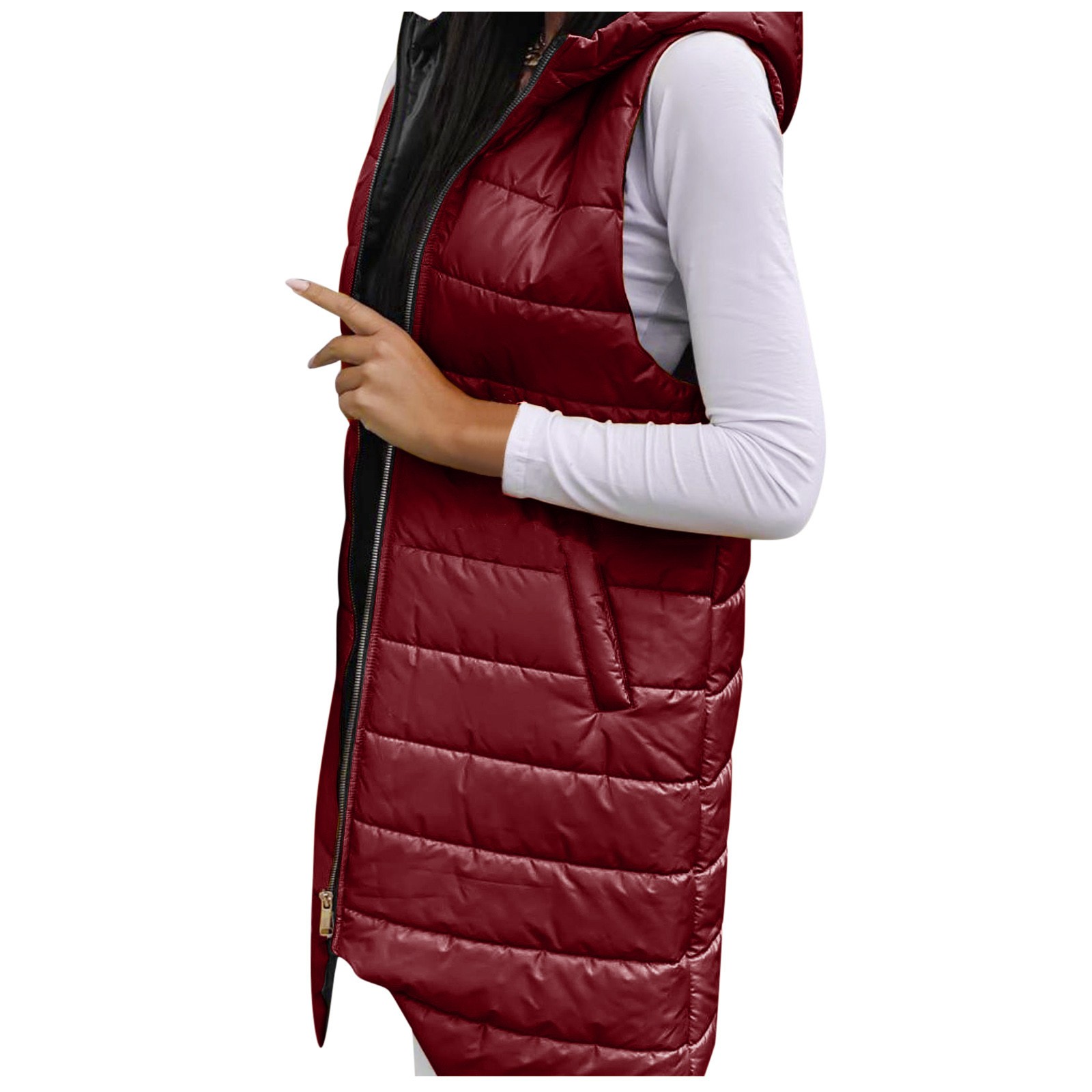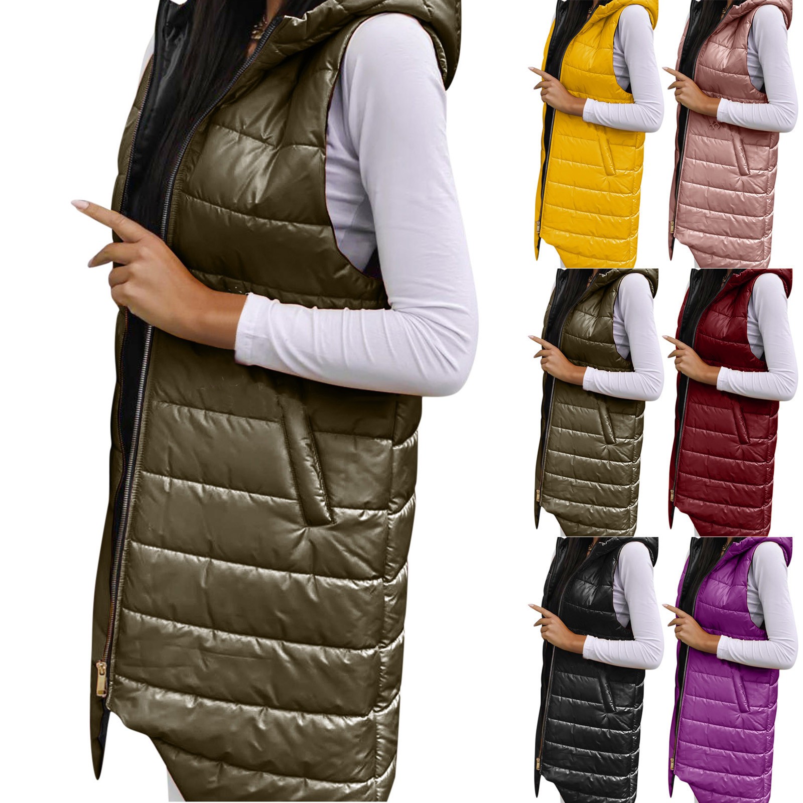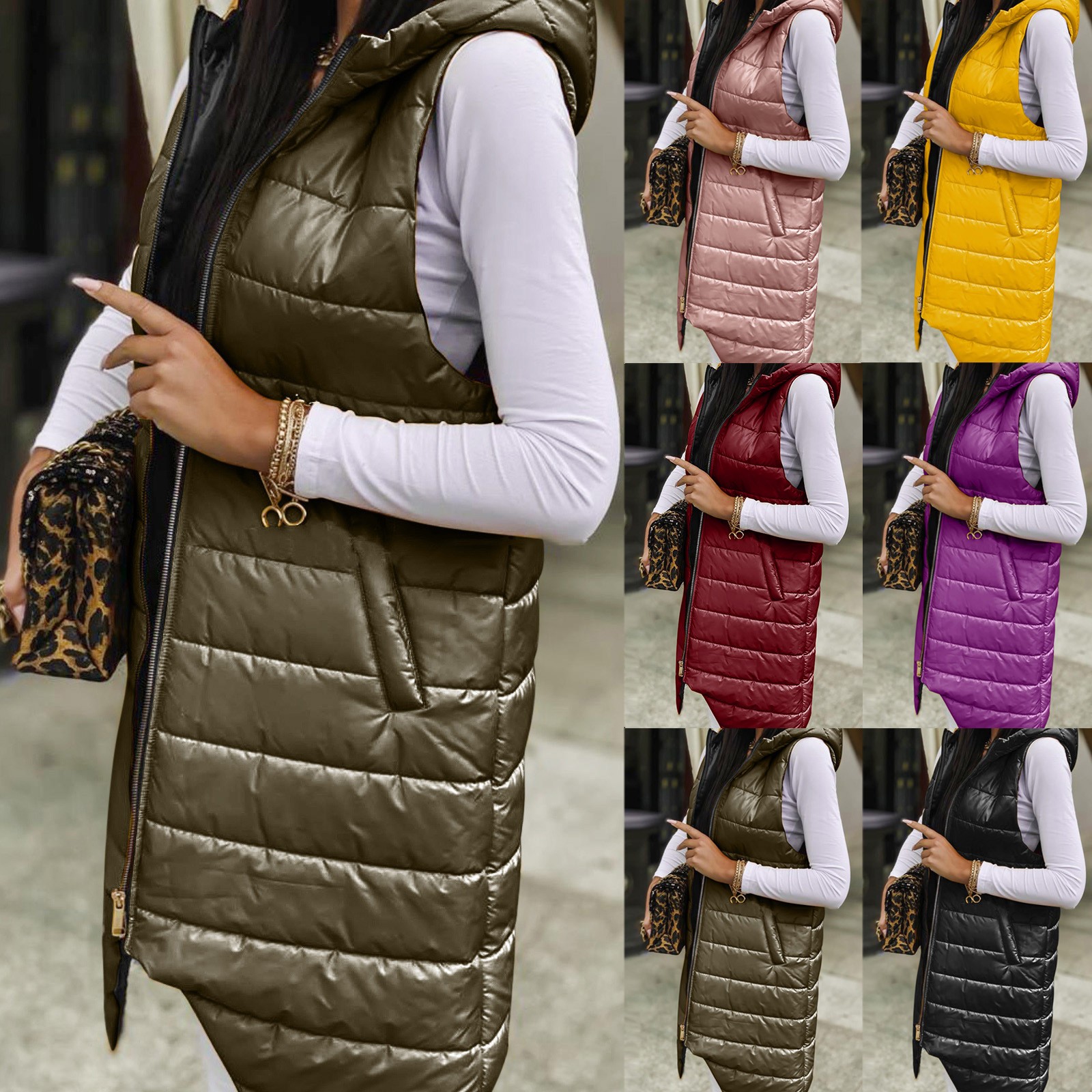 Женское длинное зимнее пальто, жилет с капюшоном, без рукавов, теплый пуховик с карманами, стеганый жилет, пуховик, стеганая куртка для улицы