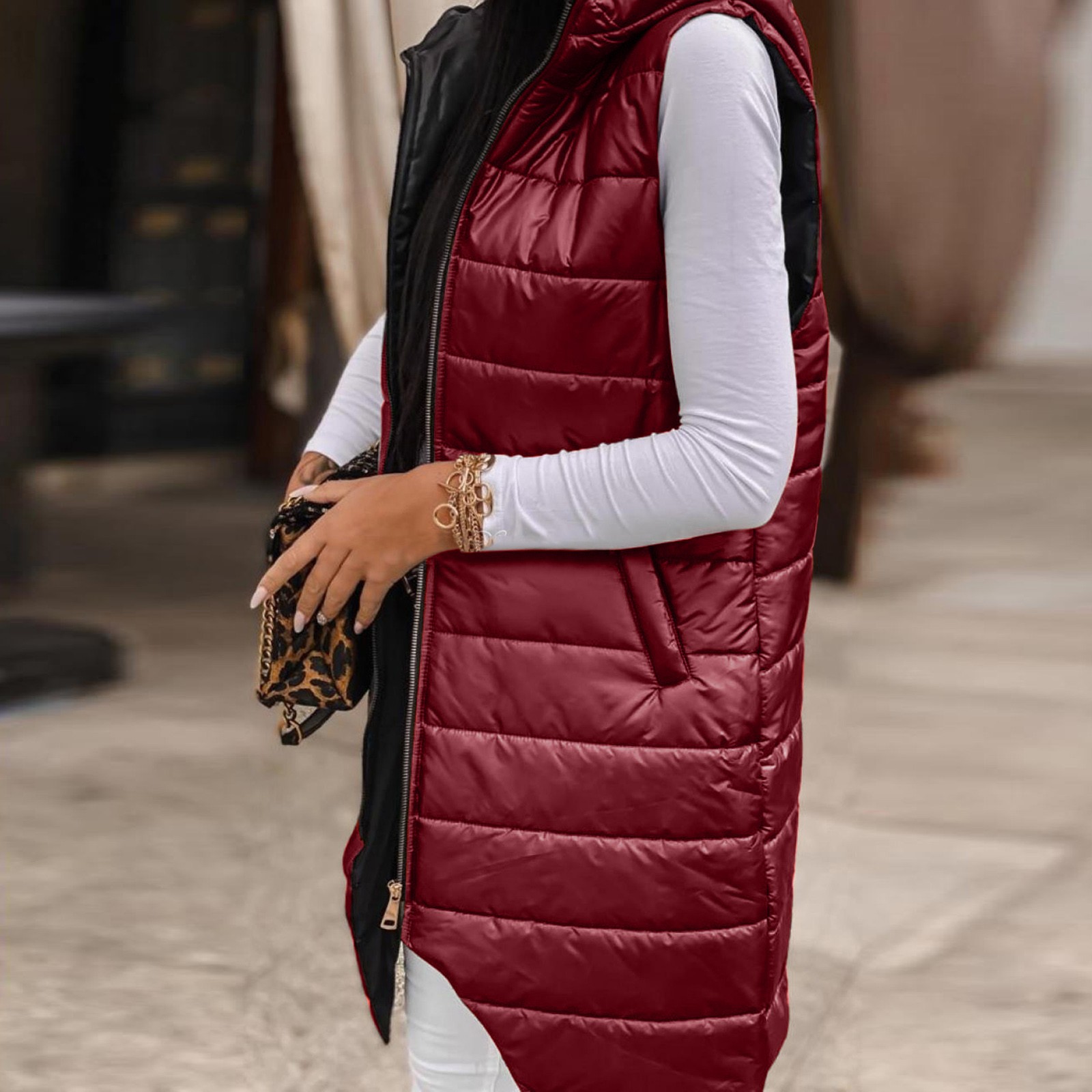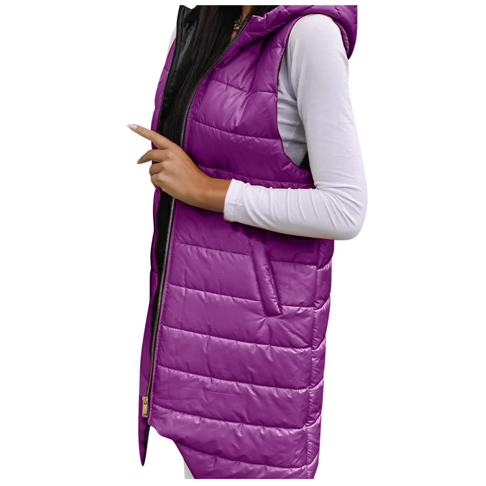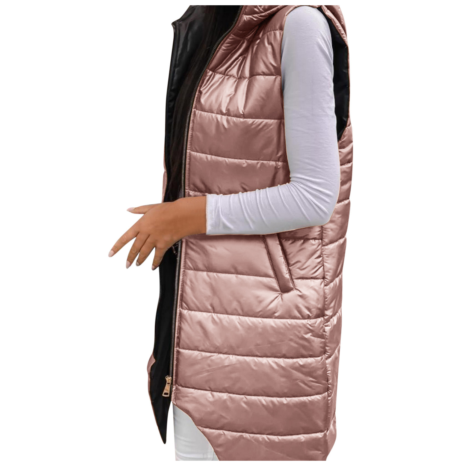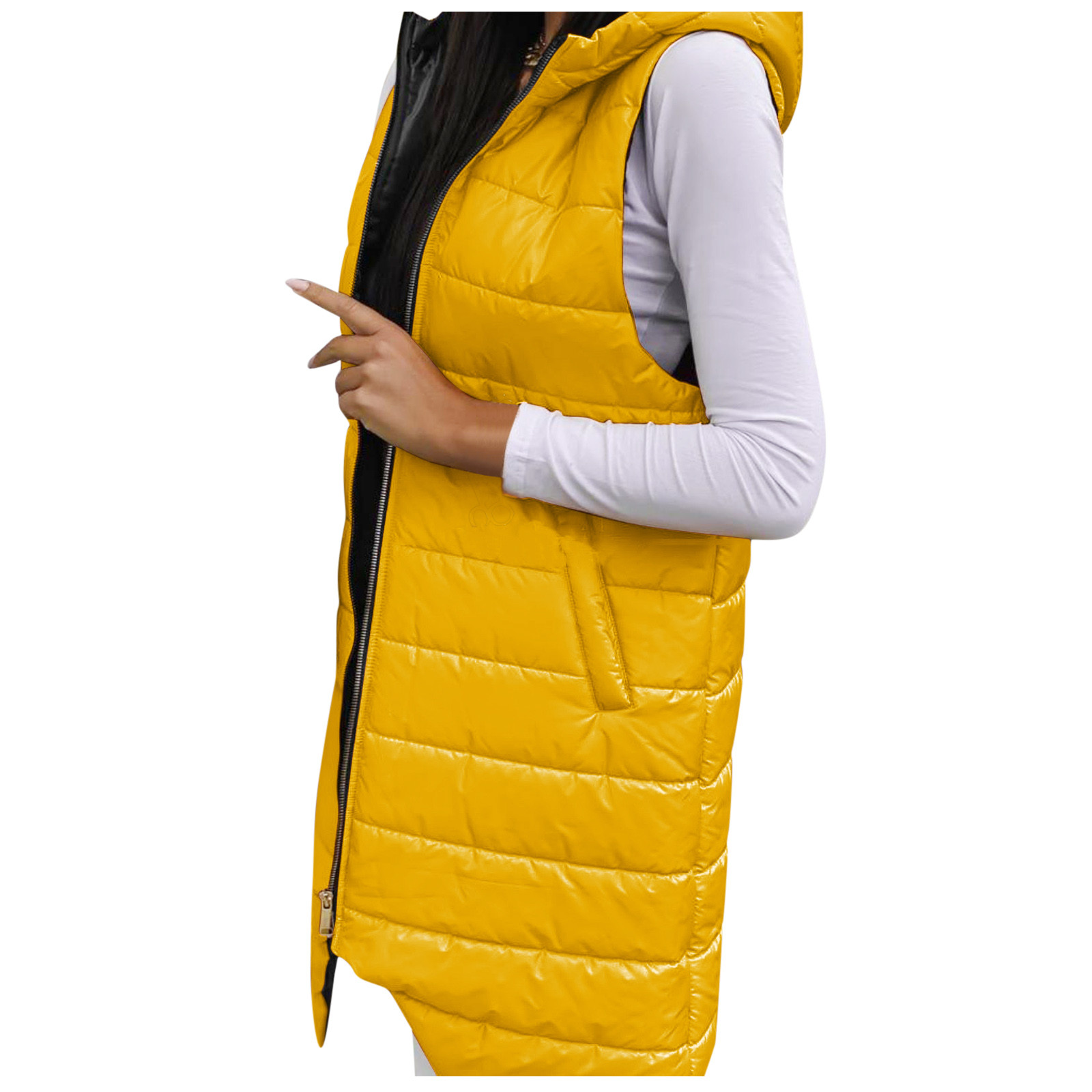 Женское длинное зимнее пальто, жилет с капюшоном, без рукавов, теплый пуховик с карманами, стеганый жилет, пуховик, стеганая куртка для улицы