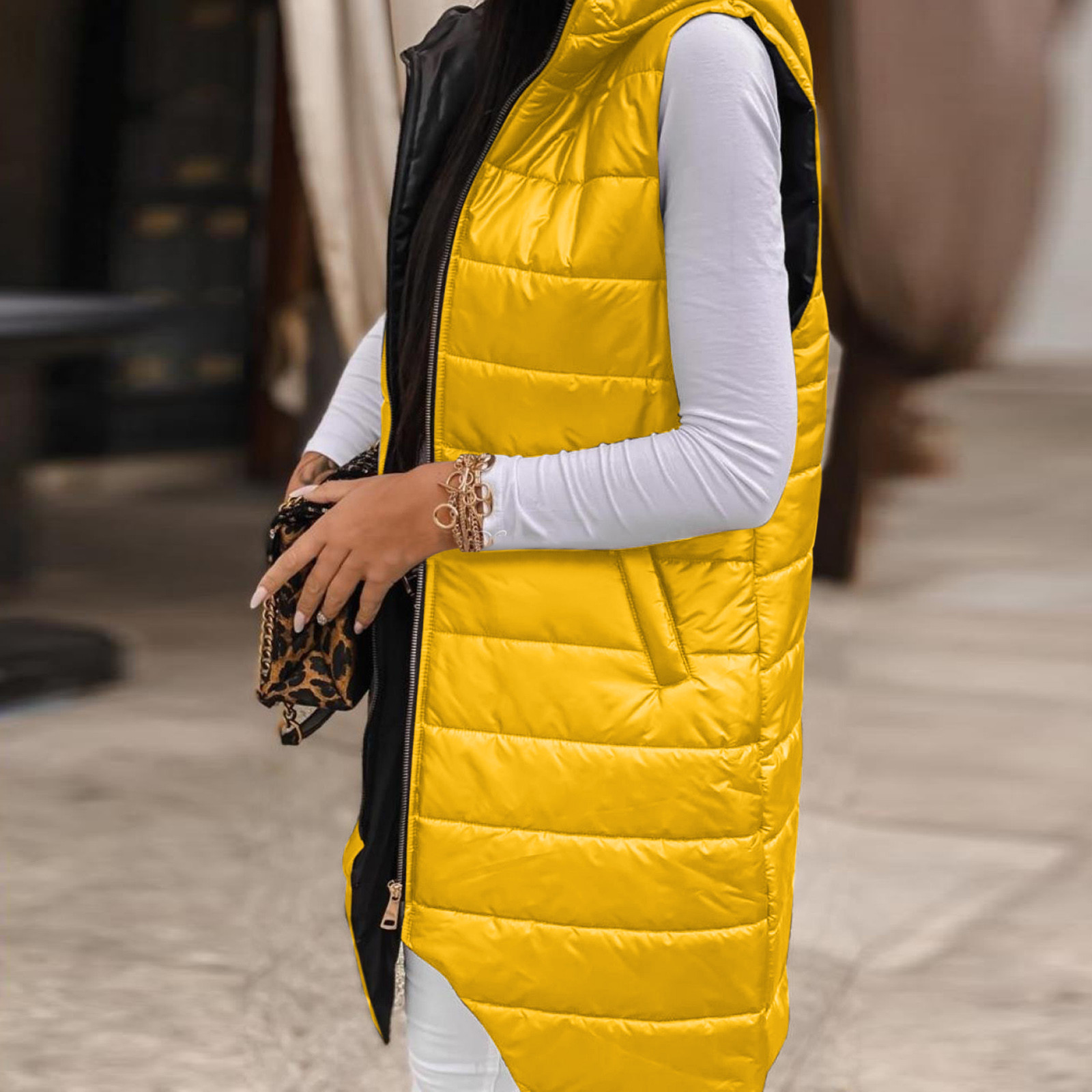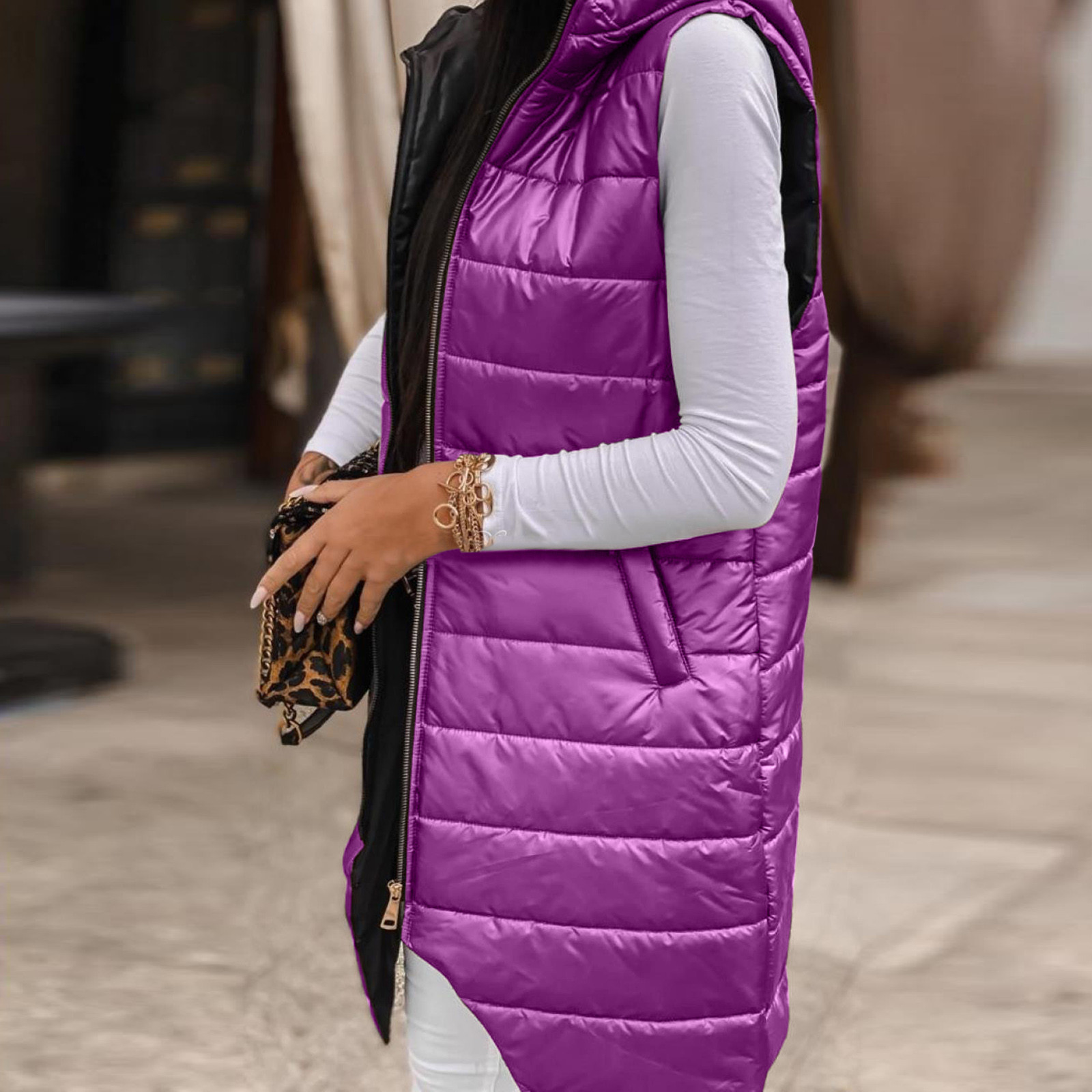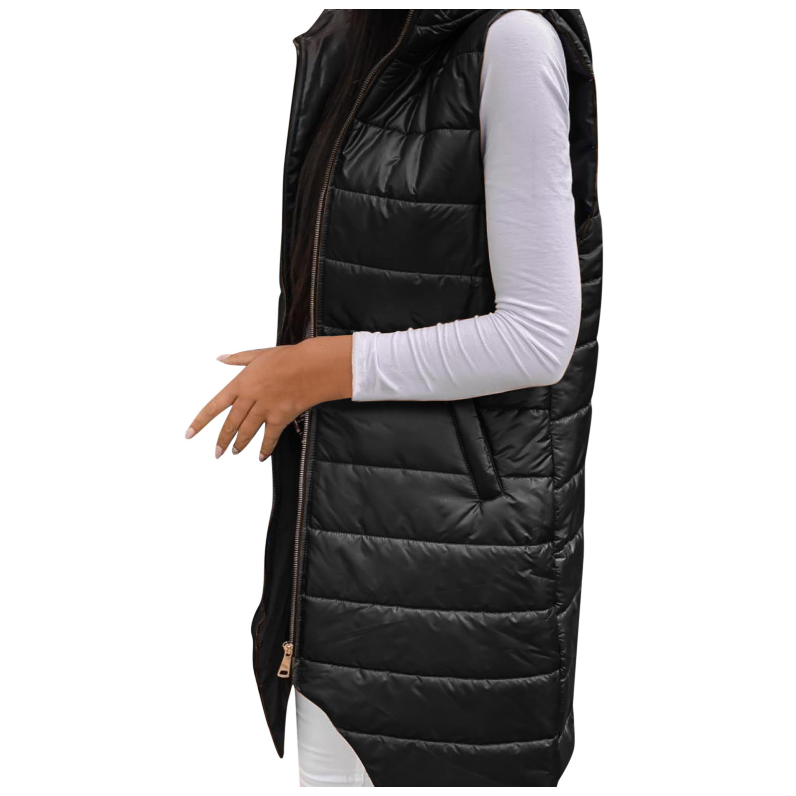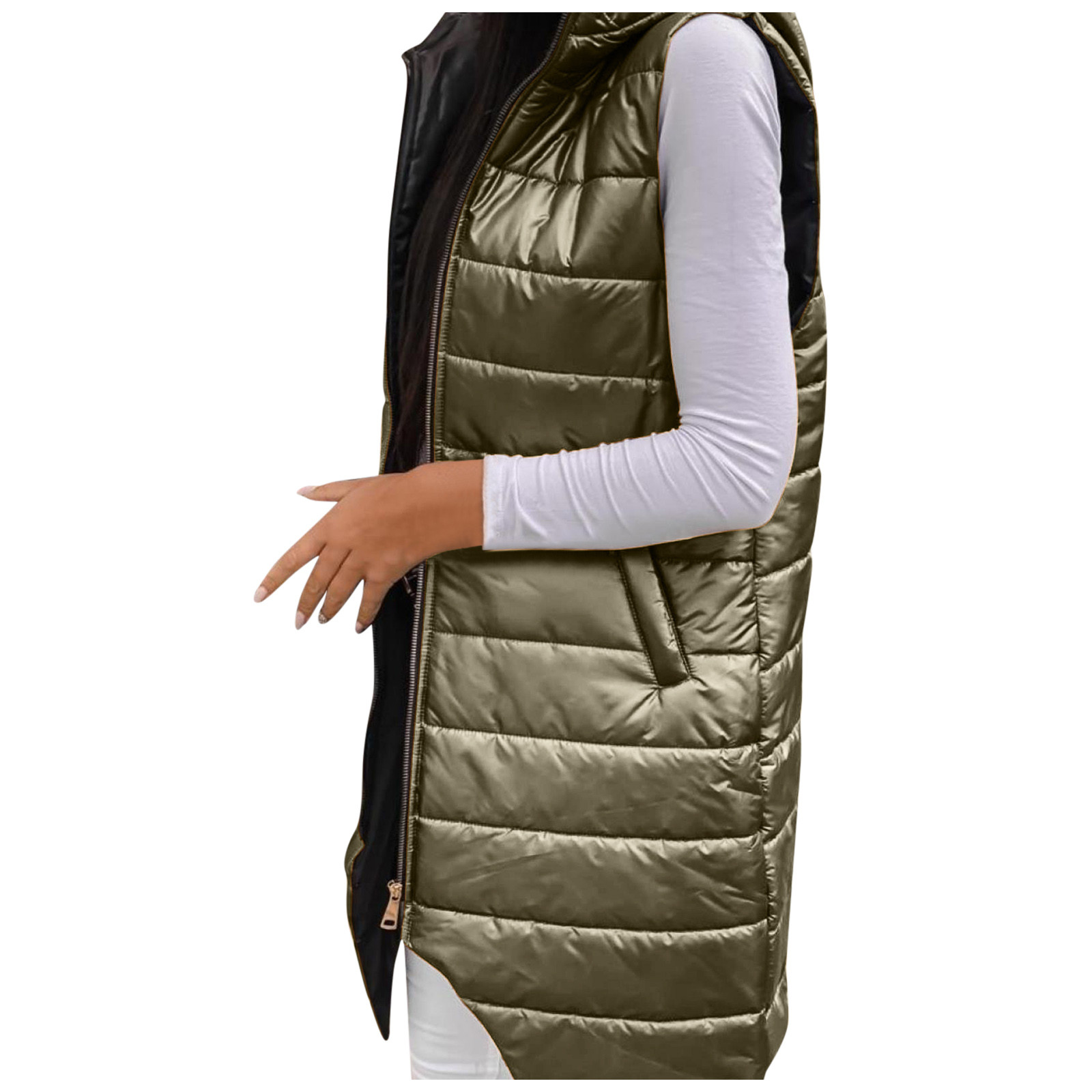 Женское длинное зимнее пальто, жилет с капюшоном, без рукавов, теплый пуховик с карманами, стеганый жилет, пуховик, стеганая куртка для улицы