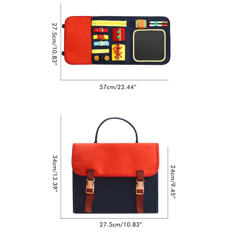 3. Portable and lightweight design: There are two ways to carry the Busy Board: backpack and handheld. With adjustable shoulder strap, it is very convenient to carry.
