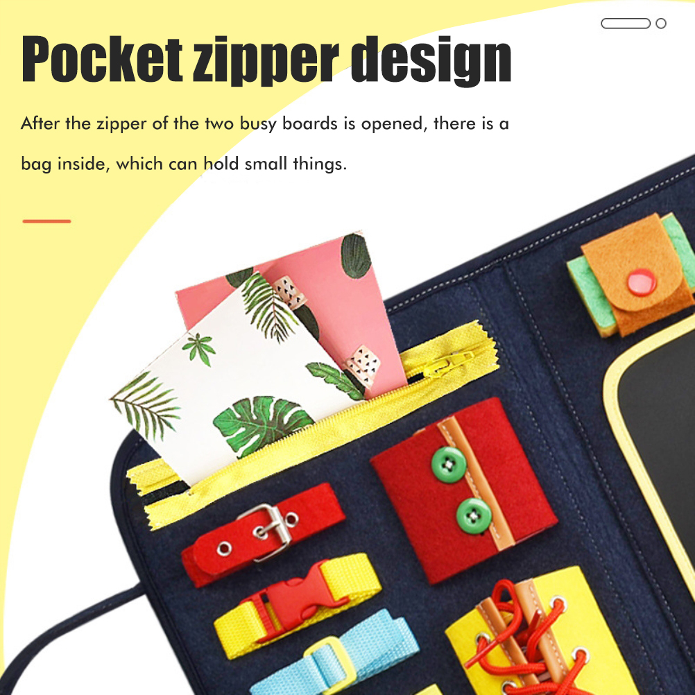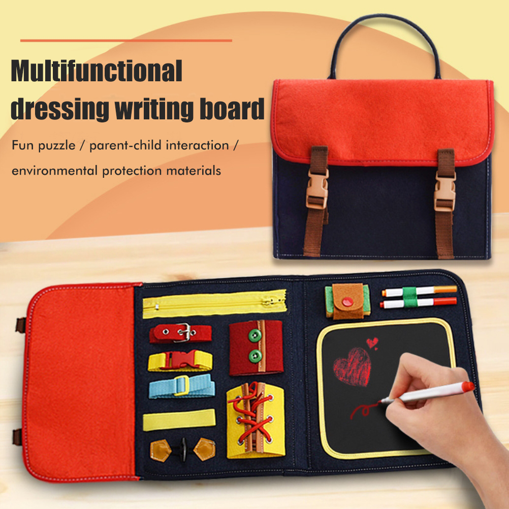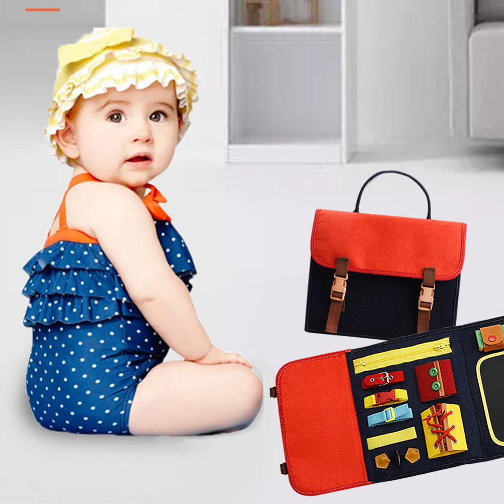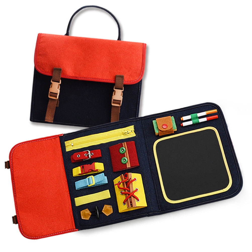 Portable Felt Busy Board Preschool Learning Toys Sensory Activity Board with Adjustable Shoulder Strap Educational Toys for kid