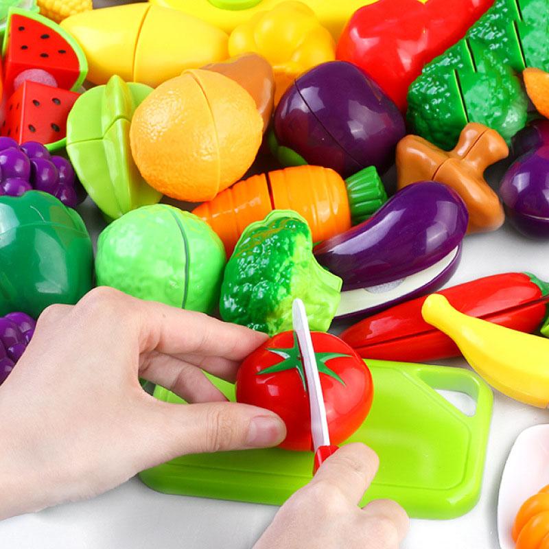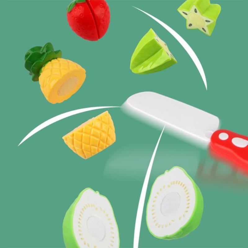 Посылка включает в себя: 1 набор забавных игрушек для резки овощей и фруктов.