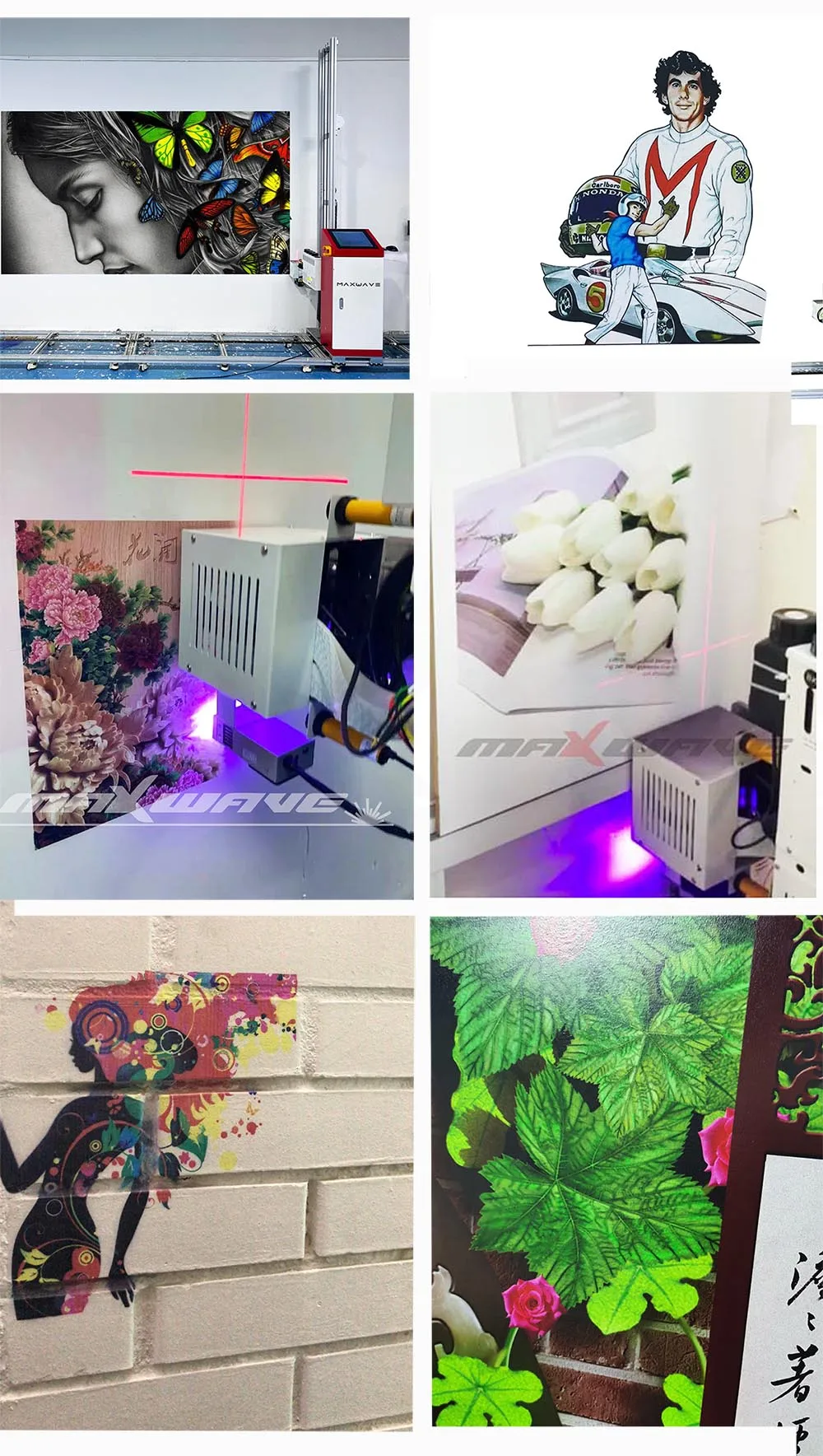 Для удовлетворения спроса клиентов на большинство широкоформатных принтеров Maxwaver Laser запустил новый вертикальный настенный принтер. Это прямое к стене струйный принтер принимает импортированный пьезоэлектрический сопло в Японии. Картина четкая и яркая, конструкция машины гладкая, корпус машины съемный, портативный и простой в использовании. Эта машина применима к различным стеновым рисункам, таким как шпатлевка для стен, краска стен, стен плитки, диатомовая грязевая стена, холст, бумага, стекло, керамика, дерево, металл и т. д.