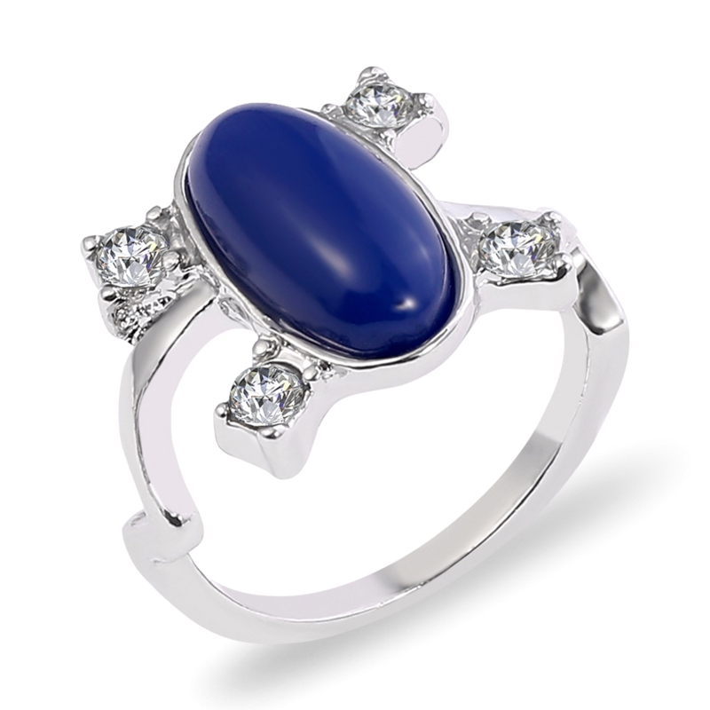 Материал-основа из цинкового сплава с классическим темно-синим камнем, прочная, полированная и удобная для повседневной носки.
