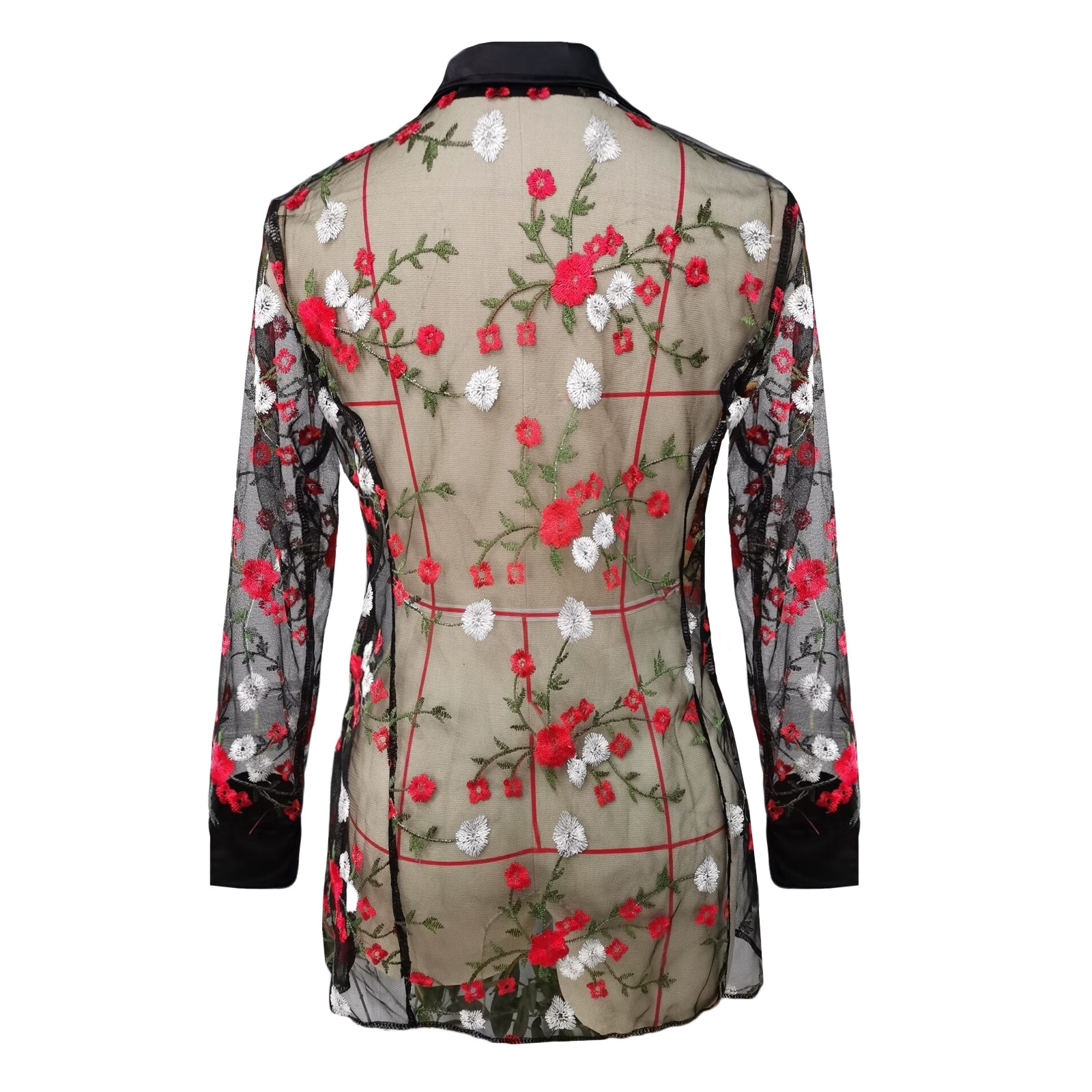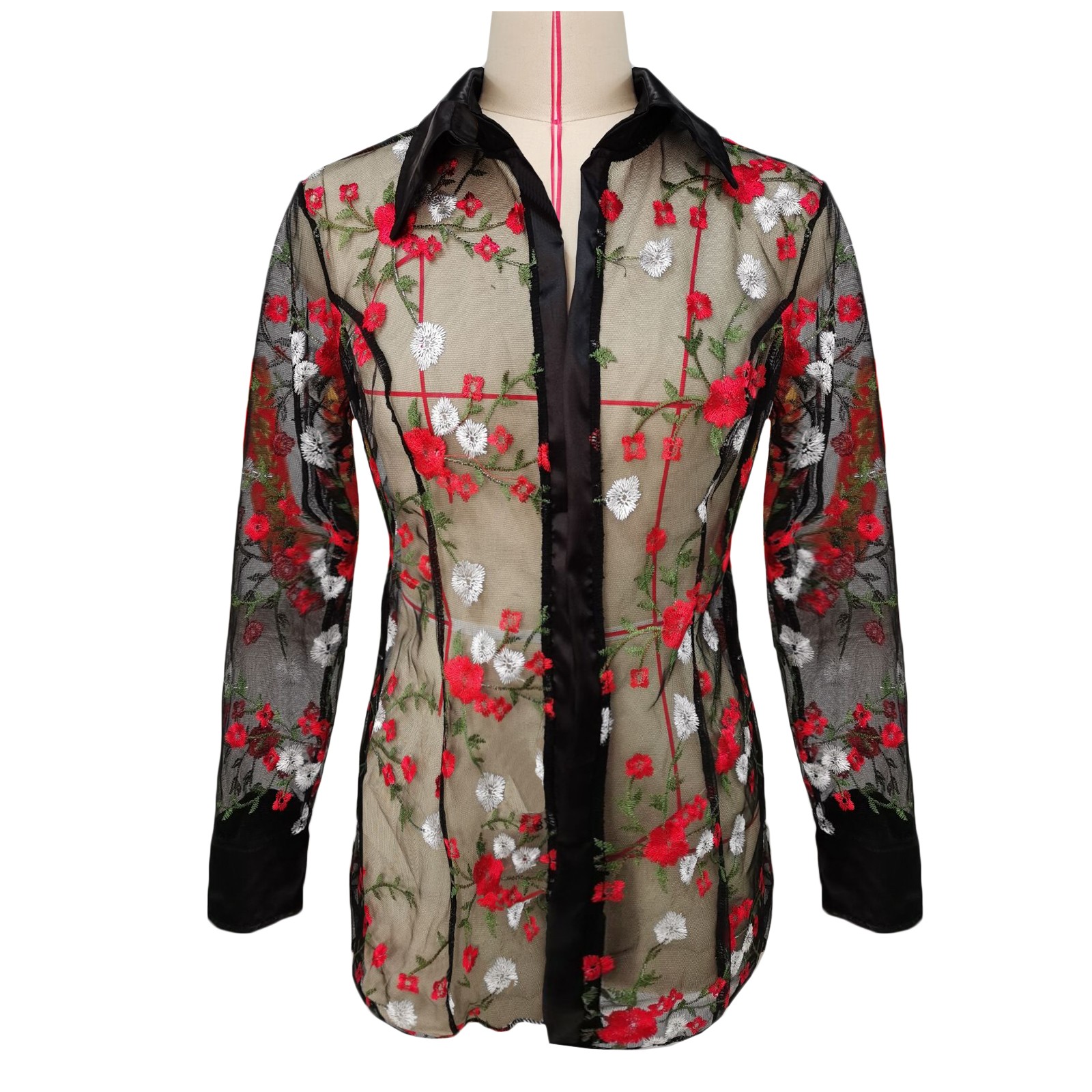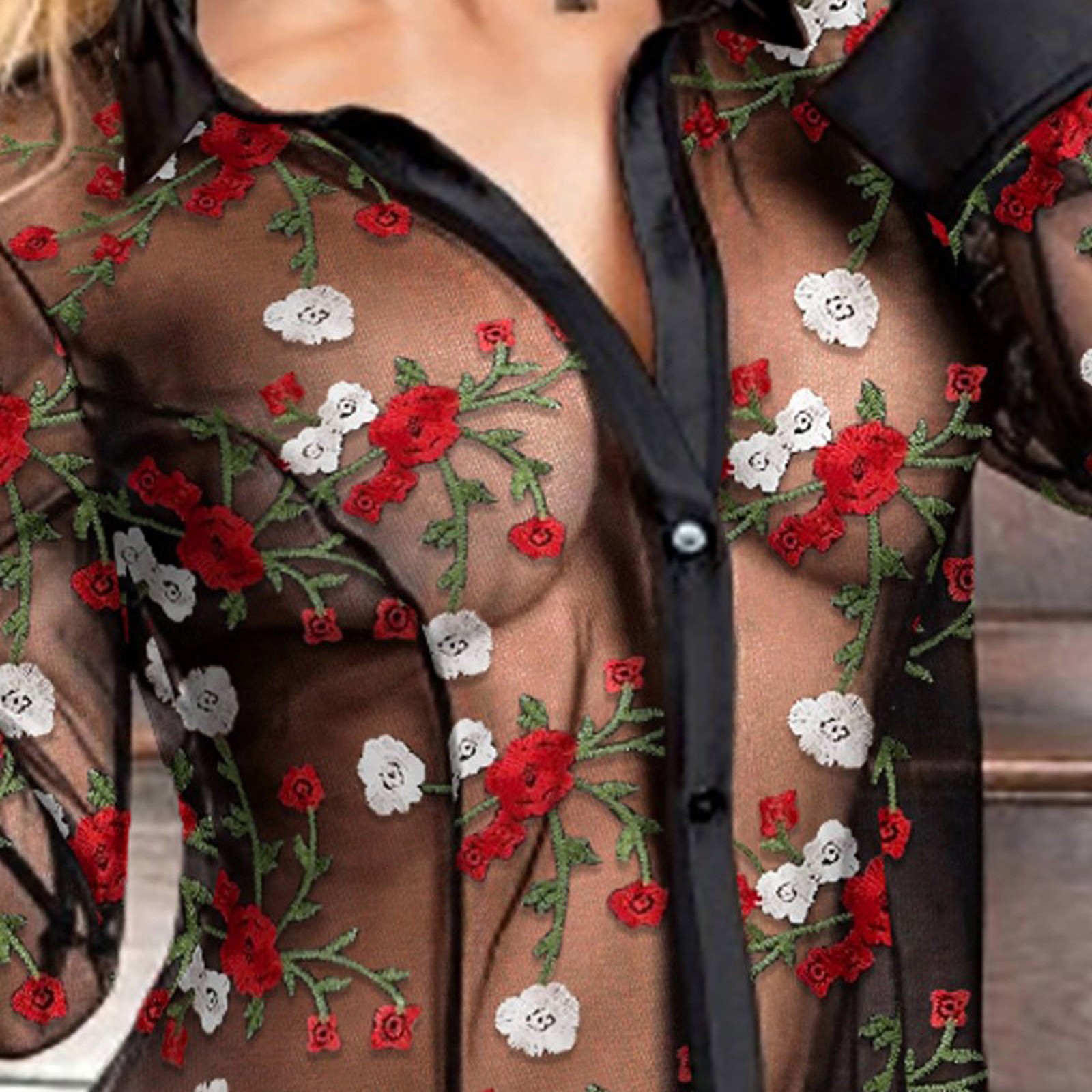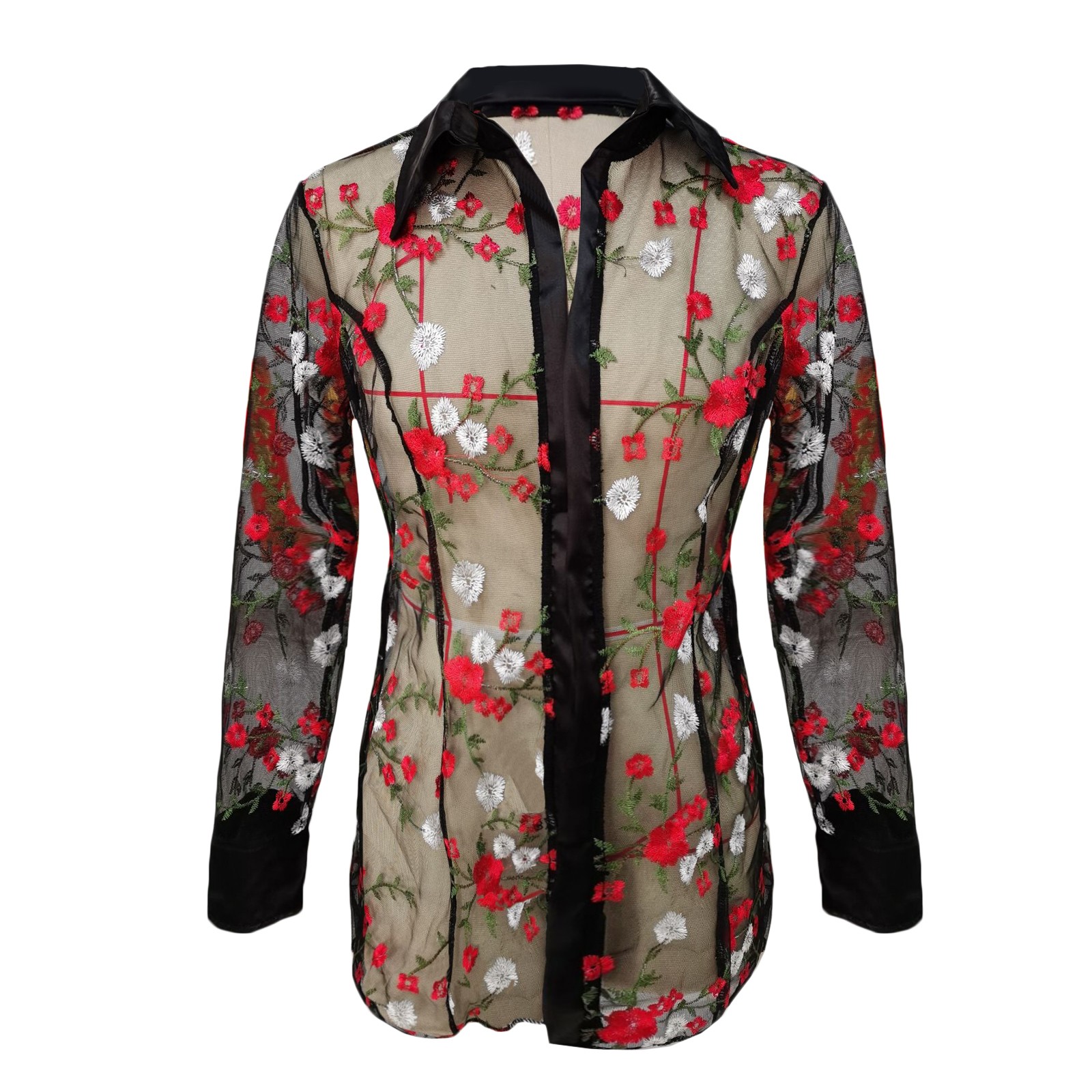 Новая вышитая Цветочная прозрачная сетчатая рубашка женское сексуальное боди нижнее белье, топы S-3XL