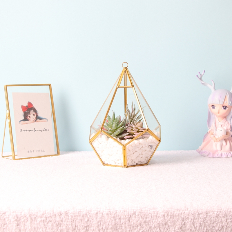 Золотые настенные Висячие стеклянные геометрические Террариум современный Крытый Открытый многогранник Алмазная КАПЛЕВИДНАЯ форма плантатор горшок декоративная ваза