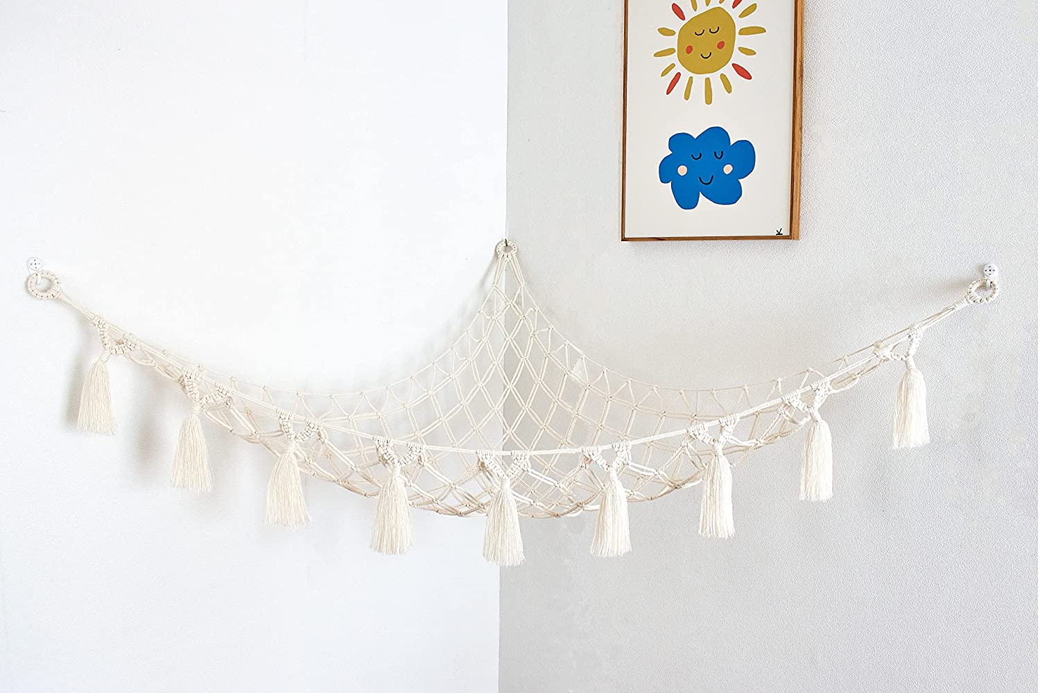Украсьте спальню вашего ребенка и держите эти игрушки с пола стильным макраме гамак для игрушек, который идеально подходит для комнат мальчиков и девочек.