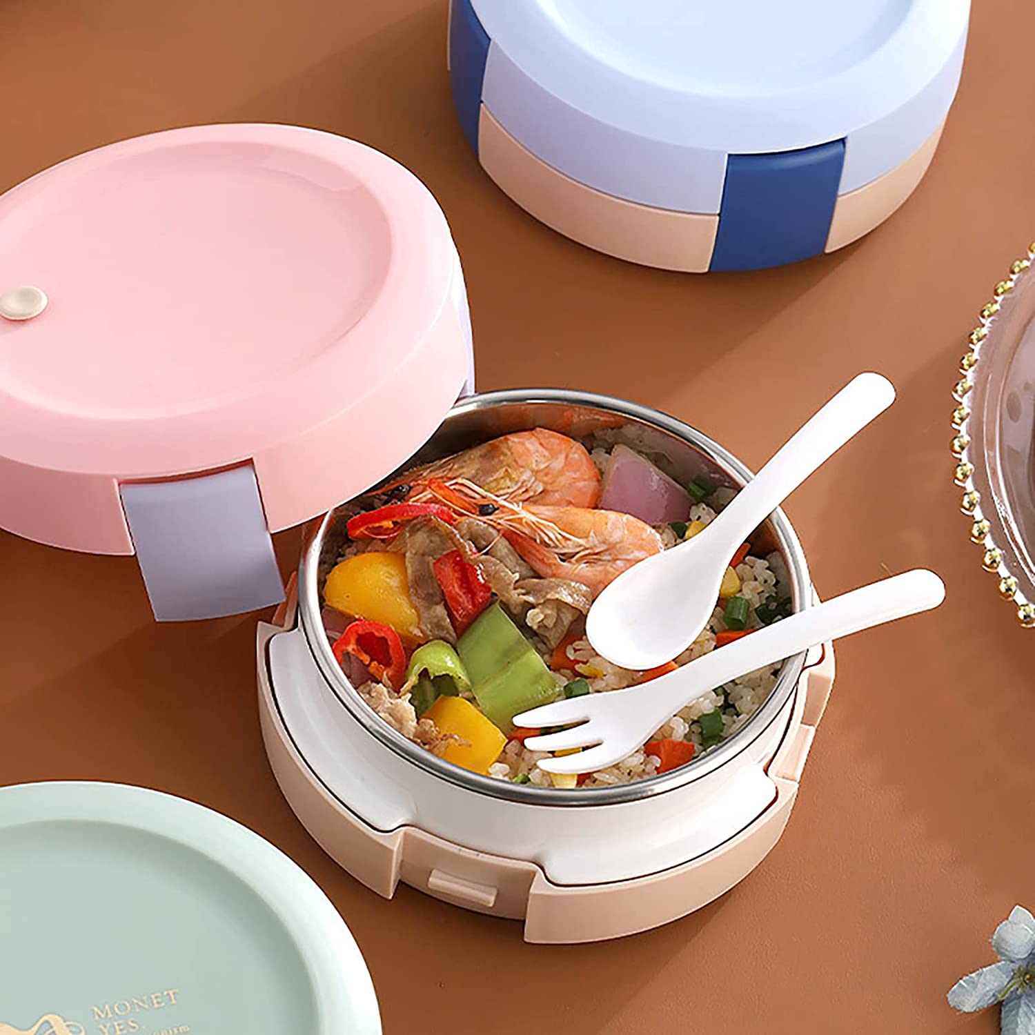 〖𝐌𝐨𝐫𝐞 𝐂𝐡𝐨𝐢𝐜𝐞〗3 Compartments-Microwave Safe/Round Lunch Containers/304 Stainless Steel Food Thermos.A variety of color choices.