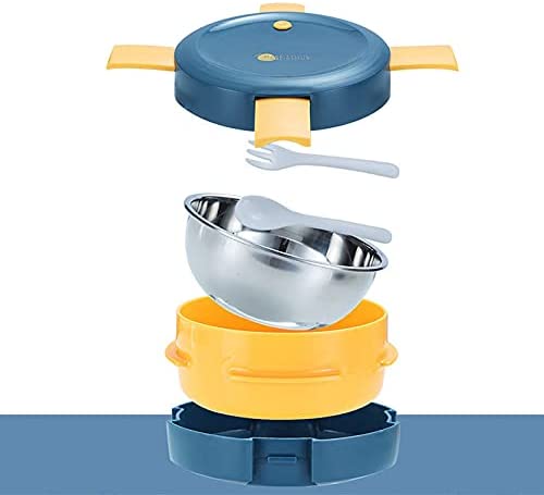 〖𝐅𝐚𝐬𝐡𝐢𝐨𝐧 𝐄𝐥𝐞𝐠𝐚𝐧𝐭 𝐋𝐮𝐧𝐜𝐡 𝐁𝐨𝐱〗Hot Food Lunch Containers for Daycare School Kid Hot Food. Leak-Proof, Stainless Steel, Silicone, PP. 1x Bento Box/Fork/Spoon.Size: 6.69" x 6.69" x 2.95"