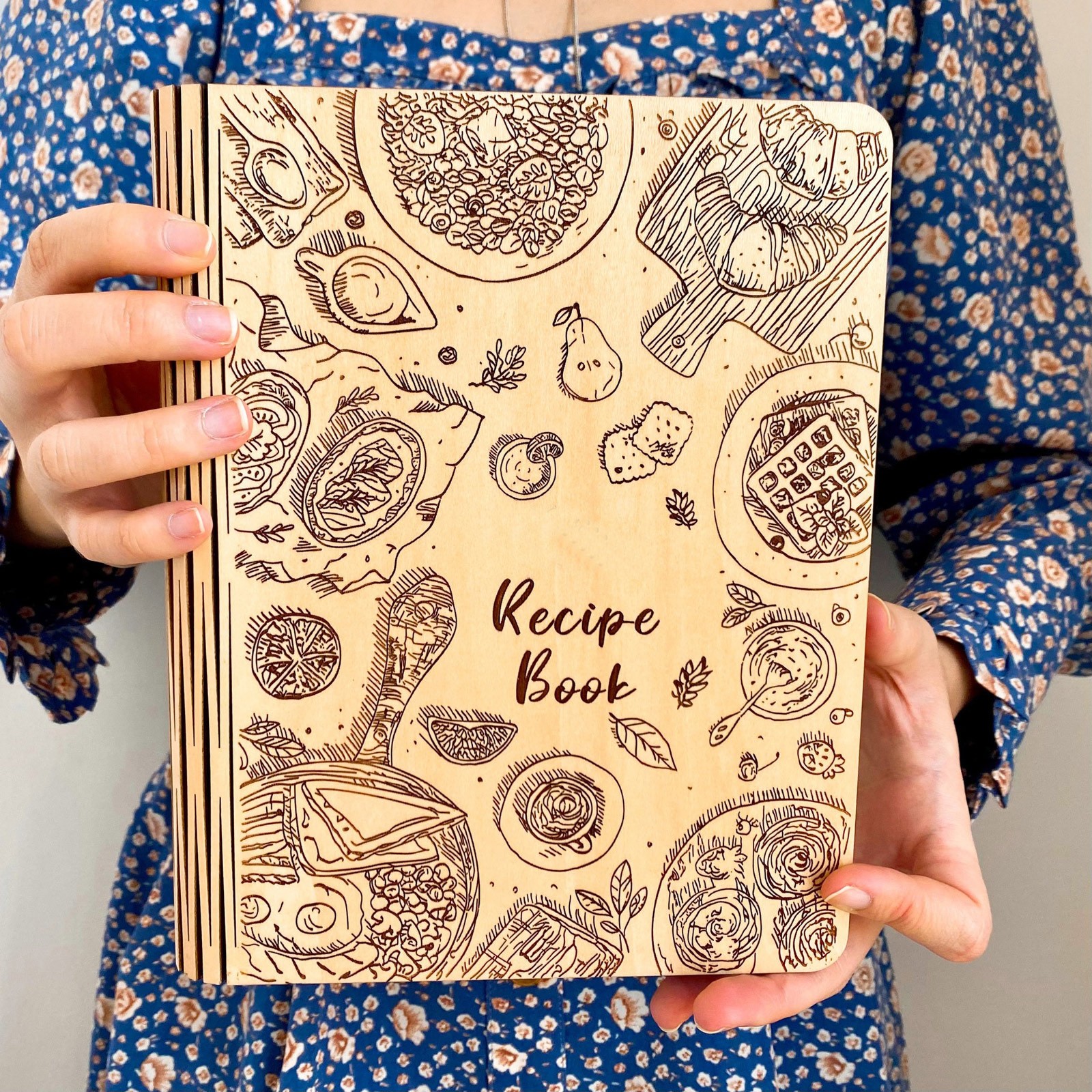 Персонализированные деревянные книги для рецептов, блокноты для журналов