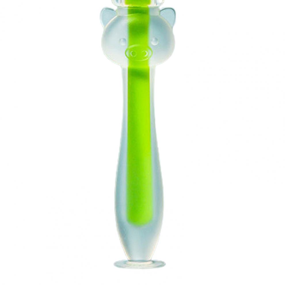 Разработанная с эргономичной ручкой и мягкой щеткой, зубная щетка не скользит и удобна для детей, а также не повредит руки или десны. Конструкция нижней части присоски удобна для хранения и может предотвратить падение зубной щетки на пол и загрязнение головки щетки.