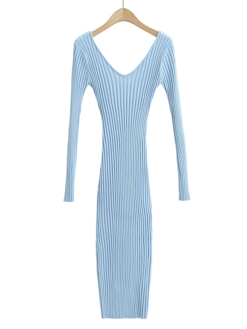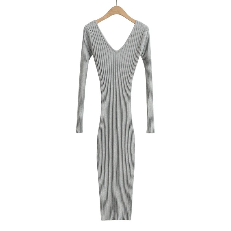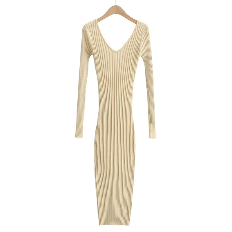 Женское облегающее платье с глубоким v-образным вырезом и бусинами | Женская