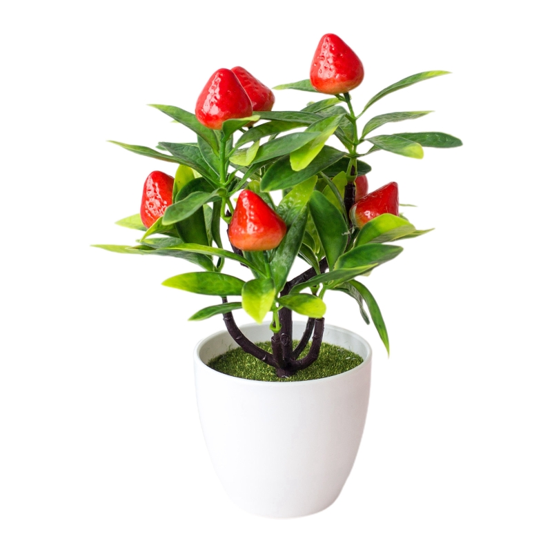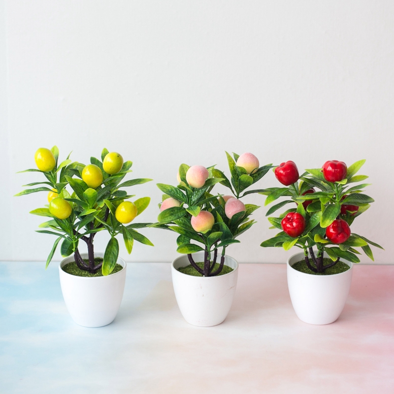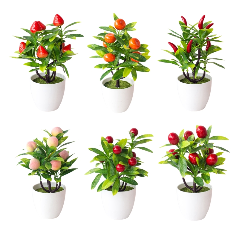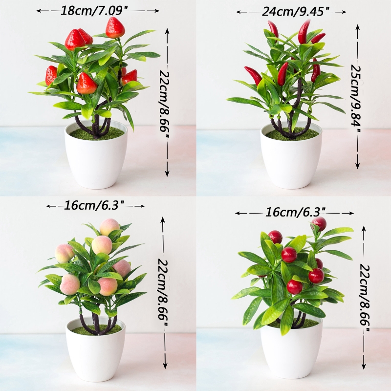 Искусственные растения в горшках, Искусственный перец, клубника, Оранжевый персик, бонсай, горшок, украшения для стола, офиса, дома, сада, украшения