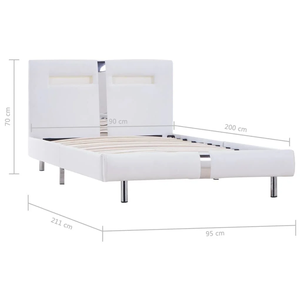 The simple and elegant design of this bedstead adds a trace of elegant charm to your bedroom. This bedstead is made of wood and steel and is very strong and durable. Strong wooden soles increase the durability of the bed. In addition, the bed is covered with durable synthetic leather, which looks very popular and easy to clean. In addition, you can easily adjust the power supply, brightness and various flashing colors of LED strips, and are equipped with a fully functional 24 key remote control to create amazing lighting effects. This bedstead fits a mattress of 90 x 200 cm.