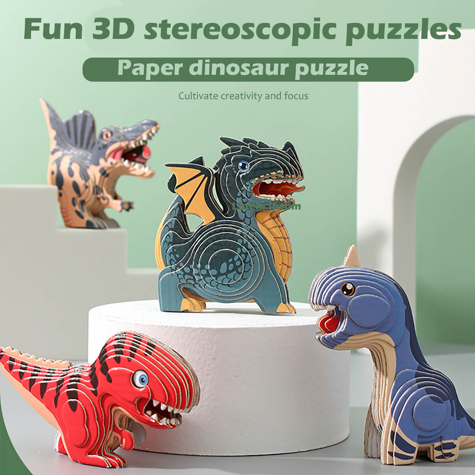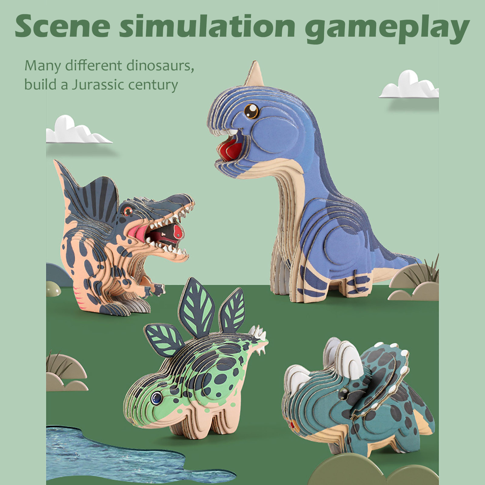 Children DIY Inserting Santa Claus Gift Puzzle Blocks Baby 3D Three-dimensional Dinosaur Paper Model