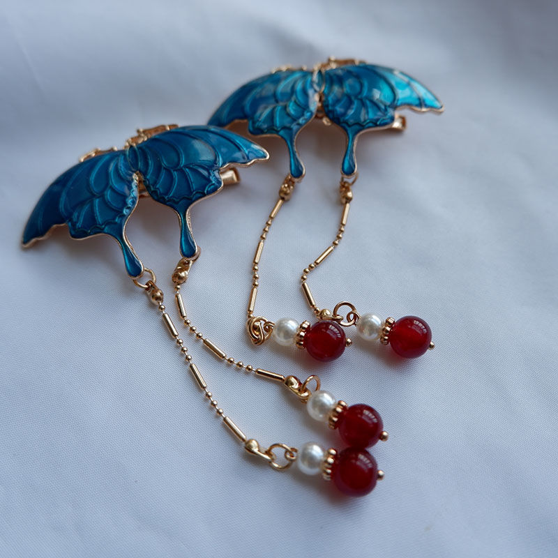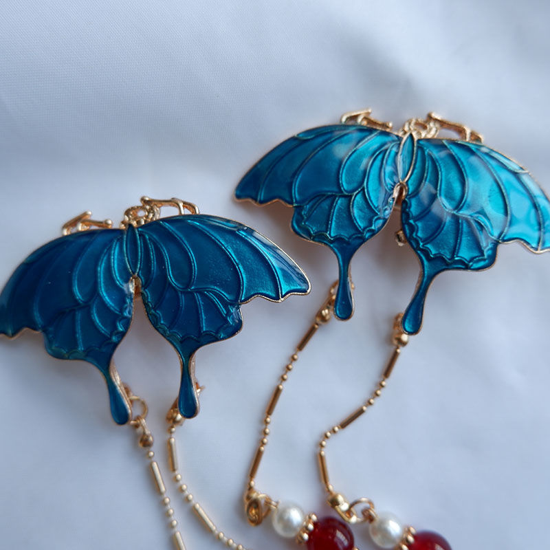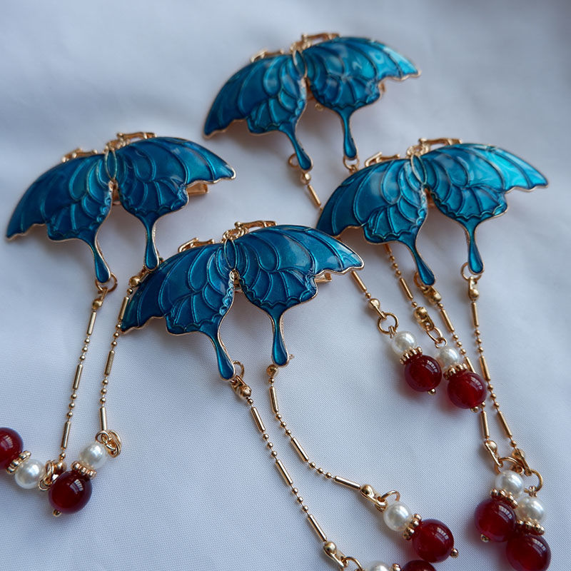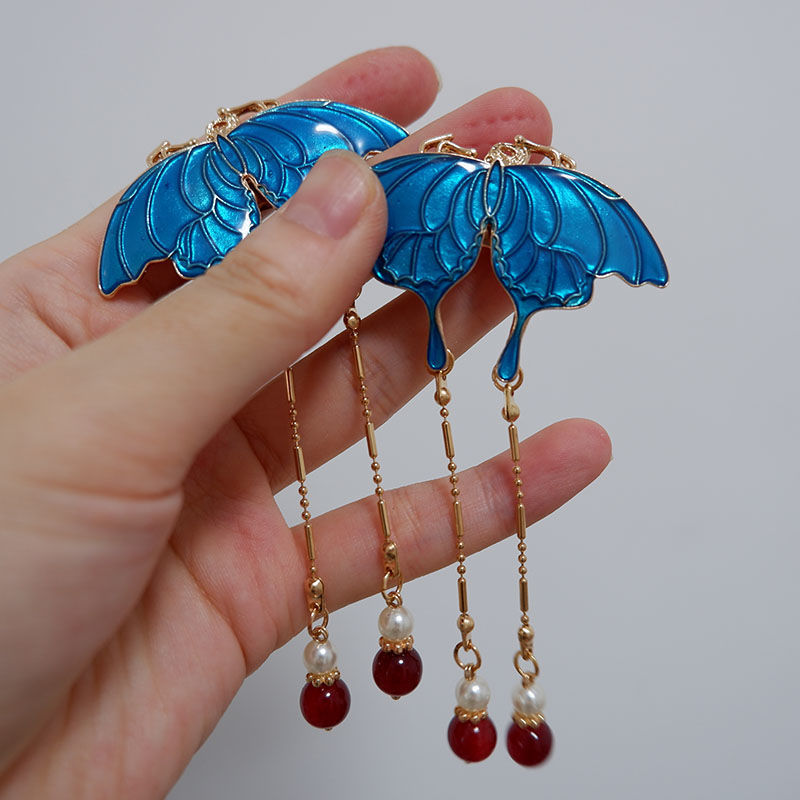 Винтажные подвесные заколки для волос с кисточкой женские синие головные уборы в форме бабочек в китайском стиле Hanfu заколки для волос вечерние аксессуары для волос