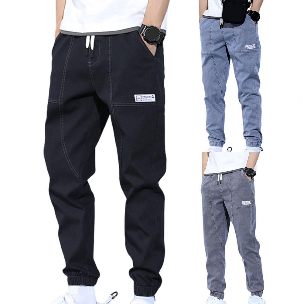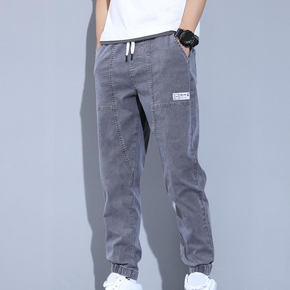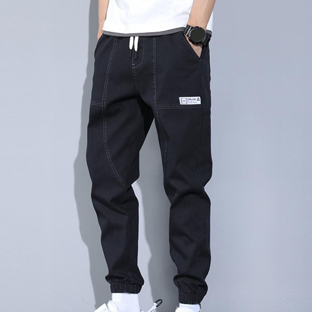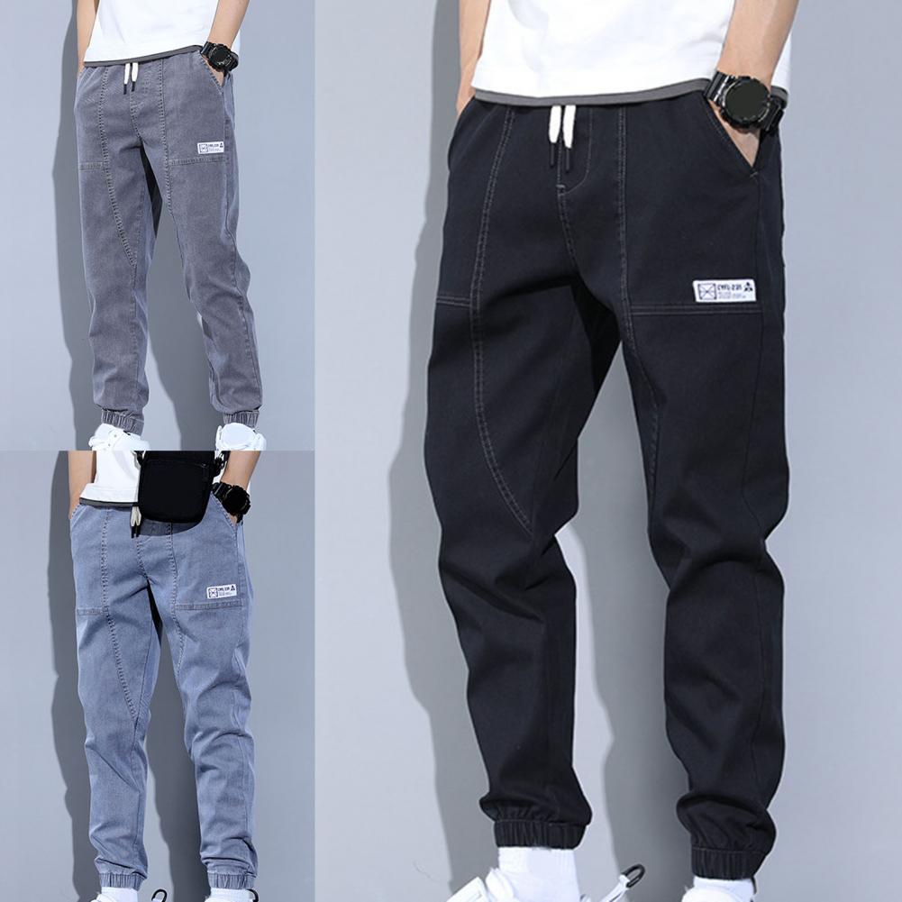 Мужские джинсы, однотонные, с эластичной резинкой на талии, с завязками на лодыжке, весенние штаны для повседневной носки