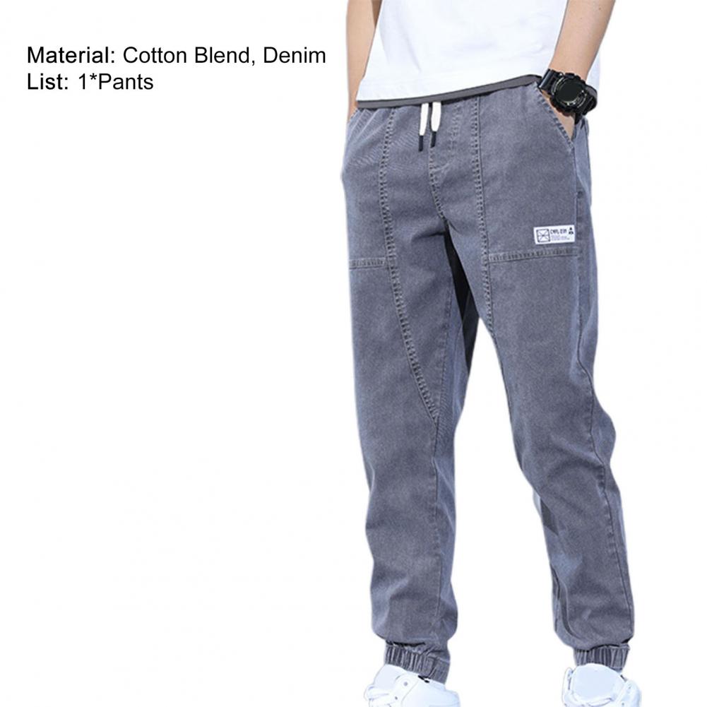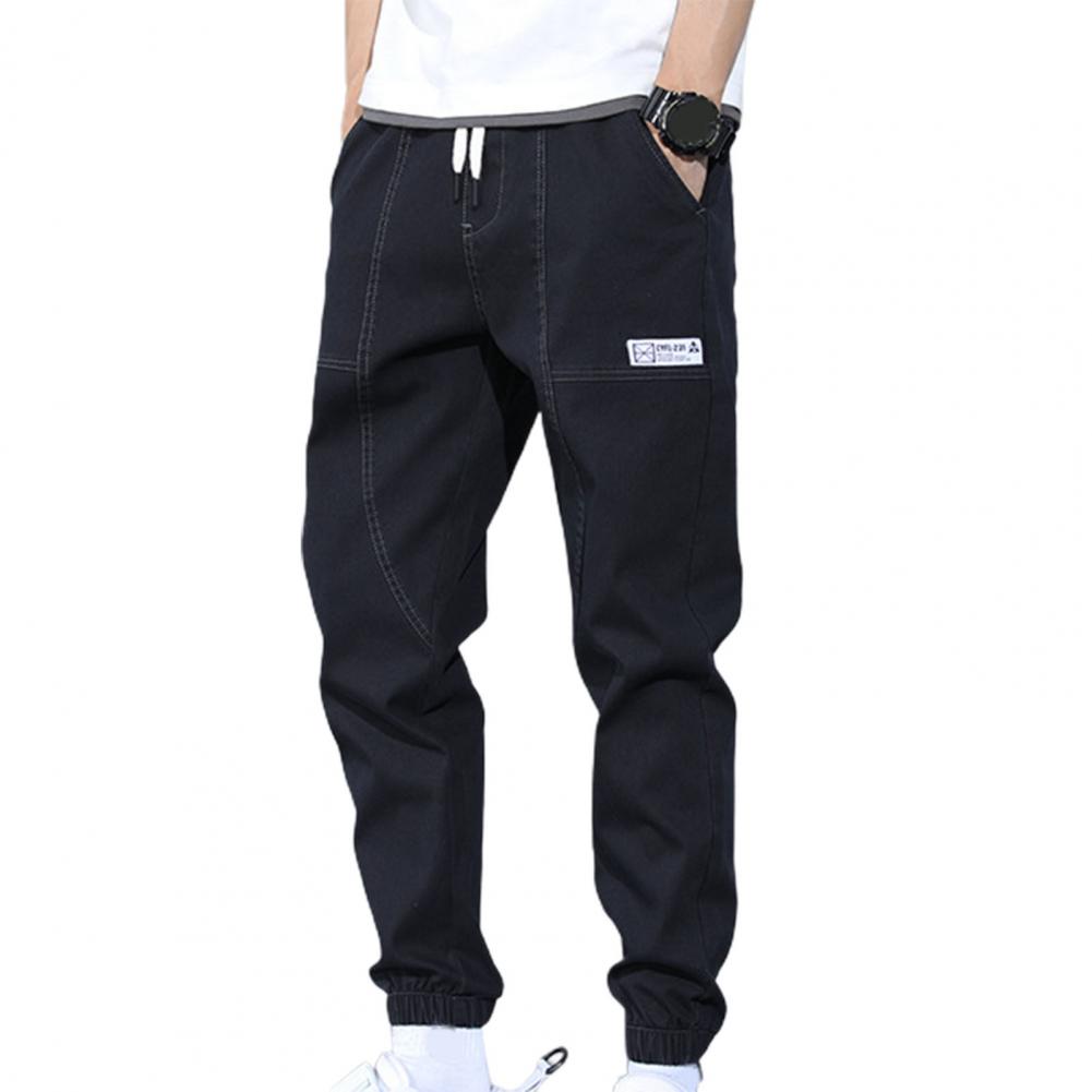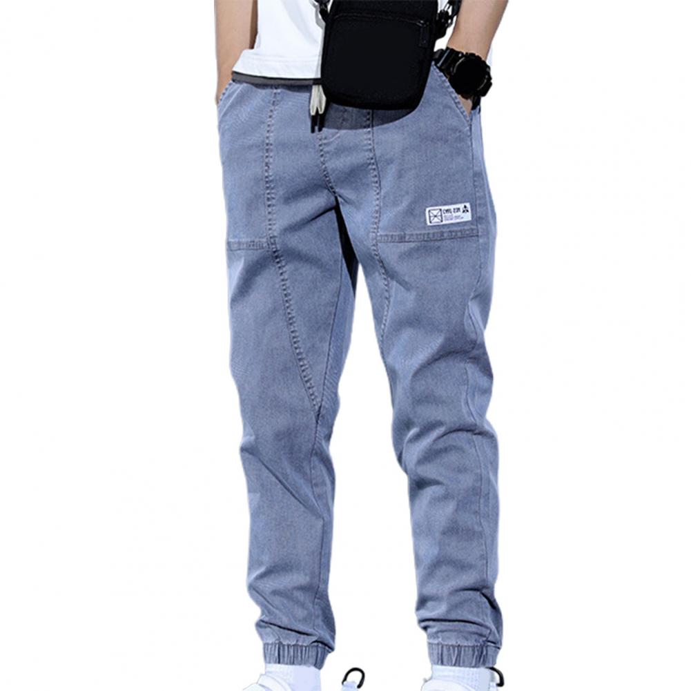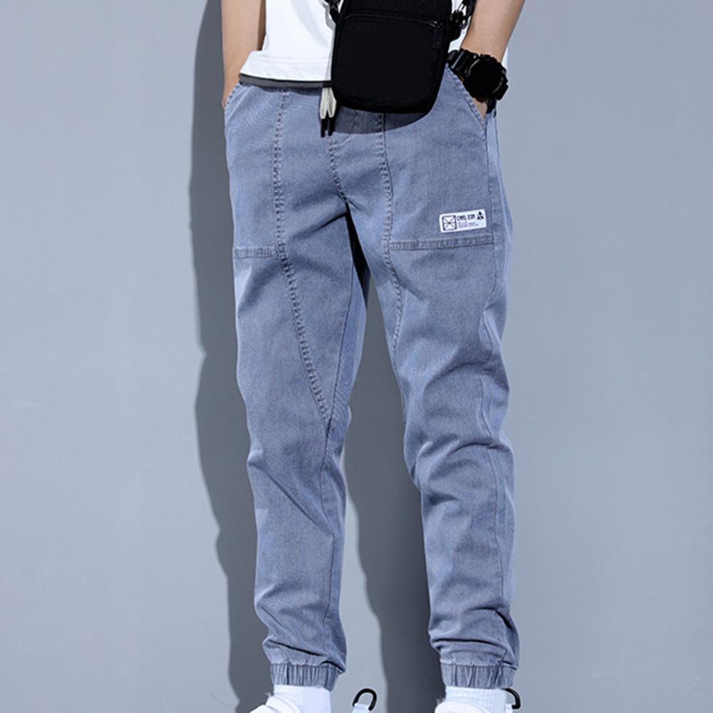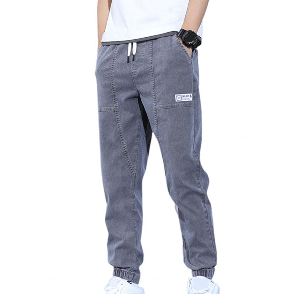 Мужские джинсы, однотонные, с эластичной резинкой на талии, с завязками на лодыжке, весенние штаны для повседневной носки