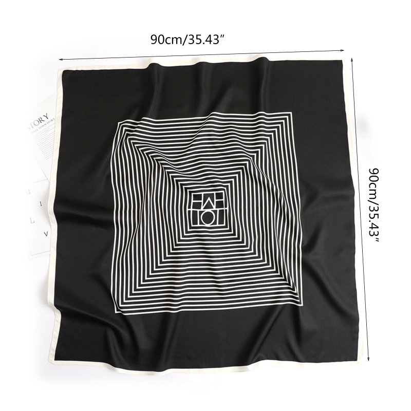 90x90 см модный шарф в полоску с принтом женский Шелковый Атласный хиджаб шарф Роскошная квадратная платочная повязка на голову банданы тюрбан F3MD