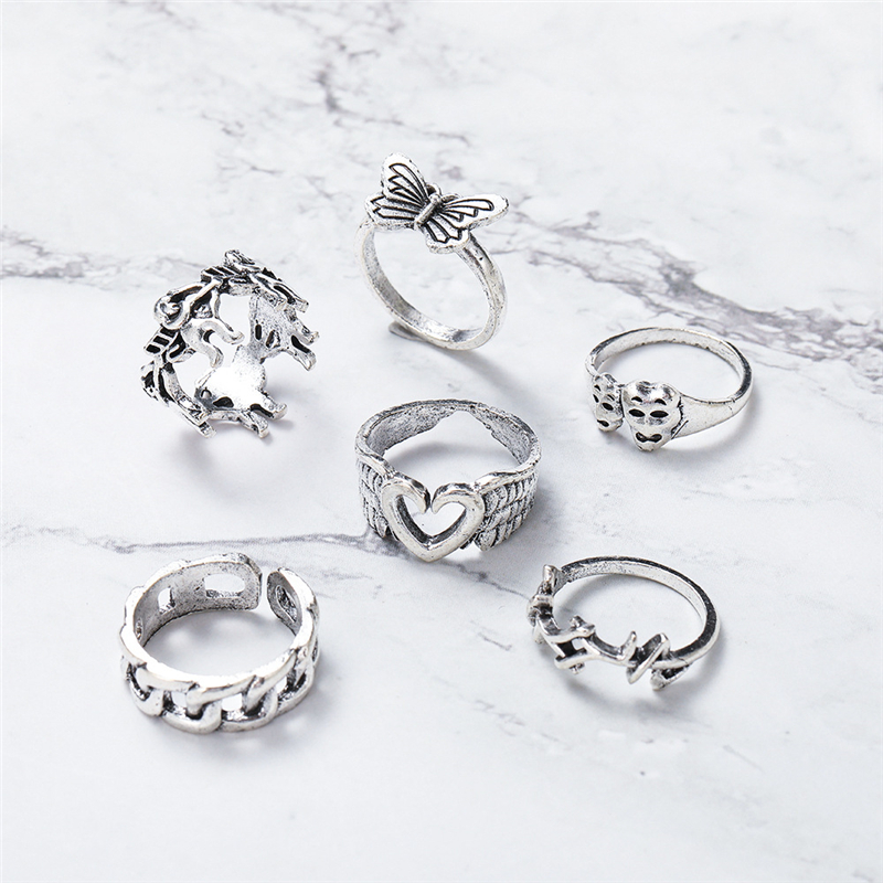 Модное непальское кольцо, набор из 6 предметов, Бабочка, сердце, винтажное креативное кольцо, ювелирные изделия