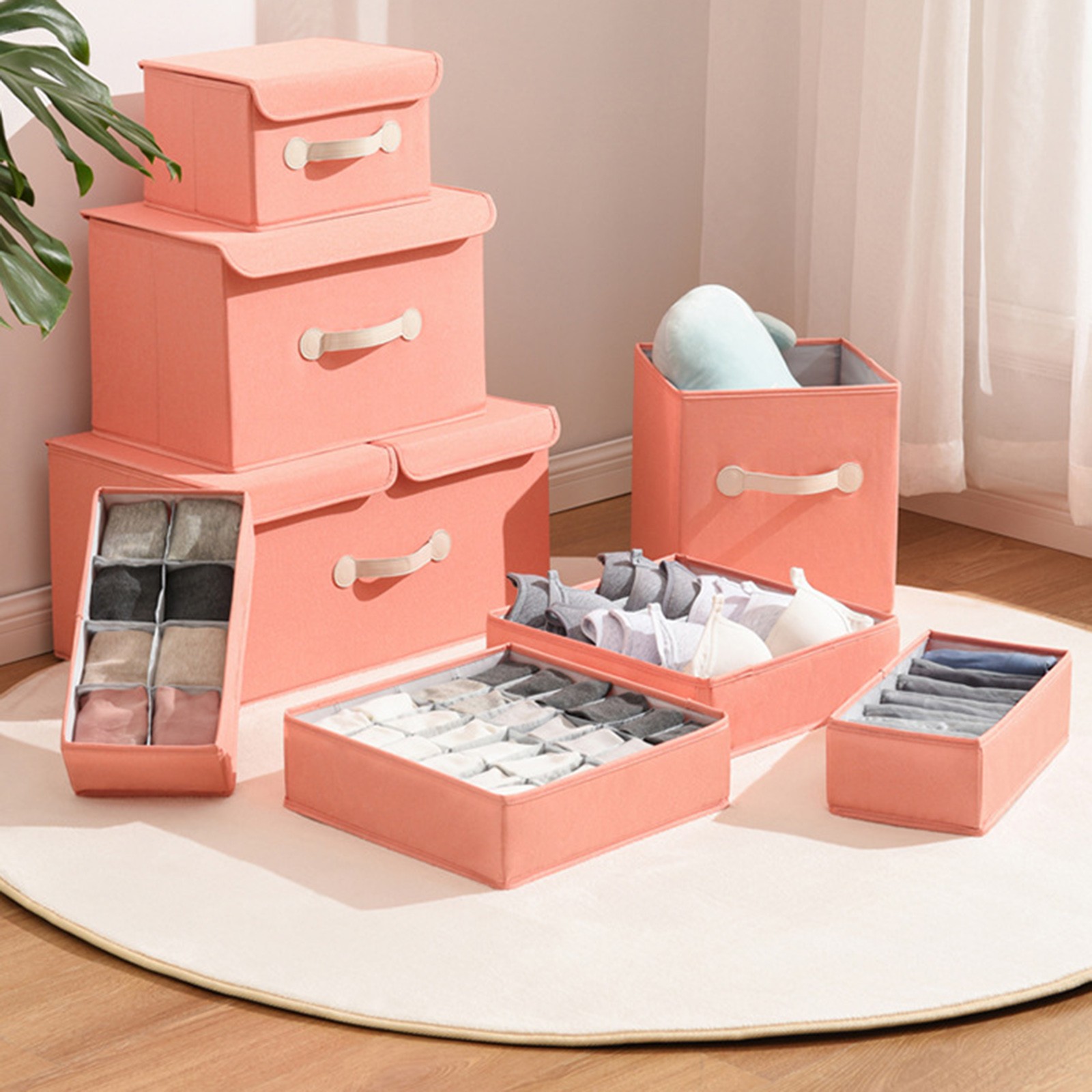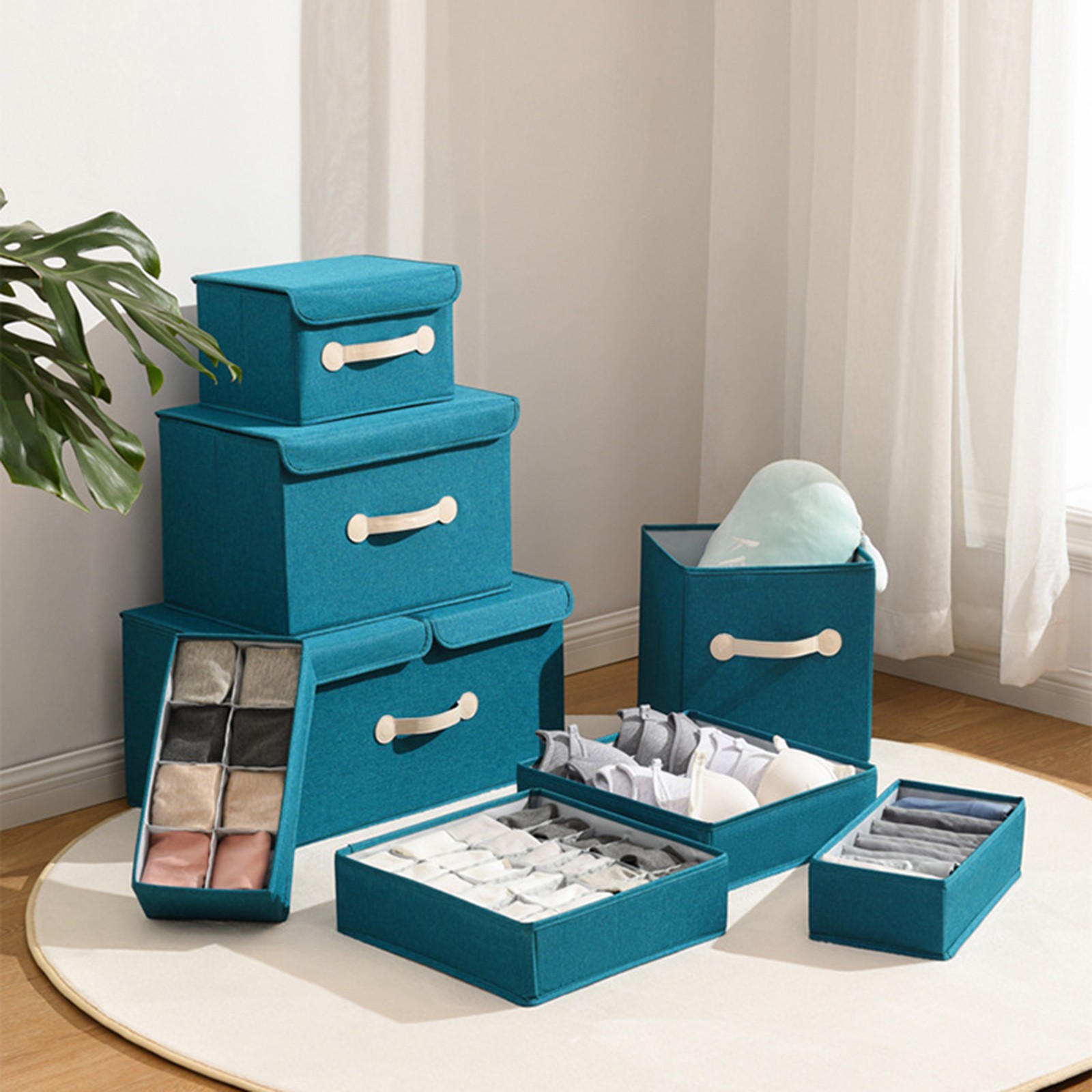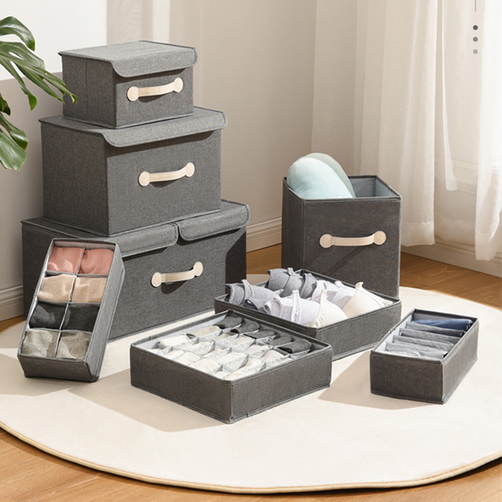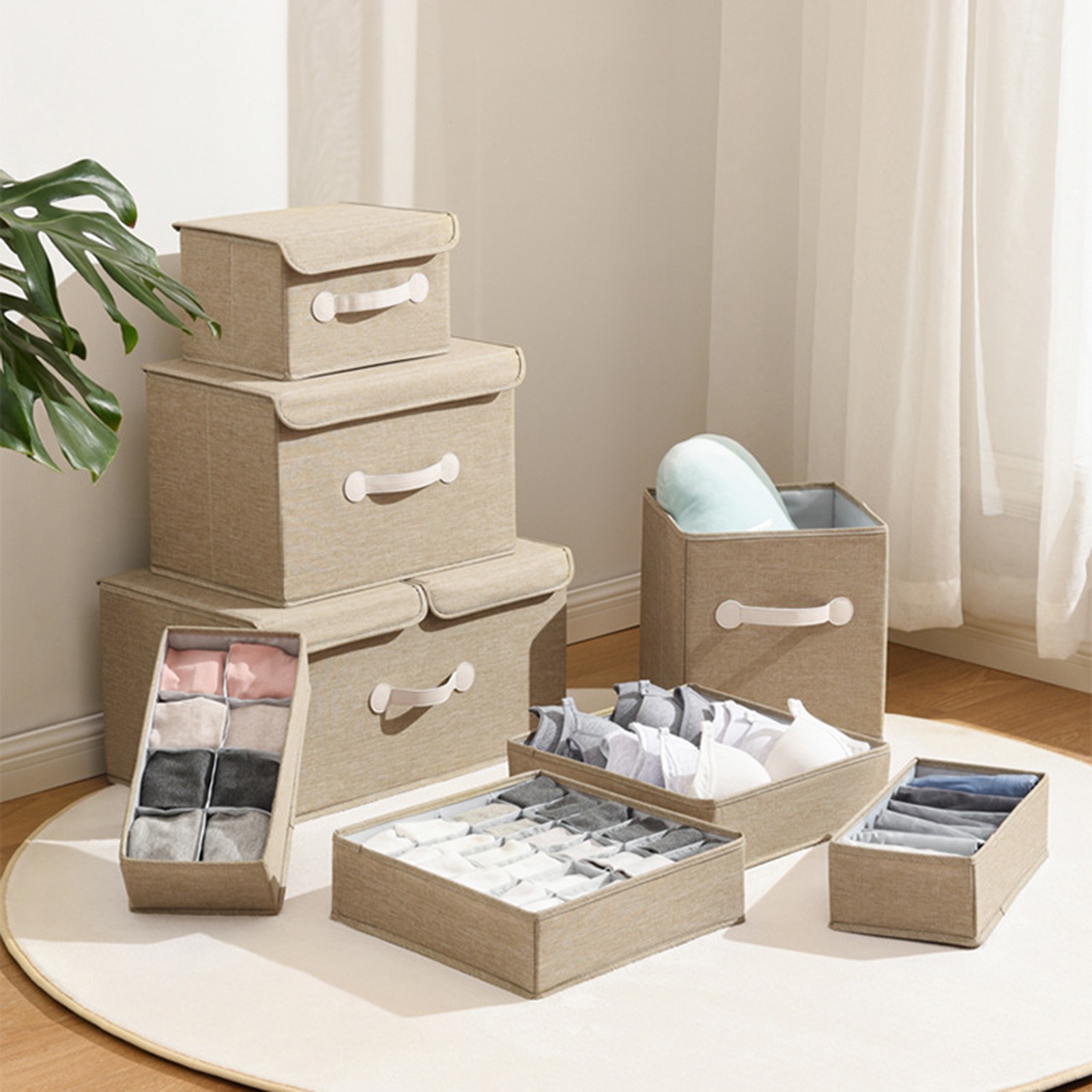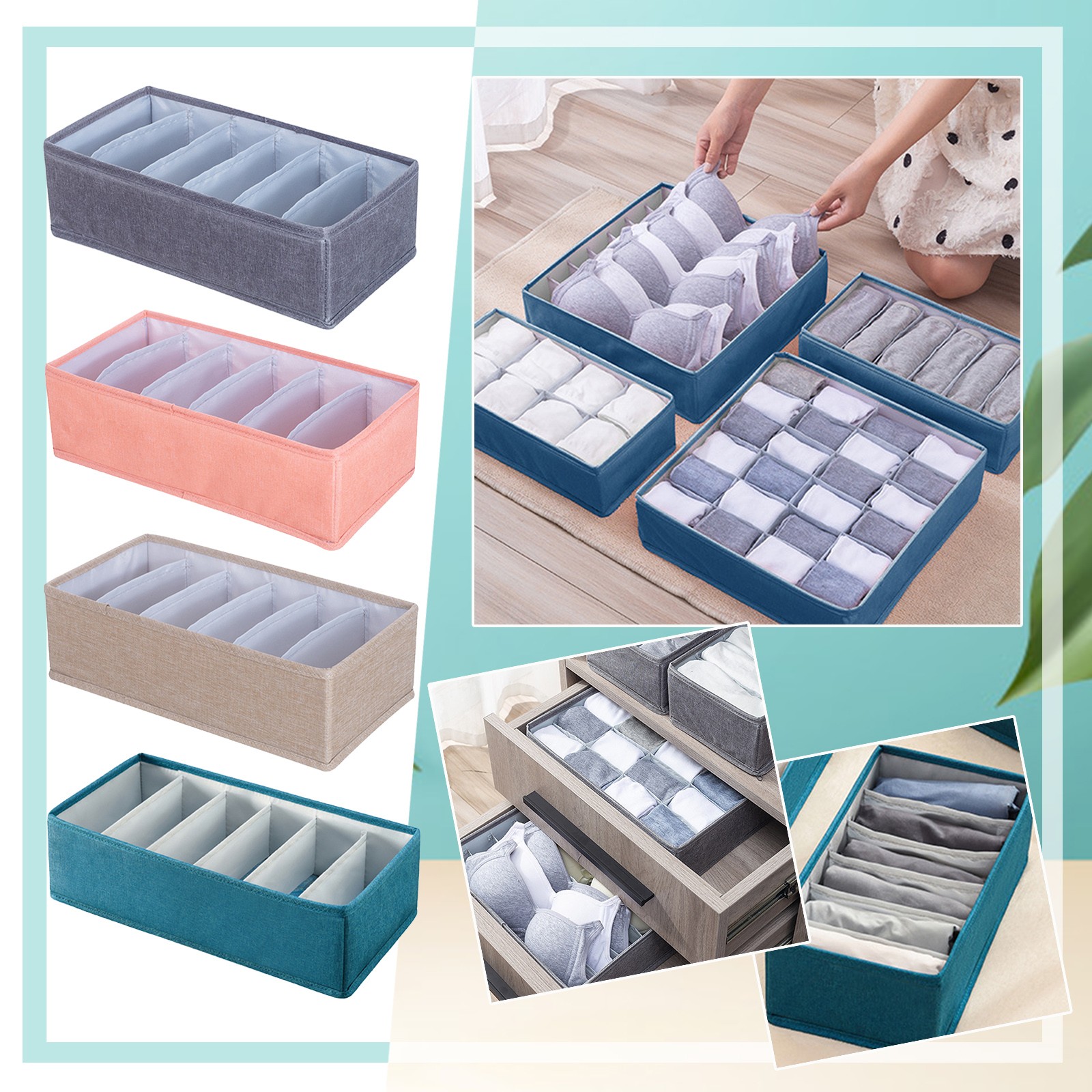 Льняная 6 ячеистая коробка, коробка для хранения нижнего белья, складная сумка для хранения, моющаяся Об этом проекте