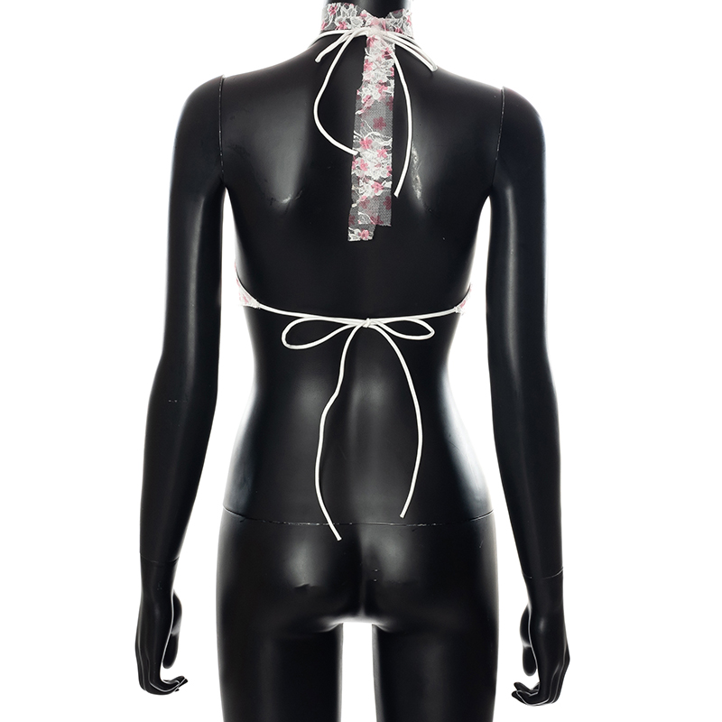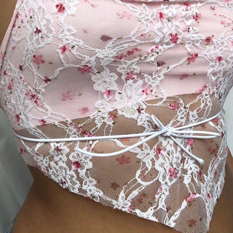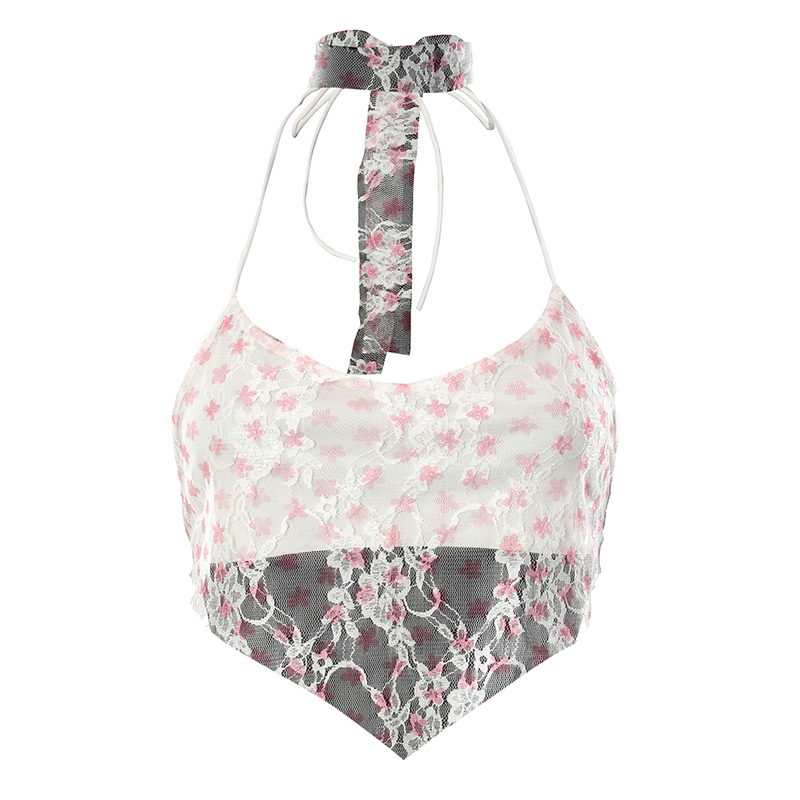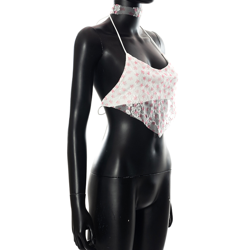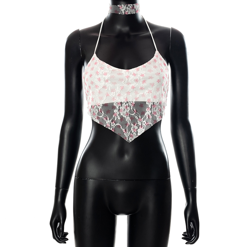 Кружевные майки с лямкой на шее для женщин украшены цветочными узорами и отлично подходят для ношения.