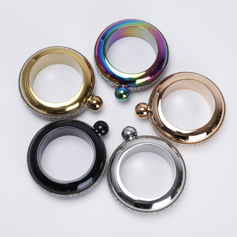 Браслет из нержавеющей стали с бриллиантами, фляга для путешествий, алкогольный виски, водка, карманные фляги, алкогольные бутылки, 3,5 унции, фляга, браслет