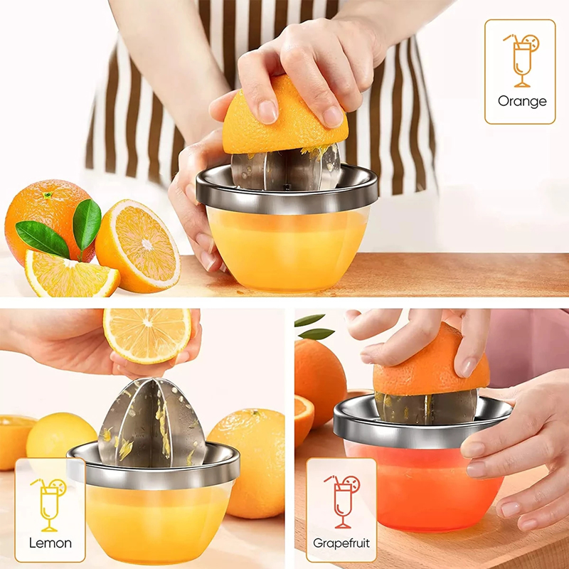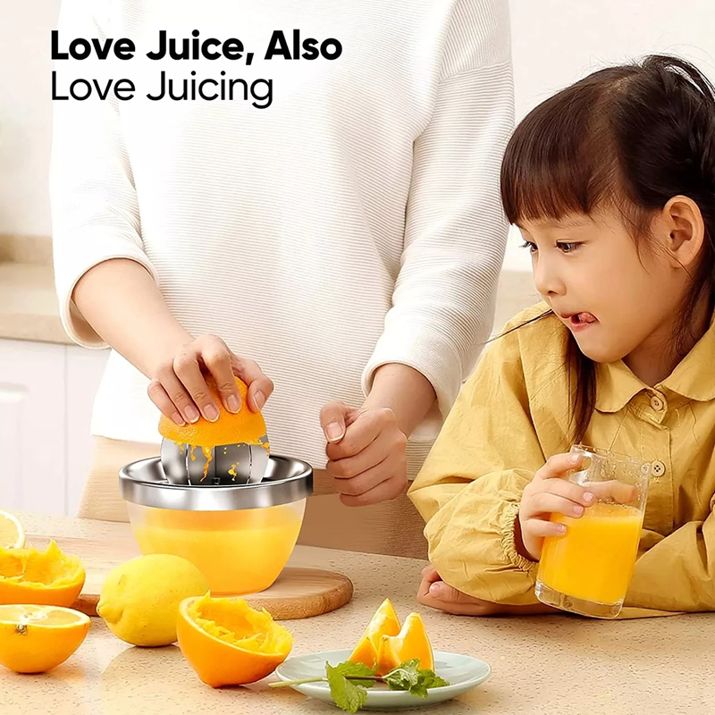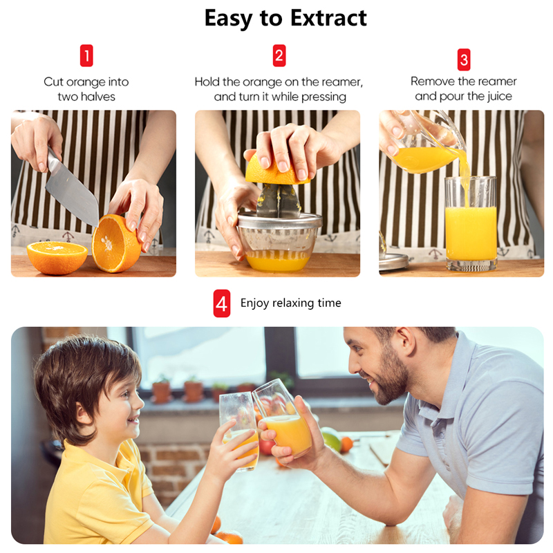 4. Безопасная и здоровая: Эта Ручная Соковыжималка из нержавеющей стали действительно поможет вам жить более здоровой жизнью. Вы можете использовать его для сжатия апельсинов, лимонов, мандаринов и грейпфрутов, чтобы ежедневно извлекать достаточное количество витамина для вашей семьи.