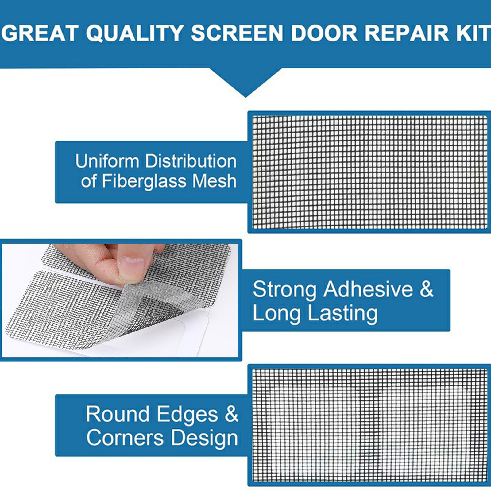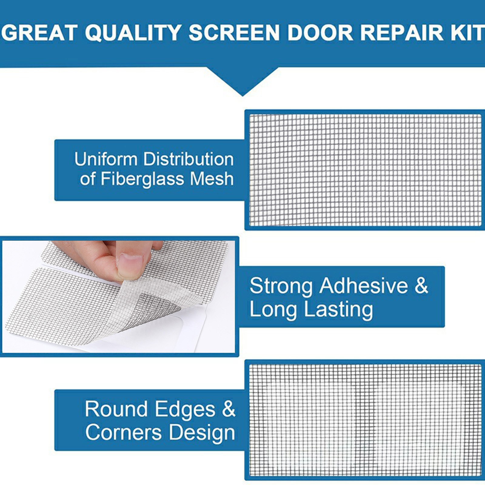 Прочный клей и долговечность: Этот набор для ремонта экрана разработан на основе текстуры материала экрана. Этот комплект имеет высокую адгезивную производительность и будет оставаться на поверхности вашей двери экрана или окна экрана в течение длительного времени